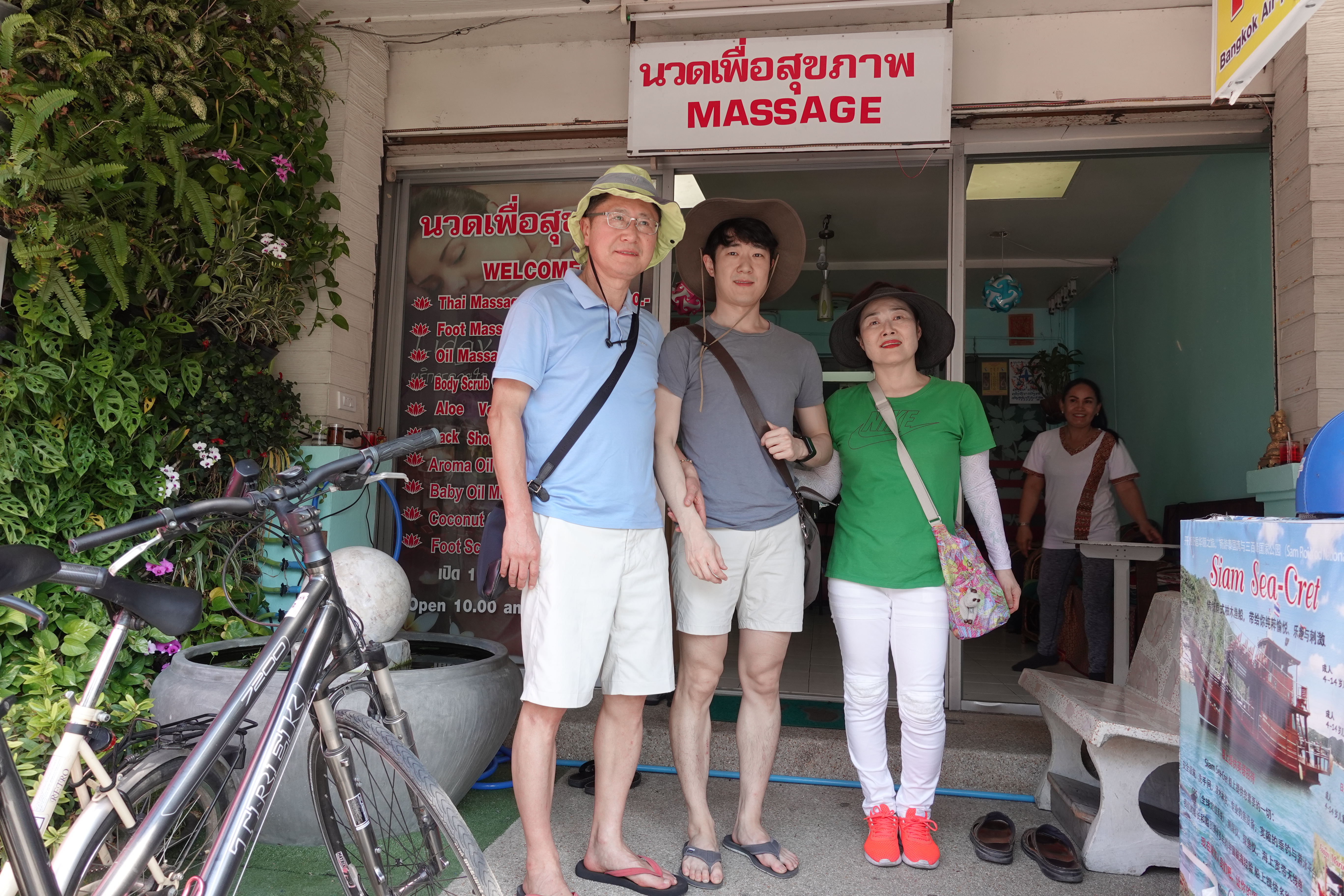 이 인근 마사지샵의 가격이 대체로 비슷하다. 1시간에 200바트에서 비싸도 350바트. 나는 등 어깨 (250바트)를 받았고 엄마와 동생은 타이마사지 (200바트), 아빠는 오일 마사지 (250바트)를 받았다.