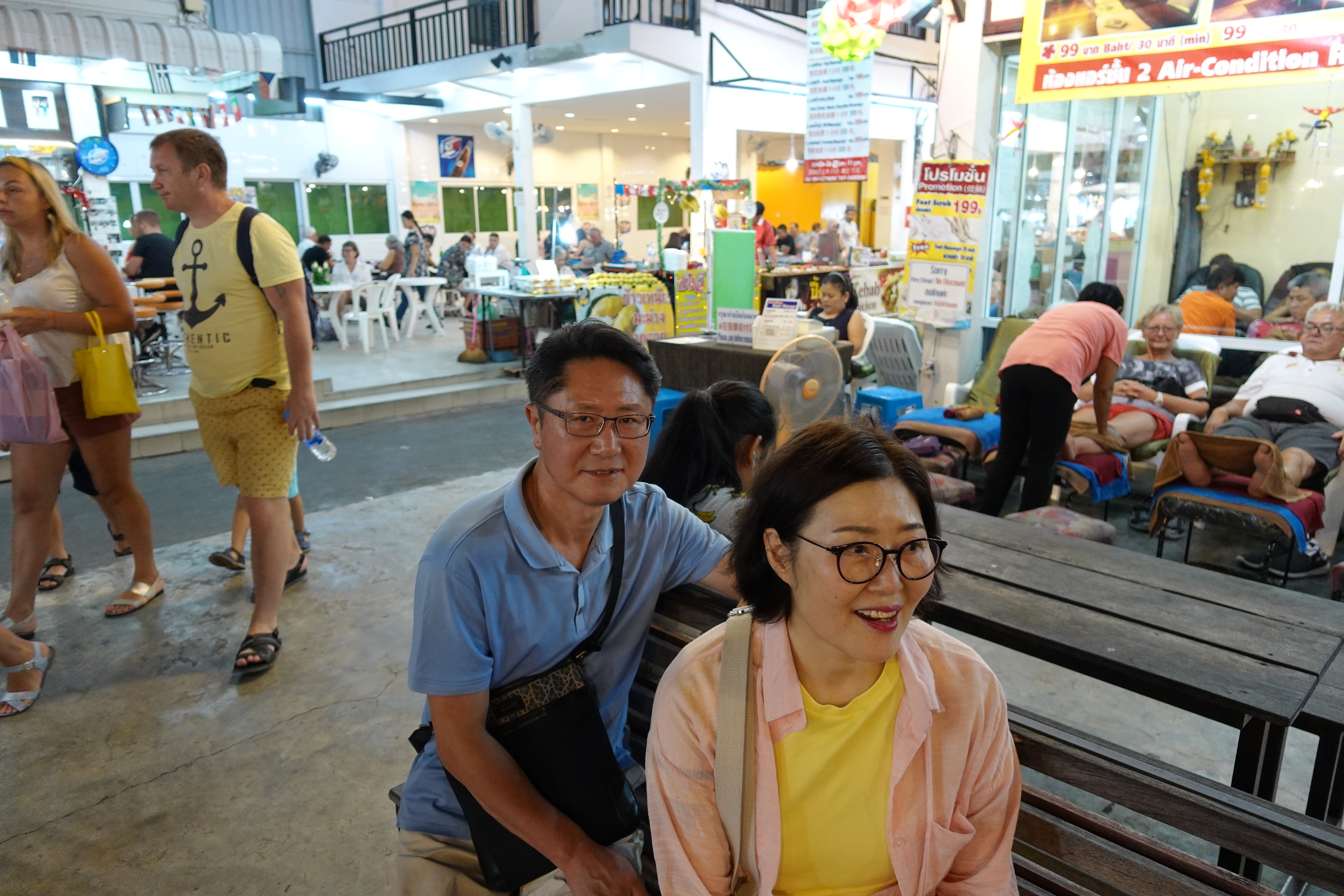 후아힌 야시장을 돌다 피곤에 지쳐 발마사지를 받았다. 시장의 메인 길가에 있는 곳이 아닌 조금 샛길에 위치한 곳을 이용했는데 어딜가든 손님으로 가득했다. 밖에서는 바로 받을 수 있다고 하긴 했으나 우린 실내가 조금 더 시원해보여 실내에서 받고 싶다고 하자 한 20분 정도 대기해야 한다고 하였다. 30분에 100바트였고, 엄마는 너무 조물딱 거리기만 해서 만족스럽진 않았다고 한다. 팁은 20바트씩 드렸다.