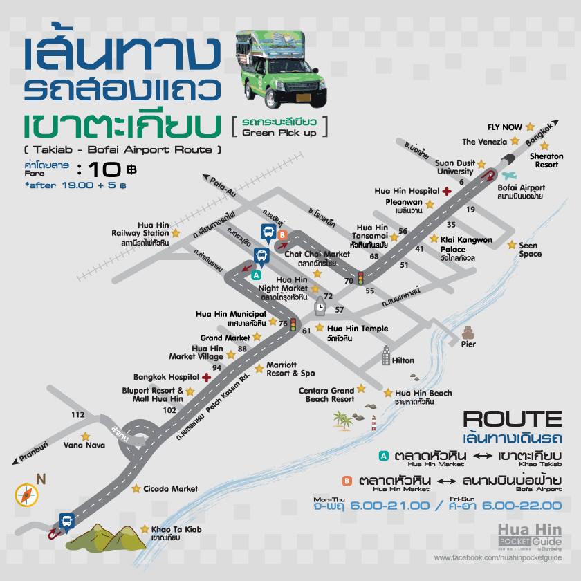 페이스북에 Hua Hin Pocket guide라는 회사에서 다음과 같이 썽태우 노선도를 예쁘게 정리해 놓아 공유해본다.