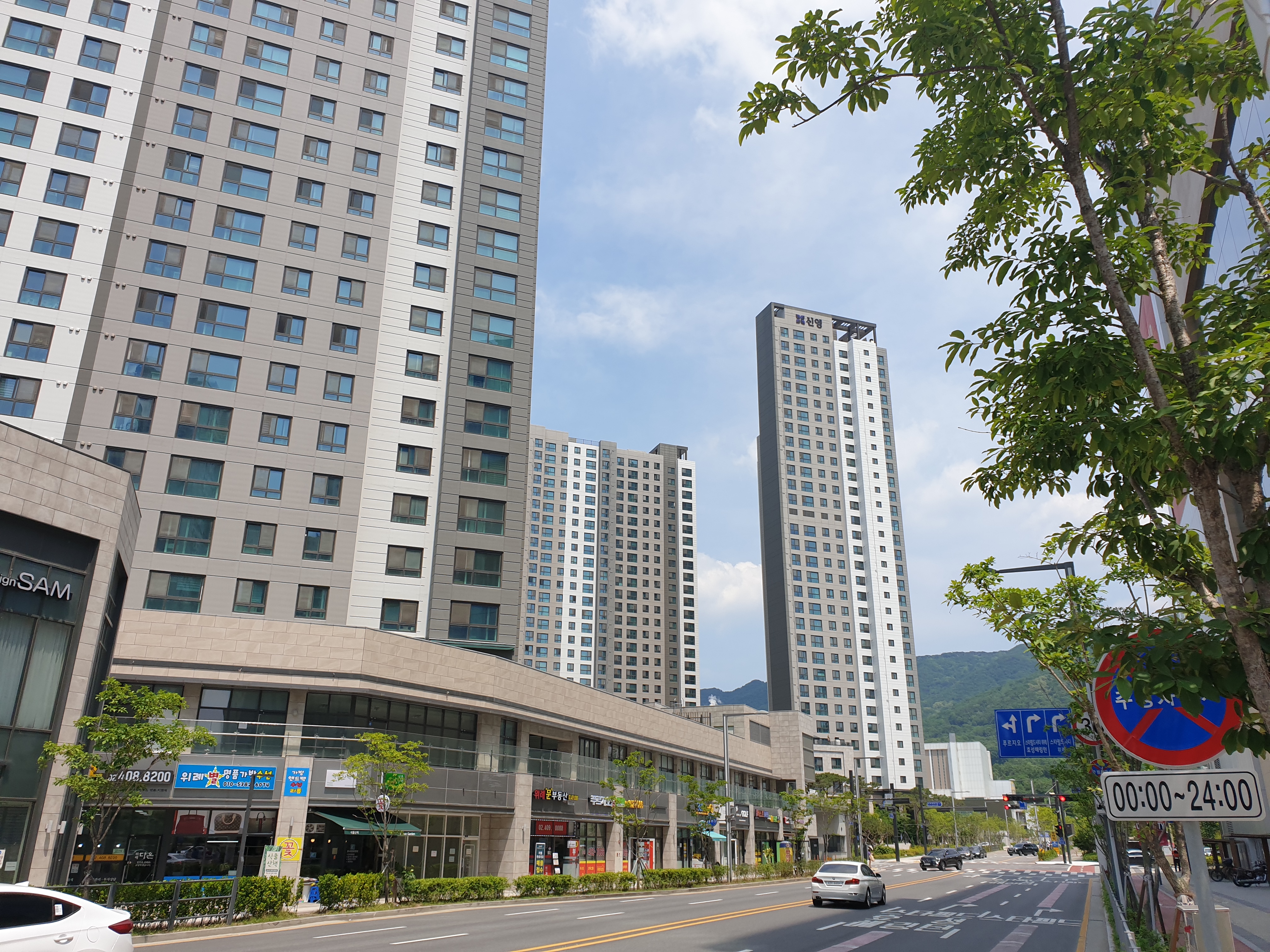 도착하니 이상하게도 많은 차량들이 길가에 주차되어 있다. 투자자들이신건가.. ㅎㅎ 여튼 민영아파트인 만큼 구조도 특이하다. 나름 채광성을 극대화하려는 시도였을지도..?