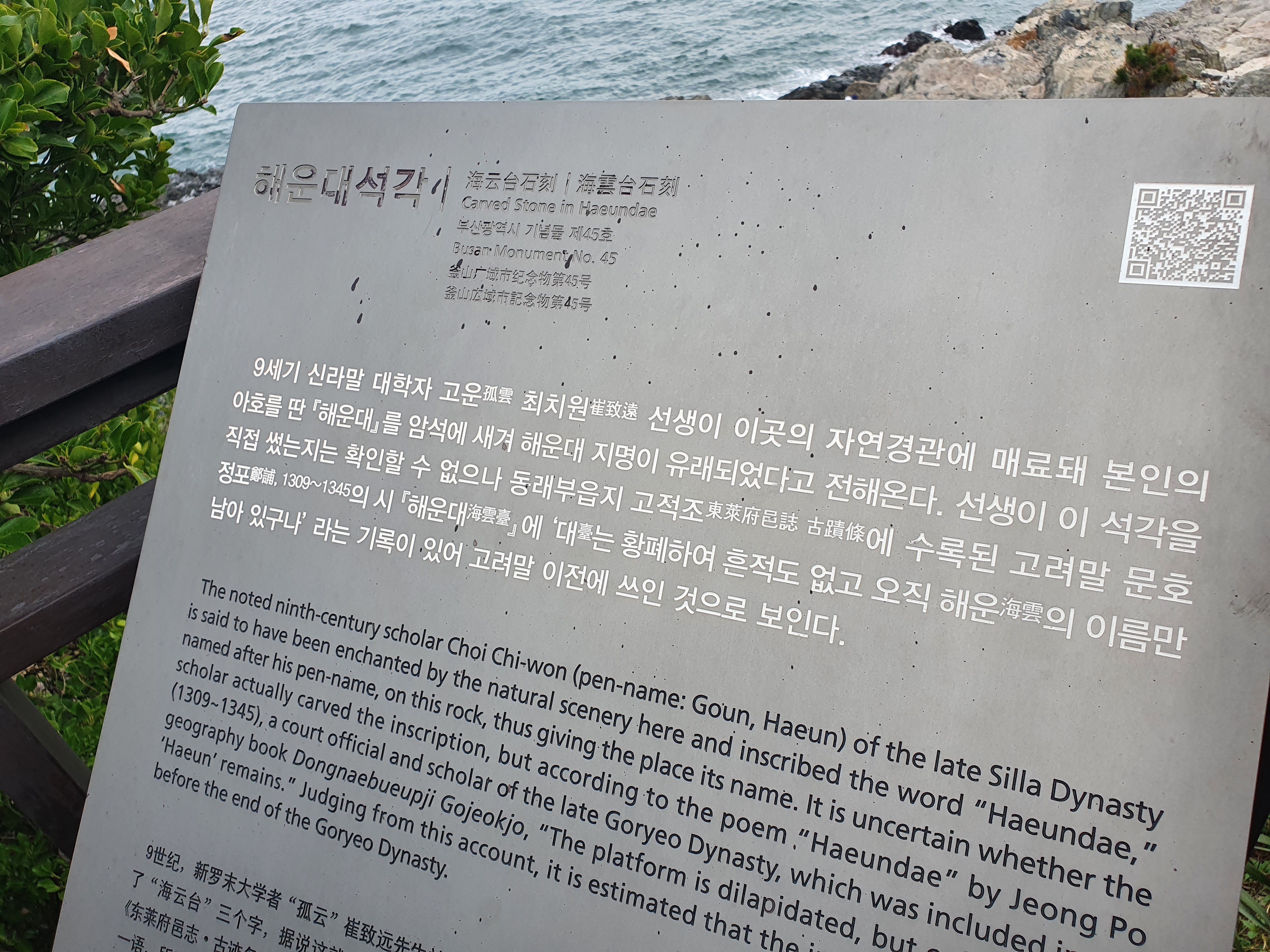 조금 가다보니 해운대 석각이란 게 있었다. 신라 말 최치원 선생이 해운대를 암석에 직접 새겼을 수도 있다고!!