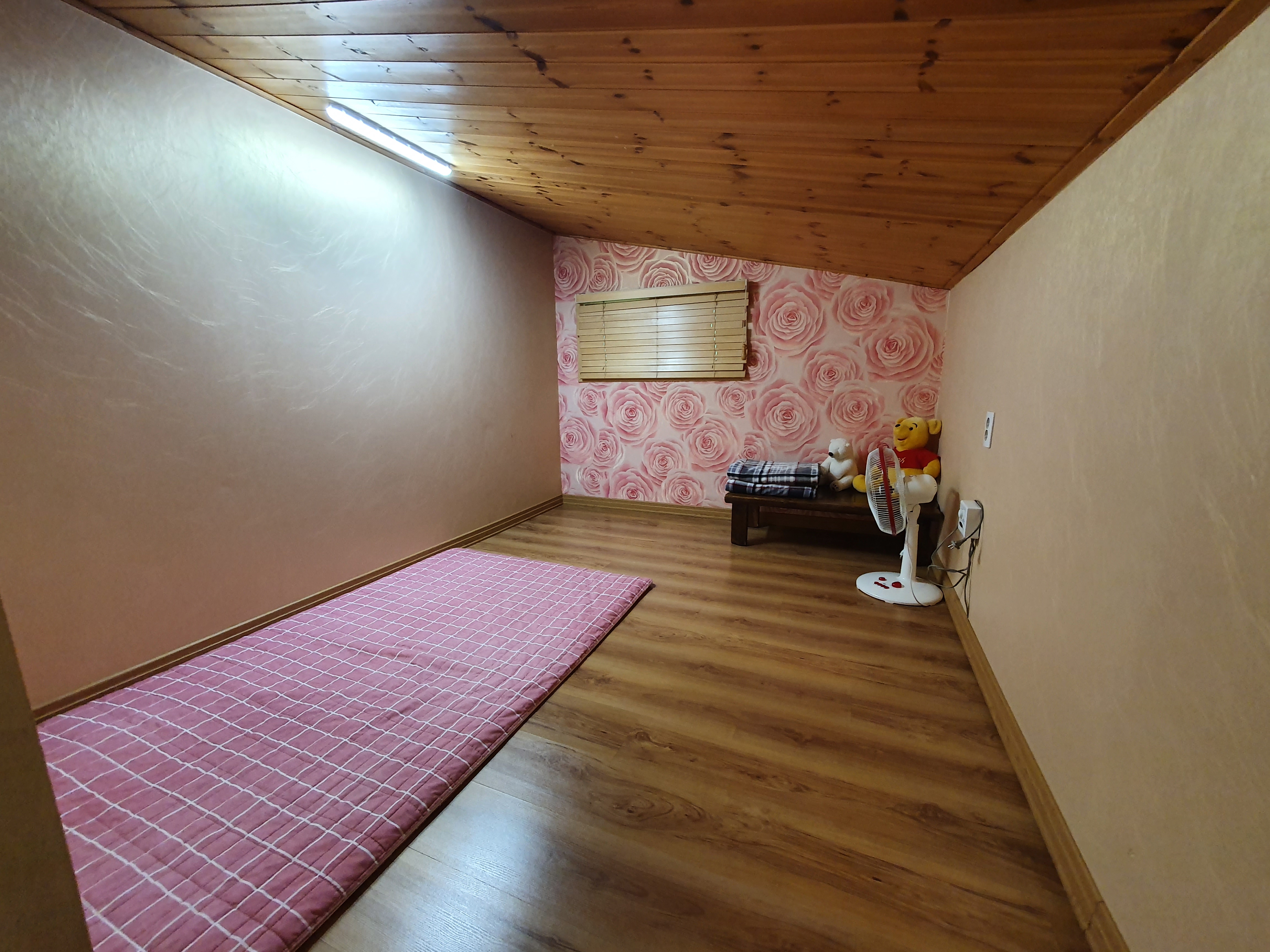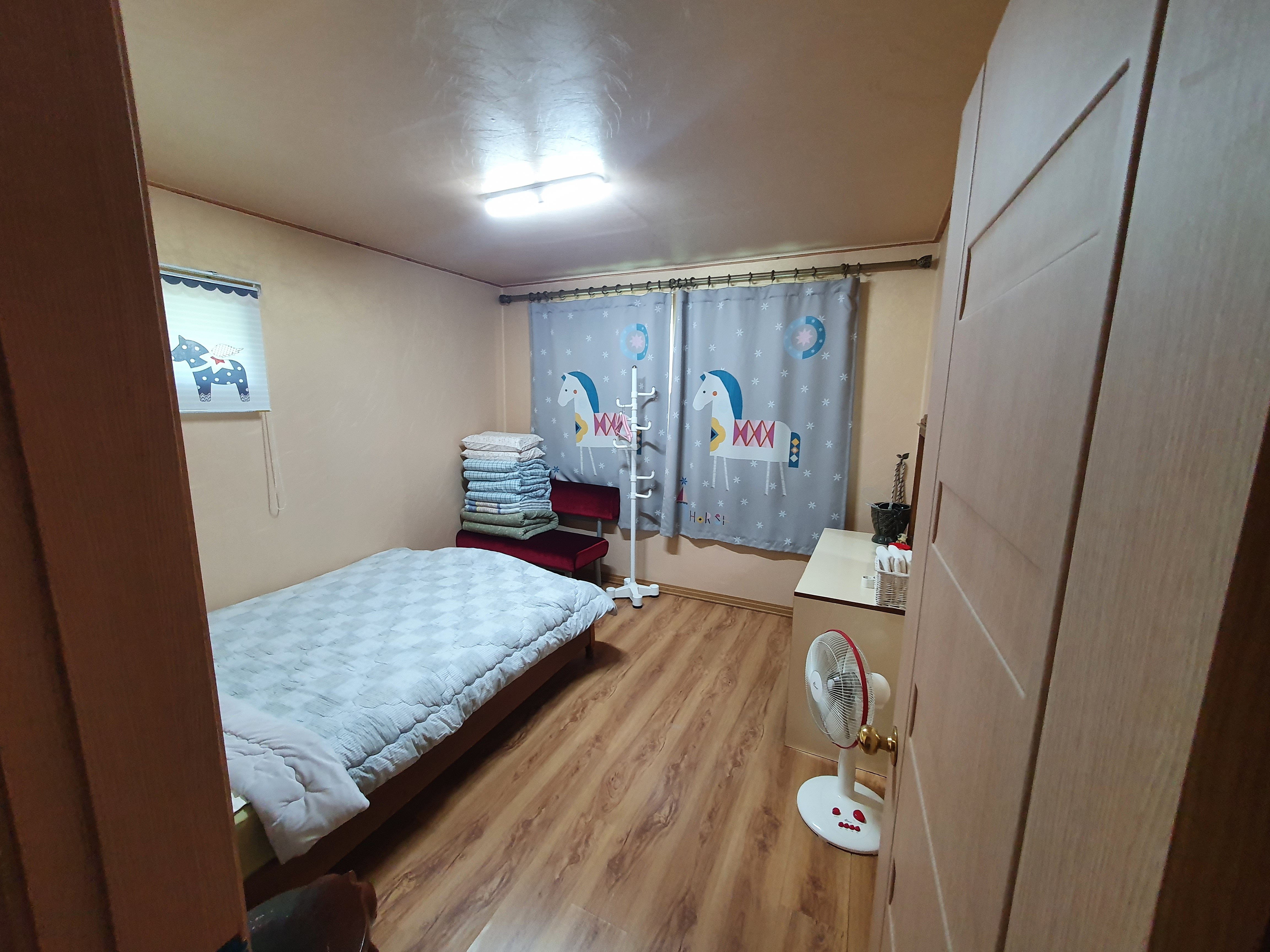 침실도 적당한 크기다. 침대위에서 좀 좁지만 2명이 잘 수 있고 바닥에서도 1명 정도는 더 자도 무리 없어 보였다. 침대 매트리스 상태가 좋지 않긴 했다..ㅎㅎ
