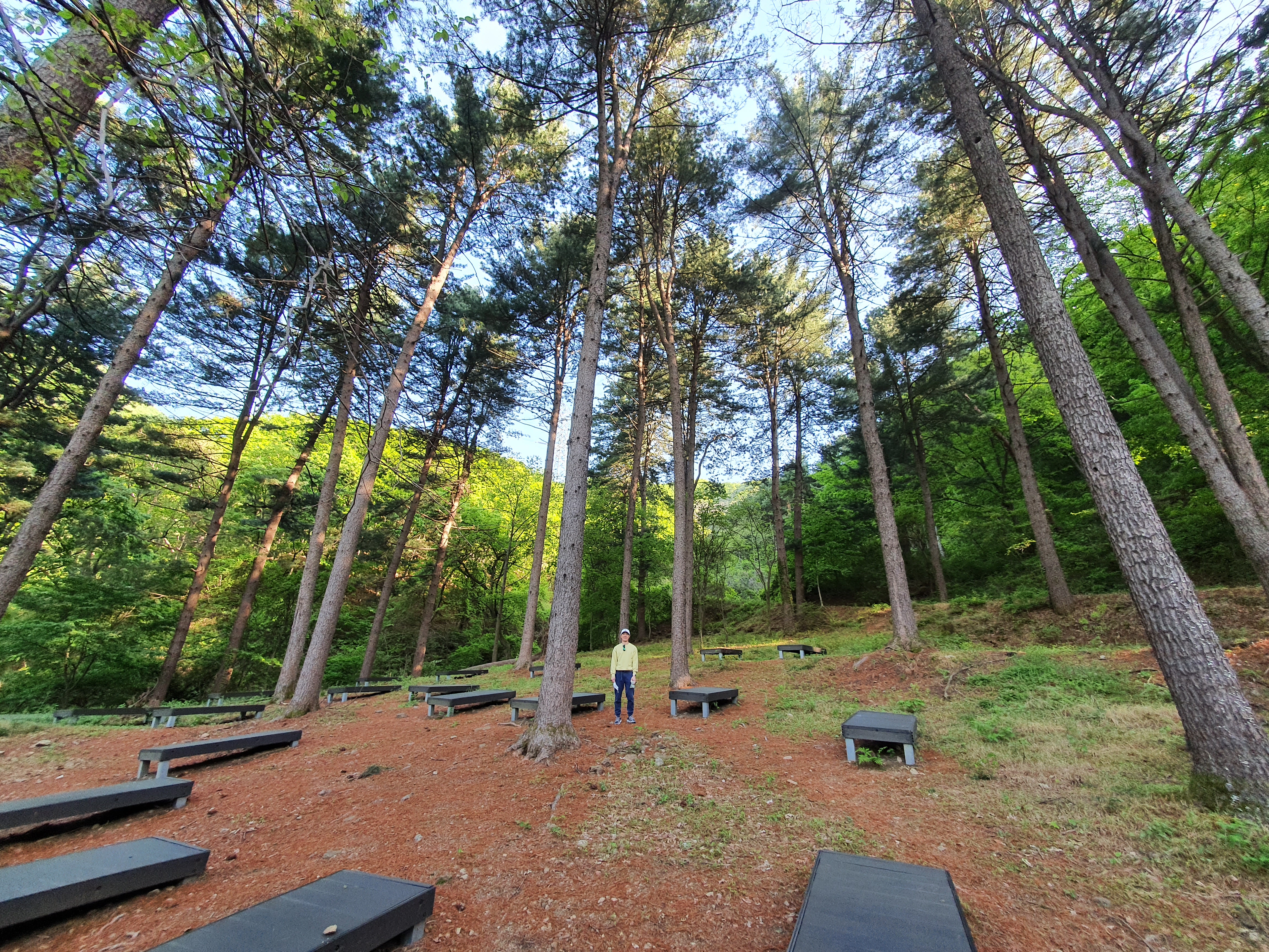 지형이 광각으로 촬영해준 산림욕장과 나. 모델이 조금 더 멋진 인물이었다면 아름답게 찍힌 사진이 더욱 빛났을 텐데 죄송스러울 뿐이다.