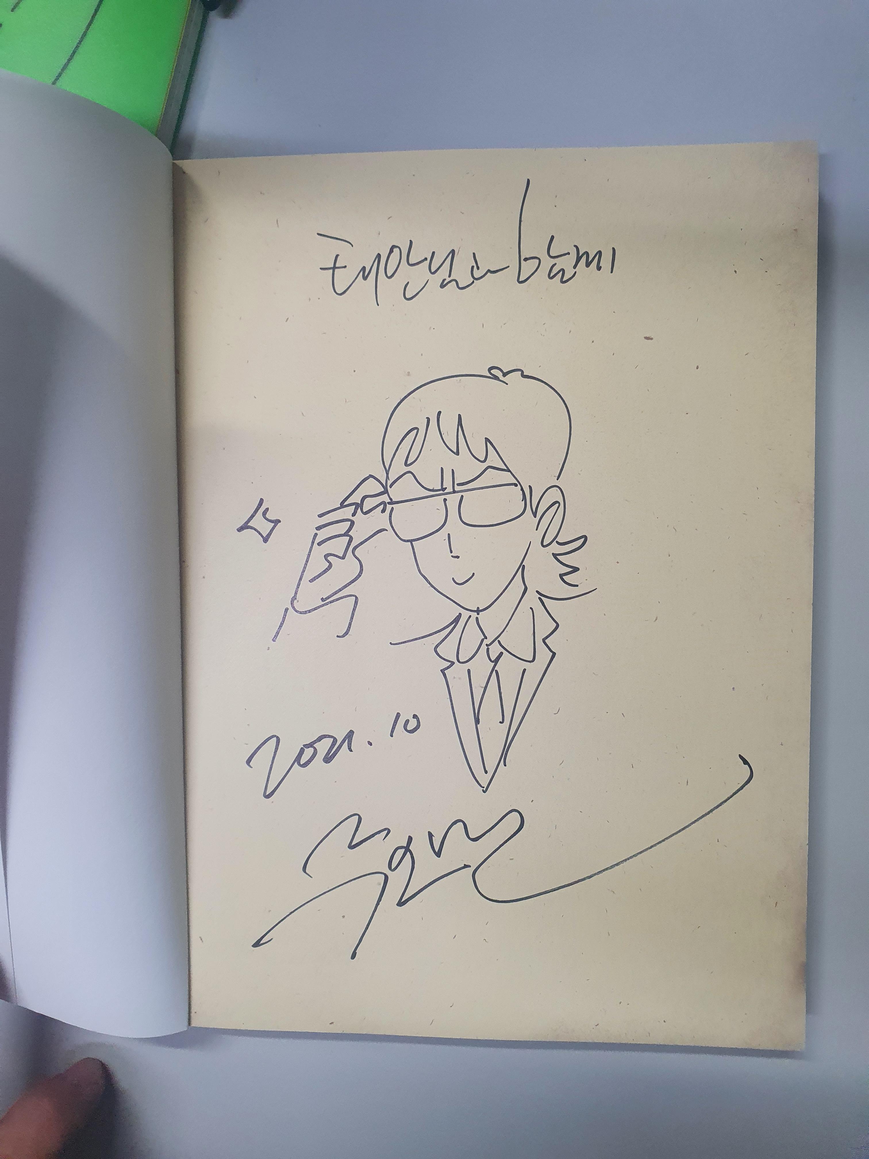 강연을 끝마치고 주펄님과의 사진 촬영 및 사인을 받을 수 있는 기회가 왔다. 나는 주펄님과 좀 얘기를 나누고 싶어 사람들이 좀 나갈 때까지 기다렸는데 아무리 기다려도 그럴만한 틈이 보이지 않아 냉큼 줄을 섰다. 일단 가져온 신과 함께 저승편 1권에 싸인을 부탁드렸다. 가까이서 뵌 주펄님은 두상이 아름다웠으며 ㅋㅋㅋㅋ 피부도 엄청 깨끗하고 여튼 신기했다. 게다가 쑥스러움이 어마어마하셨다는 것.. 솔직히 나도 한 쑥스러움 하는데.. 서로 쑥스러워하니 대화가 제대로 되지 않았다..ㅠㅠ 뭔가 더 팬심을 전달하고 싶었으나, 아싸 기질의 나로서는 그게 최선이었다. 아래는 주펄님이 남겨준 친필 싸인..! 세상에.. 진기한 변호사를 저렇게 정성스럽게 그려주실 줄이야..ㅠㅠ