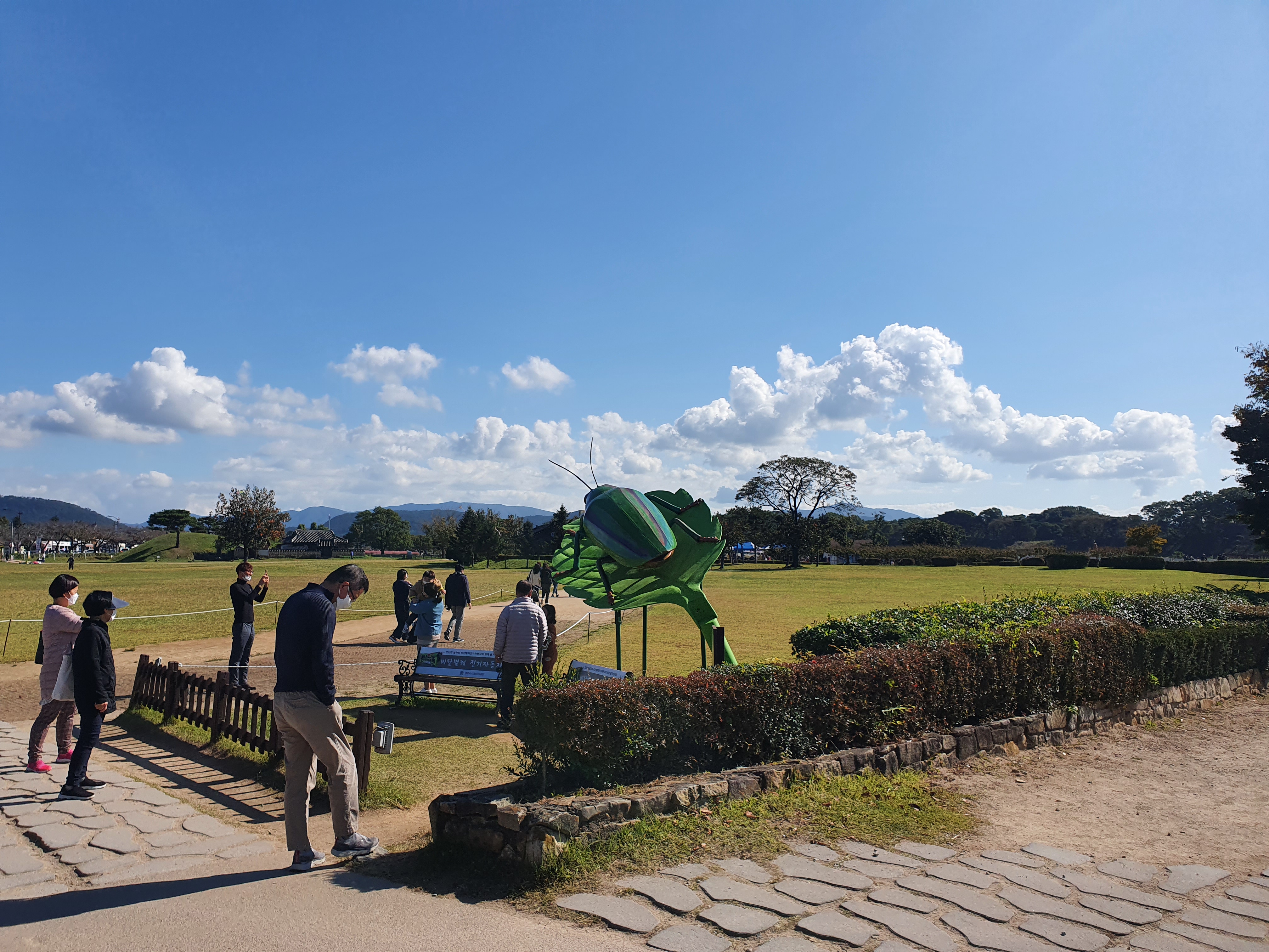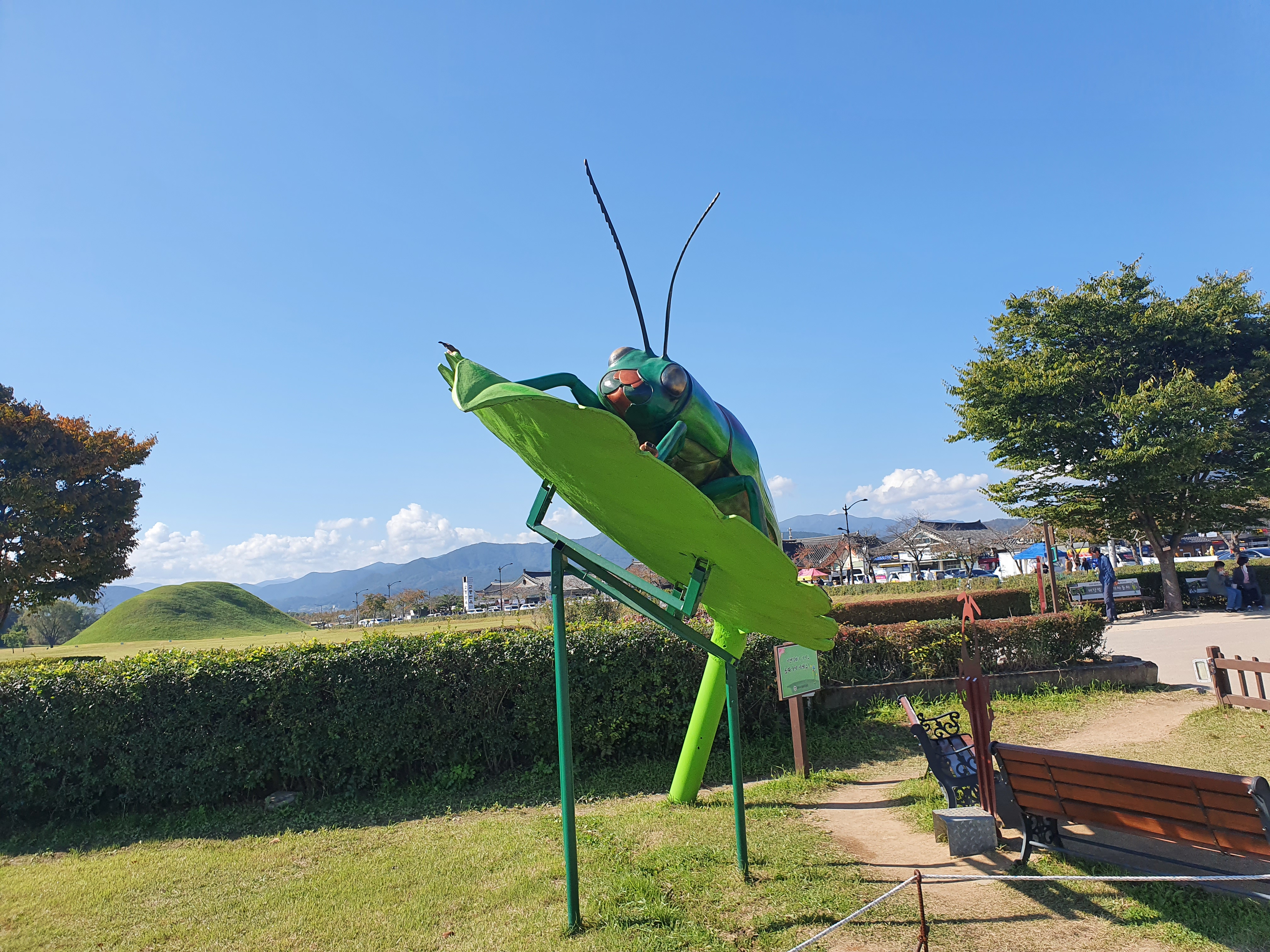 임 형이 경주 첨성대 인근에 핑크 뮬리 명소가 있다고 하여 찾아가 봤다. 어제저녁 호 박사를 기겁하게 만들었던 비단벌레 모형!! ㅋㅋ