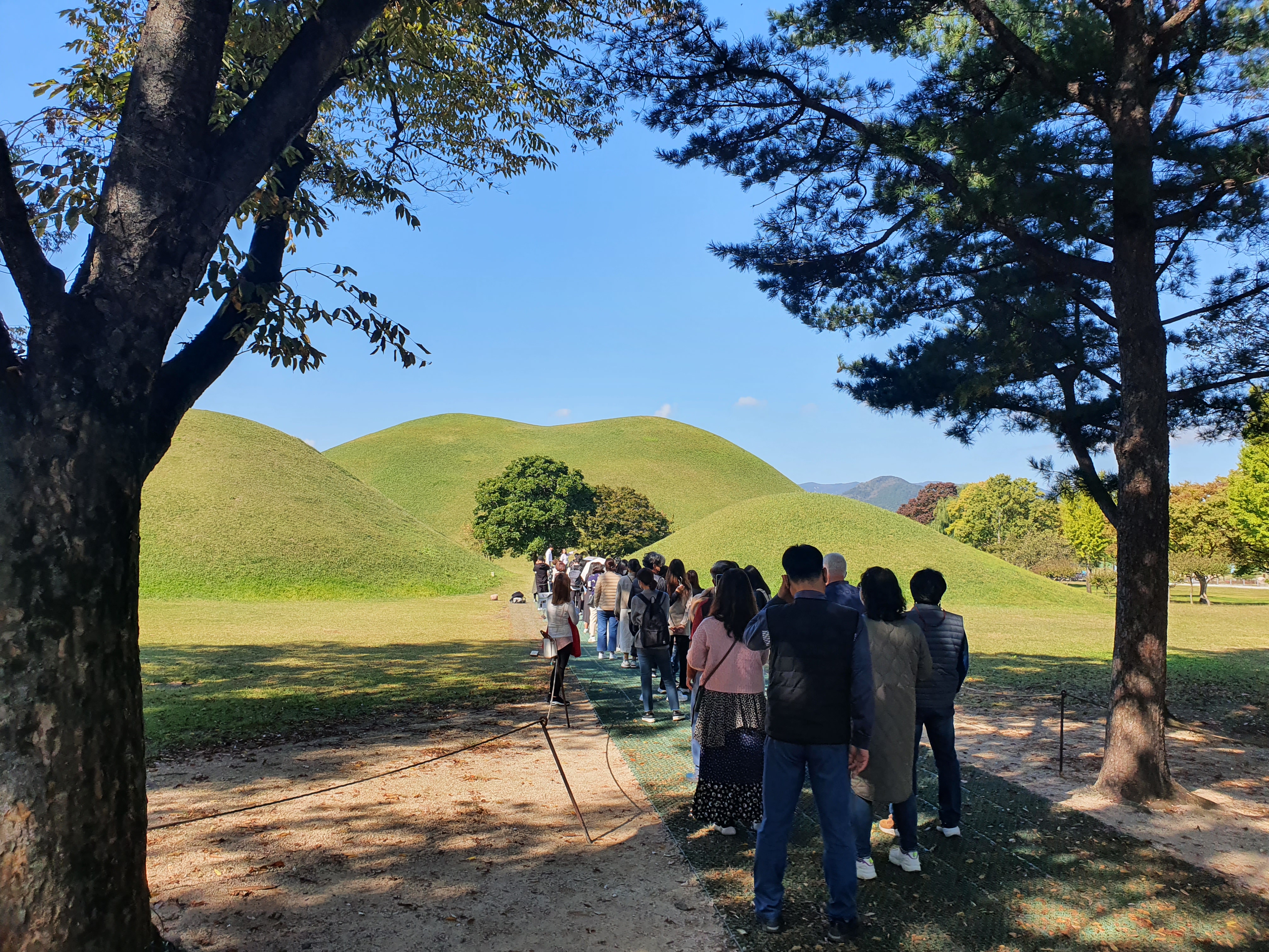 여기가 포토스팟! 사람들이 어마어마하다. 릉 사이로 예쁜 나무 두 그루가 떡하니 있는데 커플 사진 찍기 최적의 장소 같았다. 우리는 멀찍이 서서 사진만 찍고 돌아섰다.