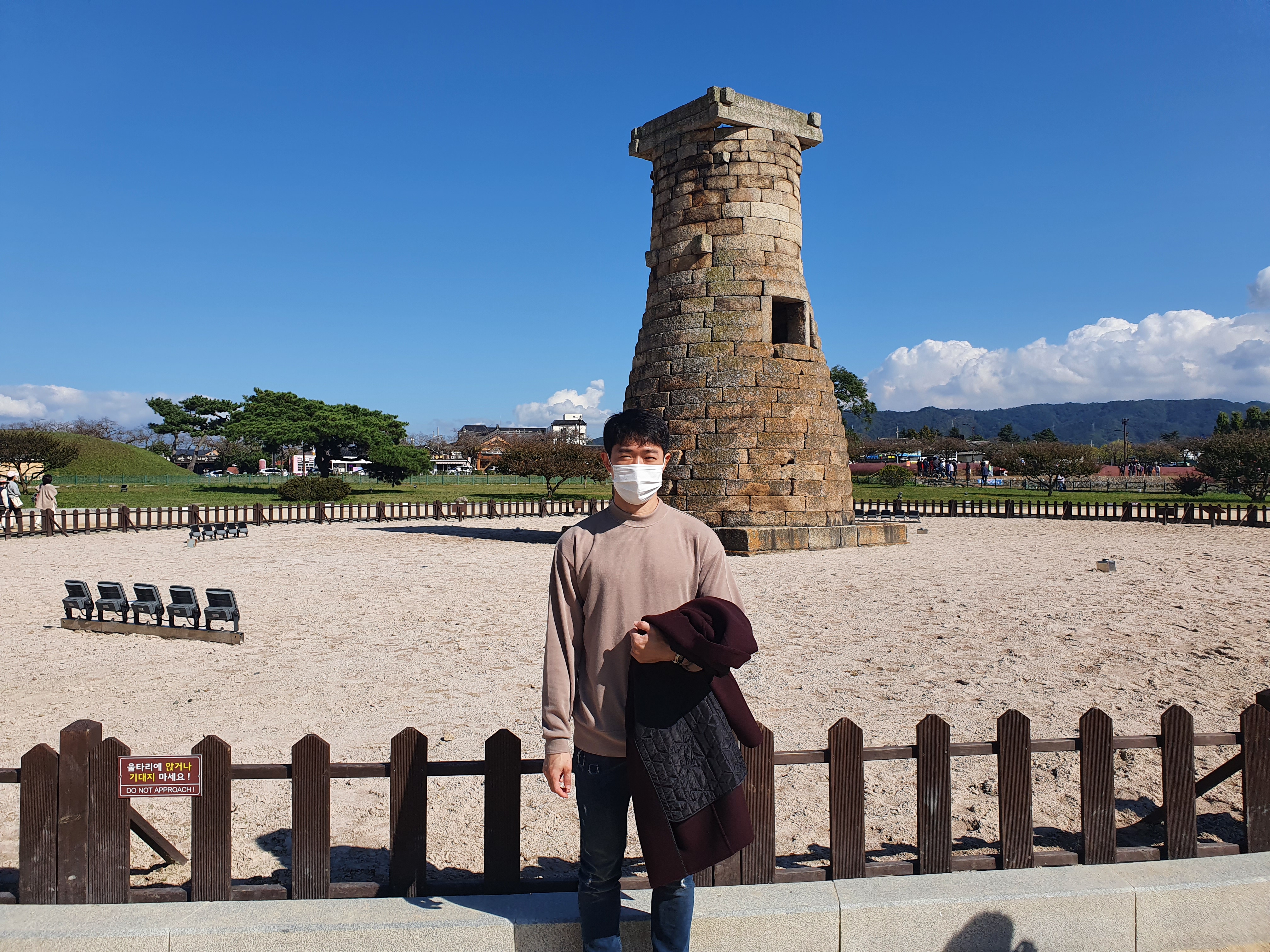 생각보다 낮의 첨성대도 나쁘지 않았다. 호 박사가 사진을 찍어 달라고 하니 나도 덩달아 한 컷..! ㅋㅋ