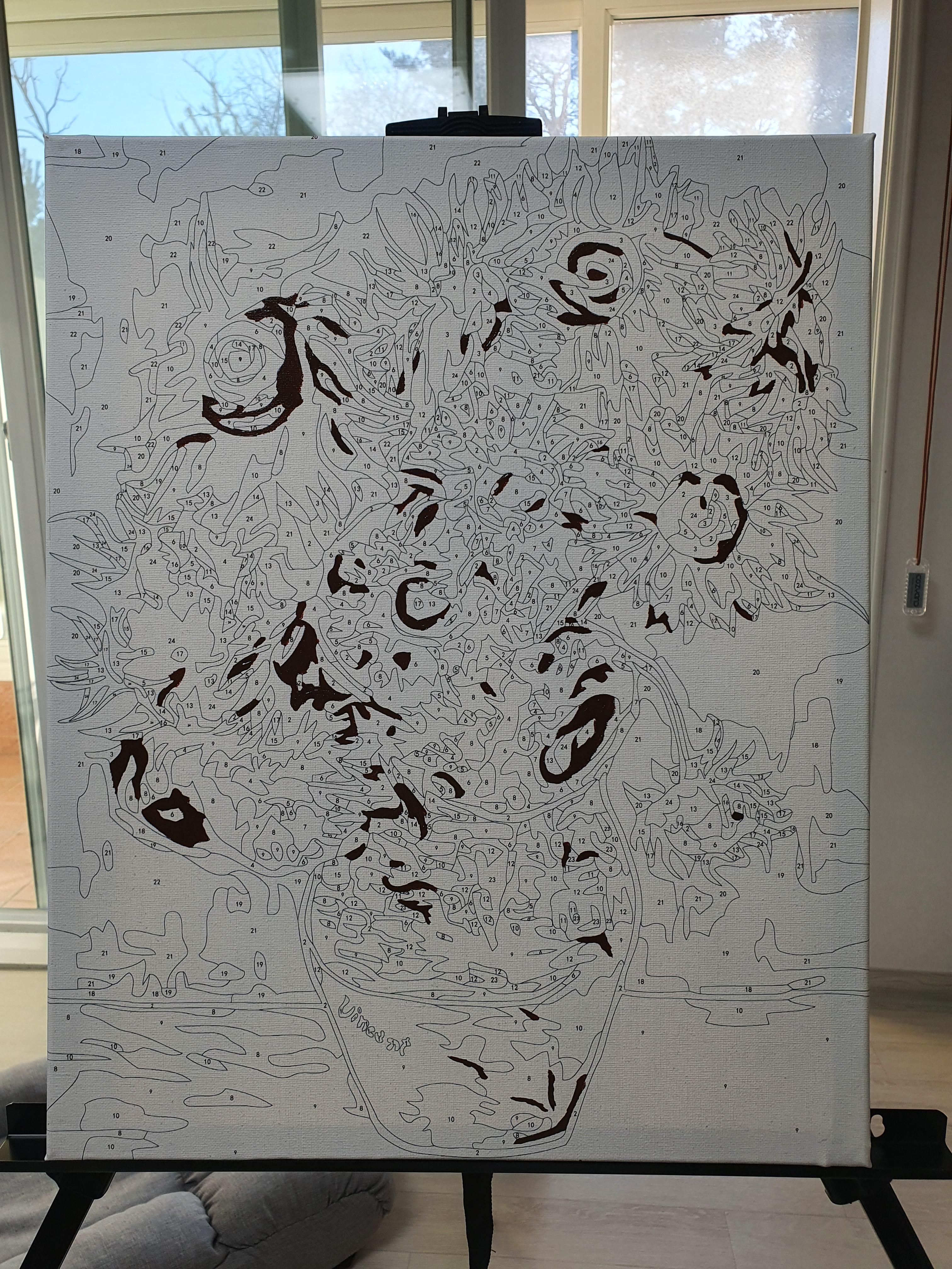 돌아온 뒤 또다시 작업에 열중했다. 진짜 해바라기 꽃잎을 색칠한 이후로 체감 난이도가 너무 떨어진 느낌이었다. 물론 내가 이 작업에 익숙해져서 그런 건지 모르겠으나 진짜 스피드가 확확 올라가더라. 원래 계획은 일요일에 마무리하는 거였는데.. 그냥 오늘 다 마쳐버리기로 했고.. 결국 완성...!