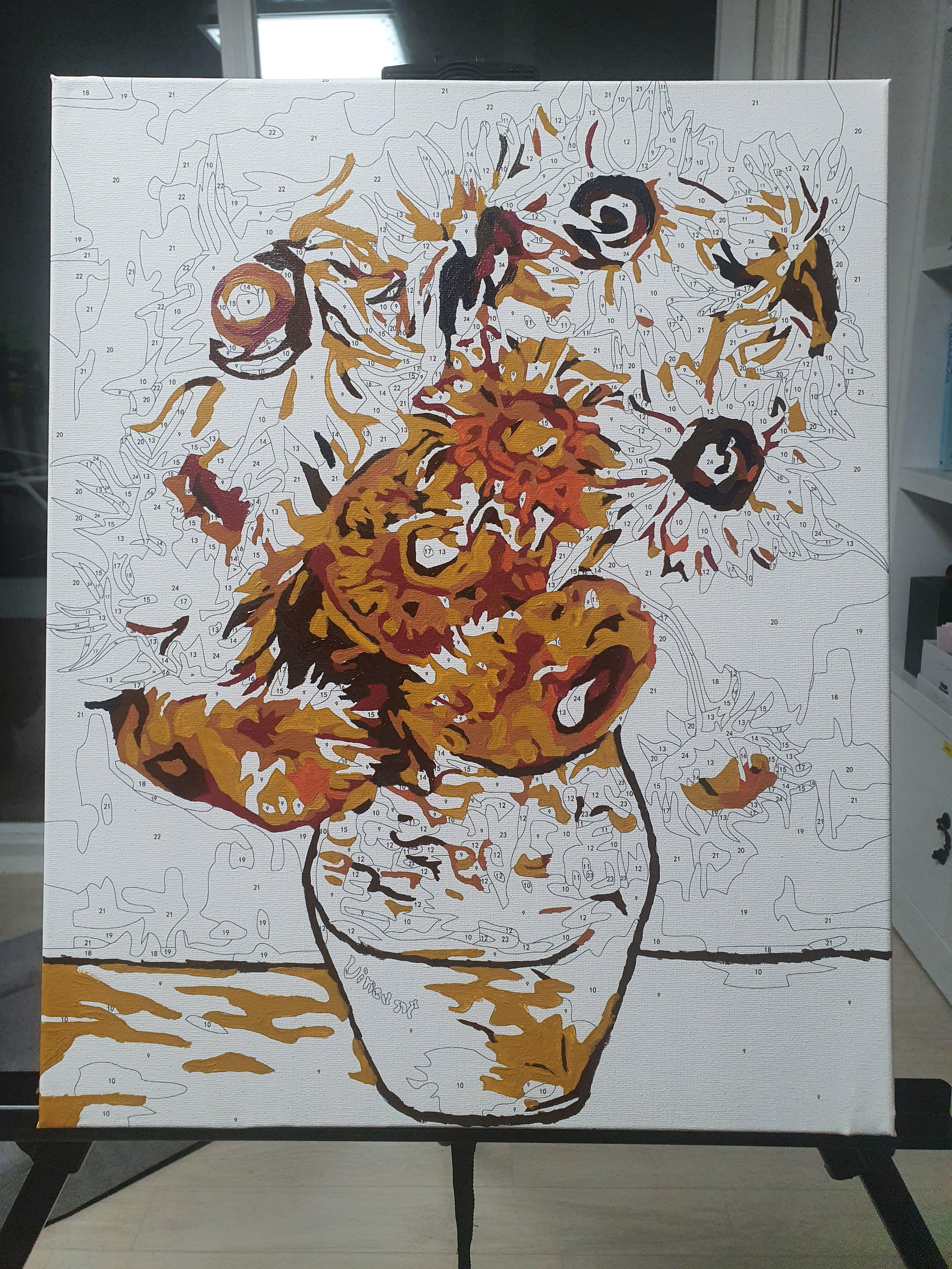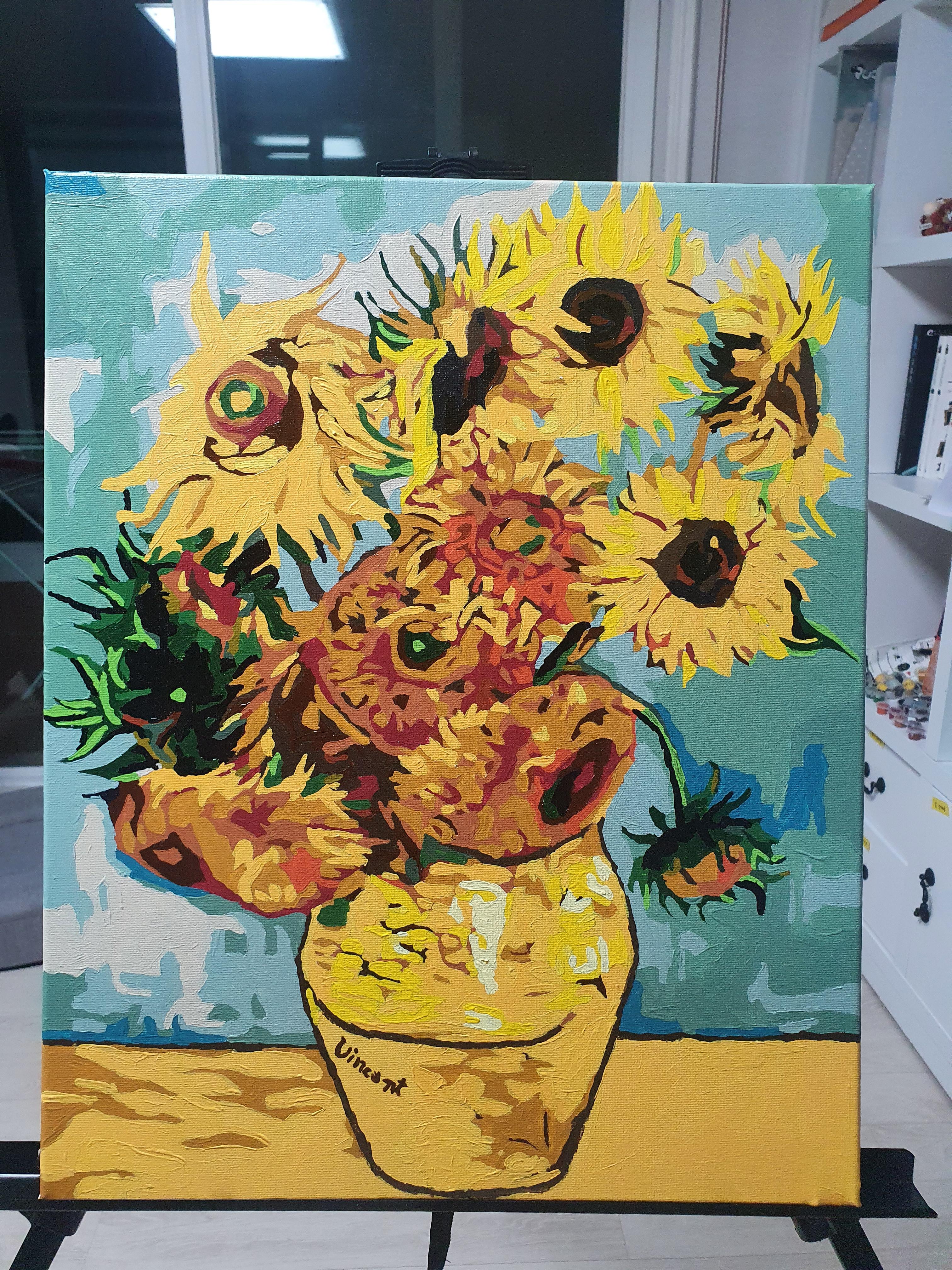 출처: 위키피디아 결국 고심 끝에 고른 작품이 바로 "해바라기"였다. 노란 빛깔이 뭔가 전체적으로 오피스에 밝은 기운을 줄 거 같았고.. 게다가 해바라기가 나름 재물운을 불러온다고 하여.. 크하하하. 요즘 자산시장이 왔다리갔다리 하는데 구복 신앙적인 느낌으로다가 오피스 환경 개선 및 재물운까지 노리는 일석이조 효과를 기대하며, 최종적으로 "해바라기"를 그려보기로 결정하였다.