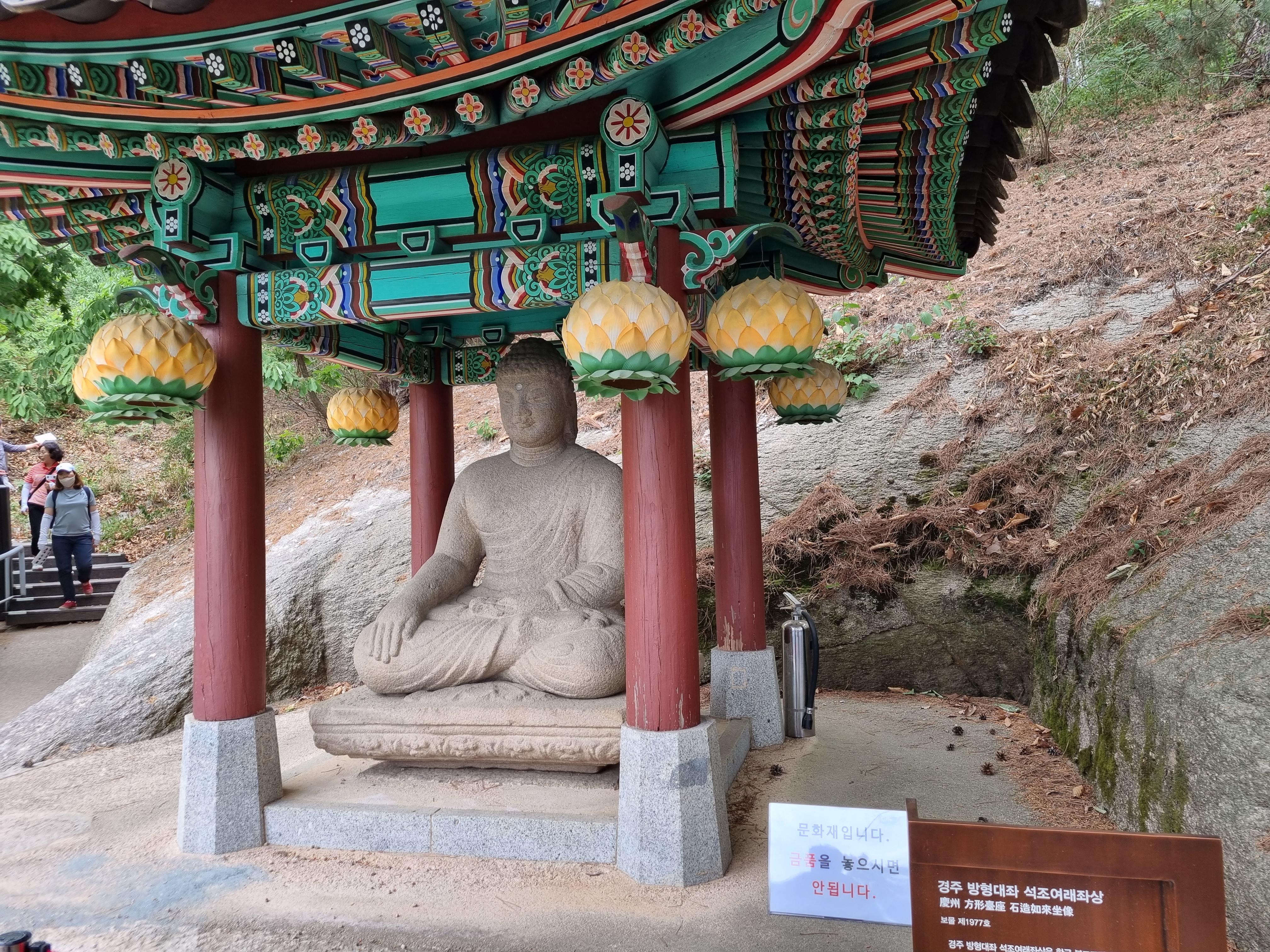 그리고 경주 방형대좌 석조여래좌상이 있다. 경주에 있어야 할 것이 왜 여기에 있냐 하고 검색해보니 1927년 총독부 관저를 새로 지으면서 옮겨왔단다.. 거참.. 제국주의자 놈들은 남의 문화유산을 이리저리 옮기는 걸 좋아하는 것 같다.