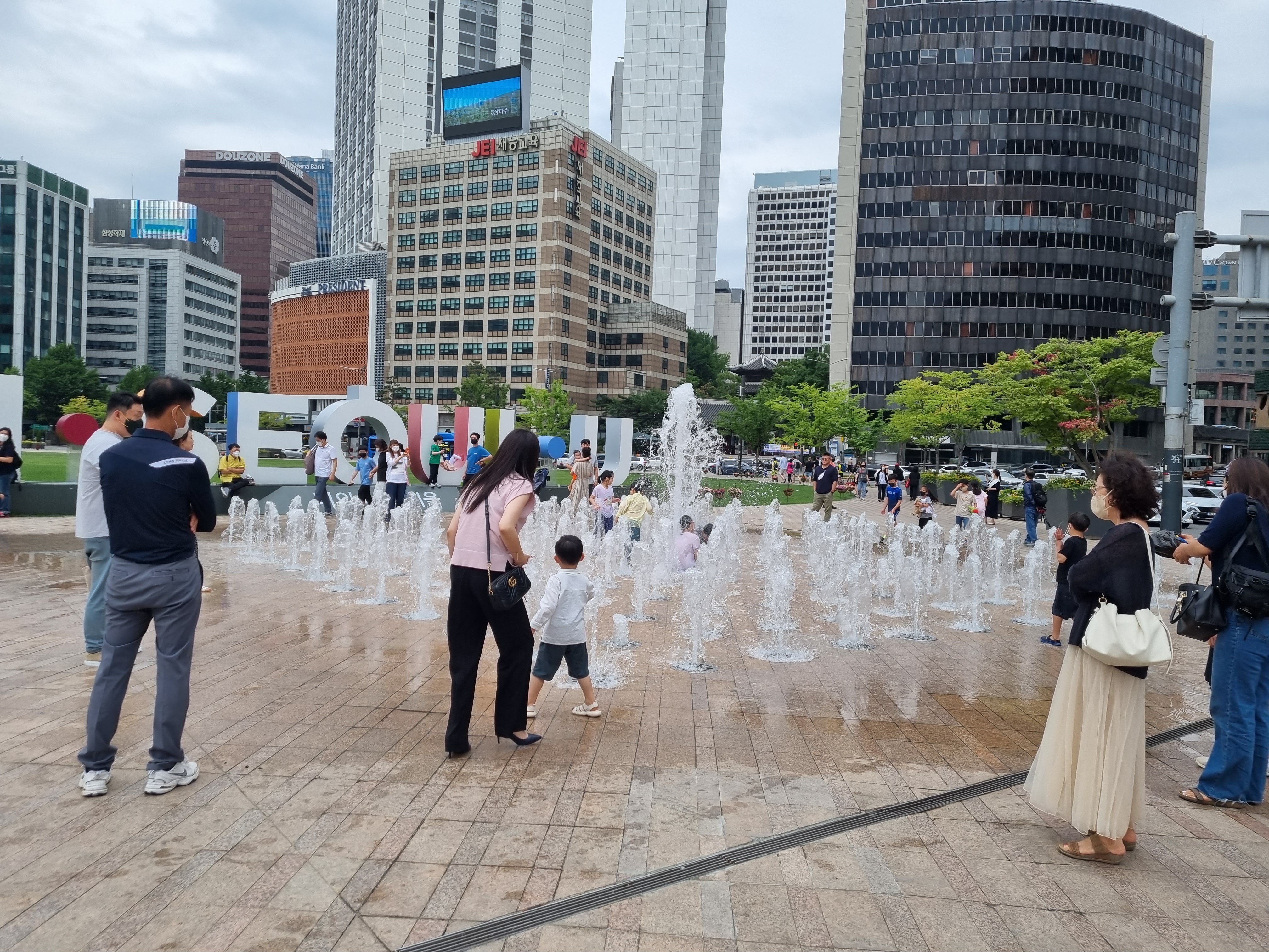 낮에는 시청에서 물놀이하는 아이들을 만날 수 있었다. 어릴 때는 저런 게 그렇게 재밌었는데 나이 드니 옷에 물이 젖는 게 왜 이렇게 싫냐..ㅋㅋ