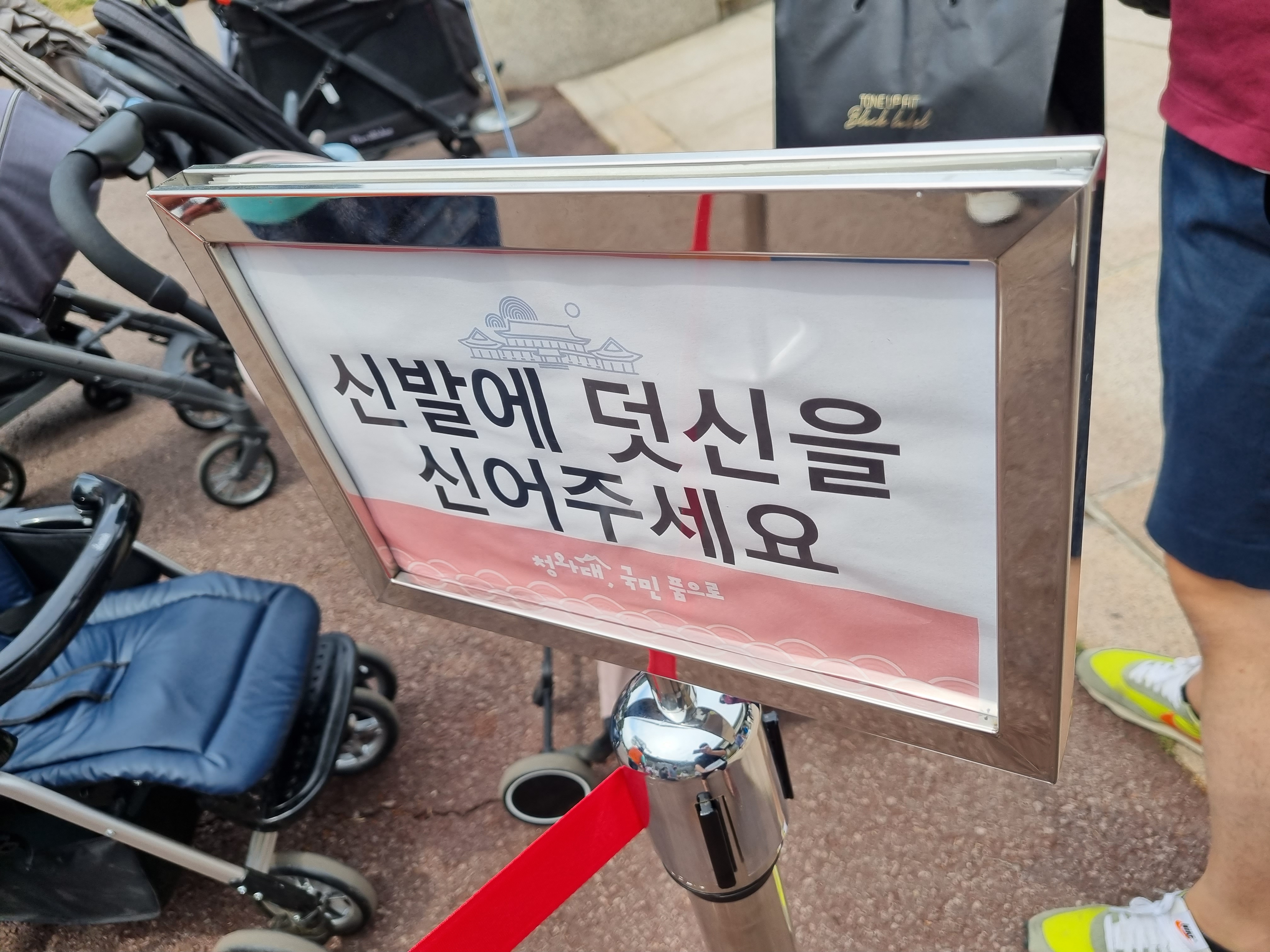 영빈관도 그랬지만 청와대 본관 입장 역시 어마어마한 대기줄에 놀랐다. 안내원이 정원부터 돌고 오시면 입장이 편하다고 하여 우리는 그 의견에 따라 바깥쪽부터 돌았다. 실제로 1시간 정도 정원을 둘러보고 본관 대기줄에 섰는데 대기표 상으로는 여기에서 대기하면 40분 정도 걸린다고 되어 있었으나 생각보다 줄이 금방 줄어 대략 10분 만에 본관에 입장할 수 있었다. 여하튼 안내원 말에 따르는 게 좋다는 얘기다.