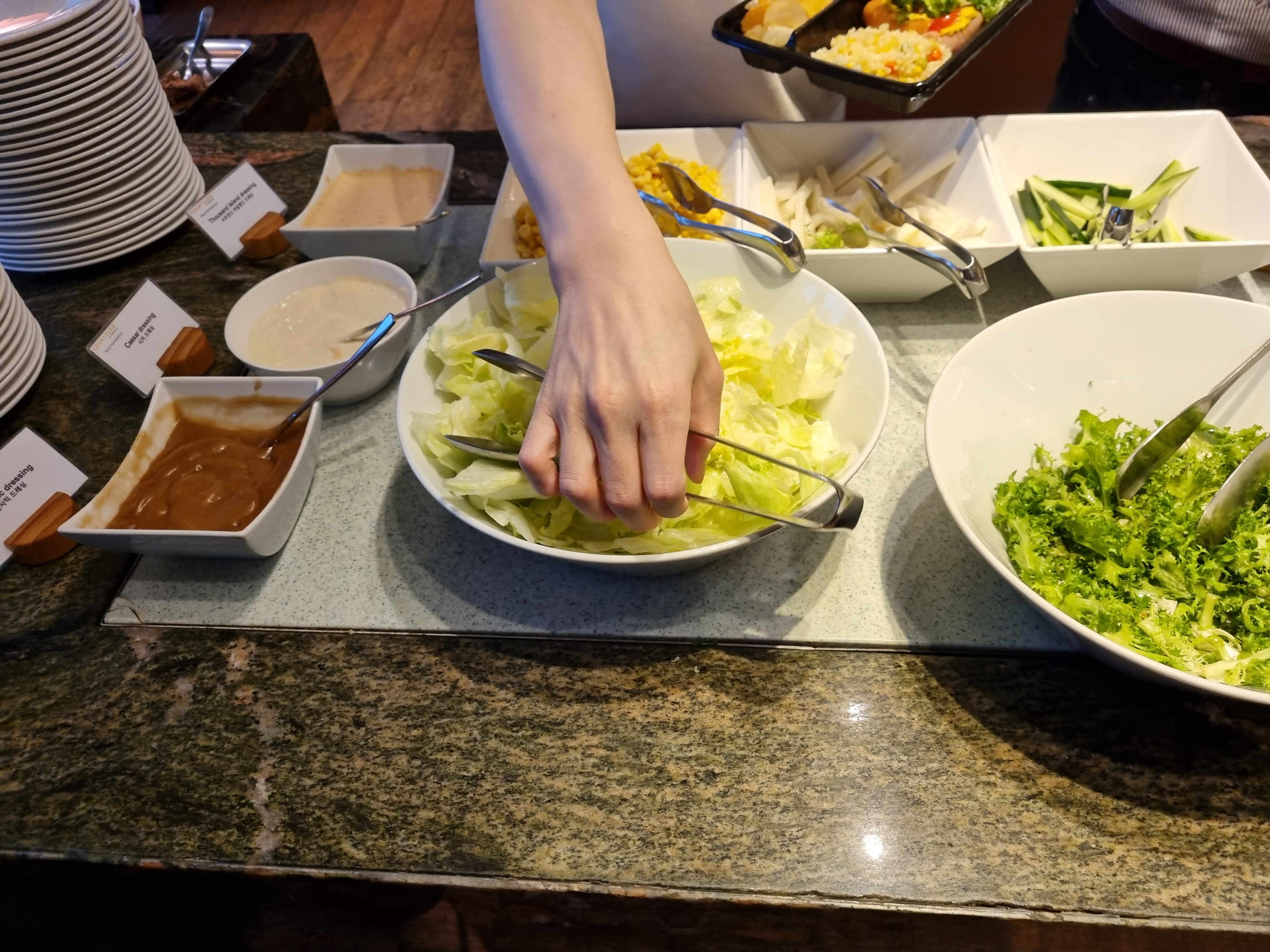 무려 1인당 3.9만원짜리 조식이다. 오전 6시 30분부터 시작인데, 꼭 일찍 와서 먹으라고 단단히 경고를 주었다. 엄빠 말씀으로는 7시가 넘어가니 어마어마하게 사람들이 대기하고 있더라고 했다... 우리야 워낙 일찍 일어나는 스타일이어서 문제 없었다.