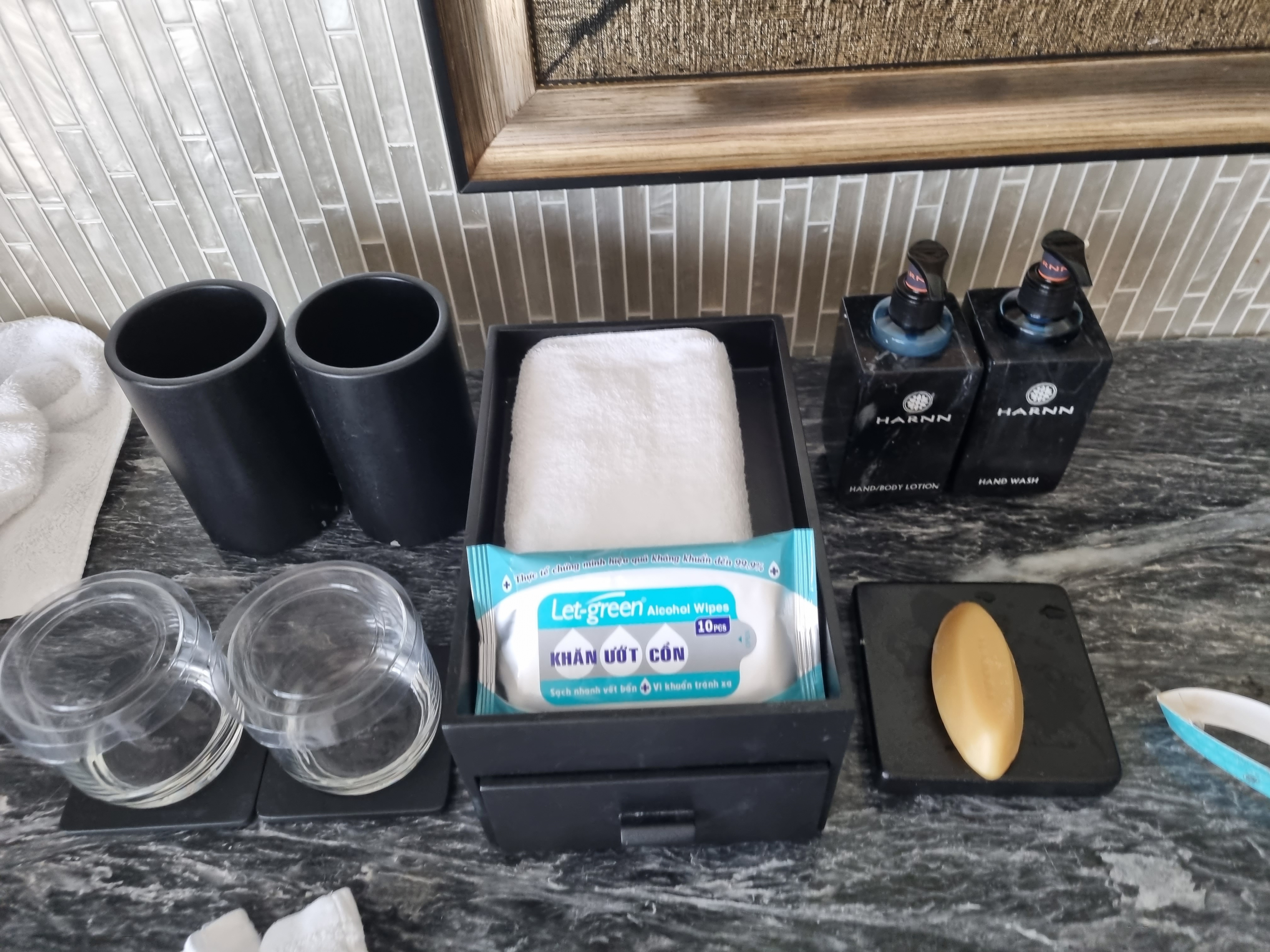 물티슈와 이런저런 어메니티가 준비되어 있었다.
