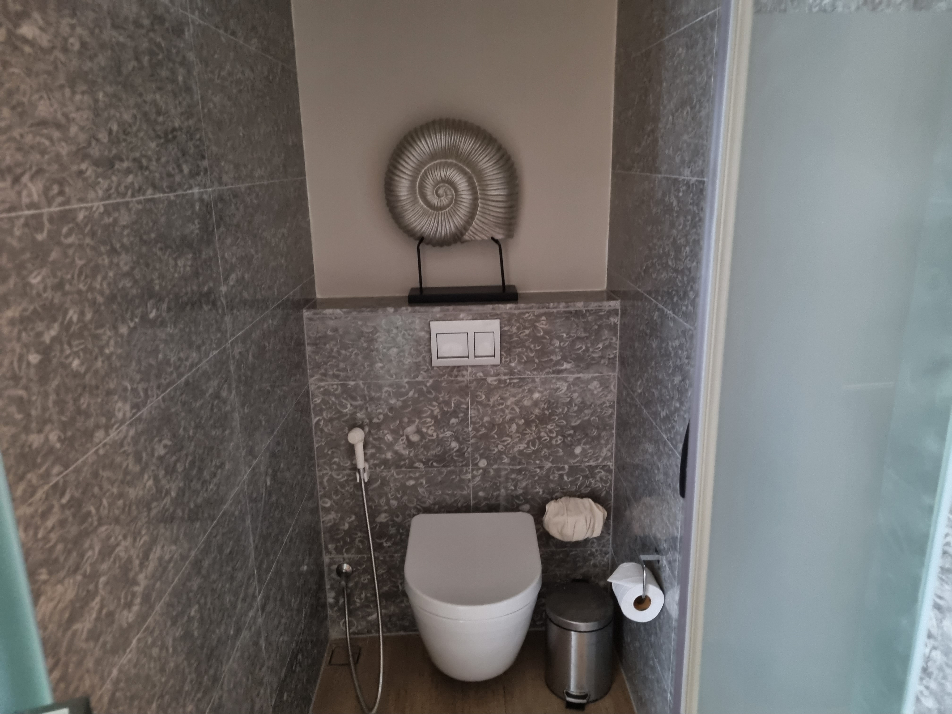햇볕을 감상할 수 있는 소파가 있다. 하지만 그러기엔 날씨가 너무너무 끔찍해...ㅠㅠ 층이 낮아 바다를 온전히 감상하기는 힘들었다. 5층만 되어도 훨씬 뷰가 좋을 것 같다.