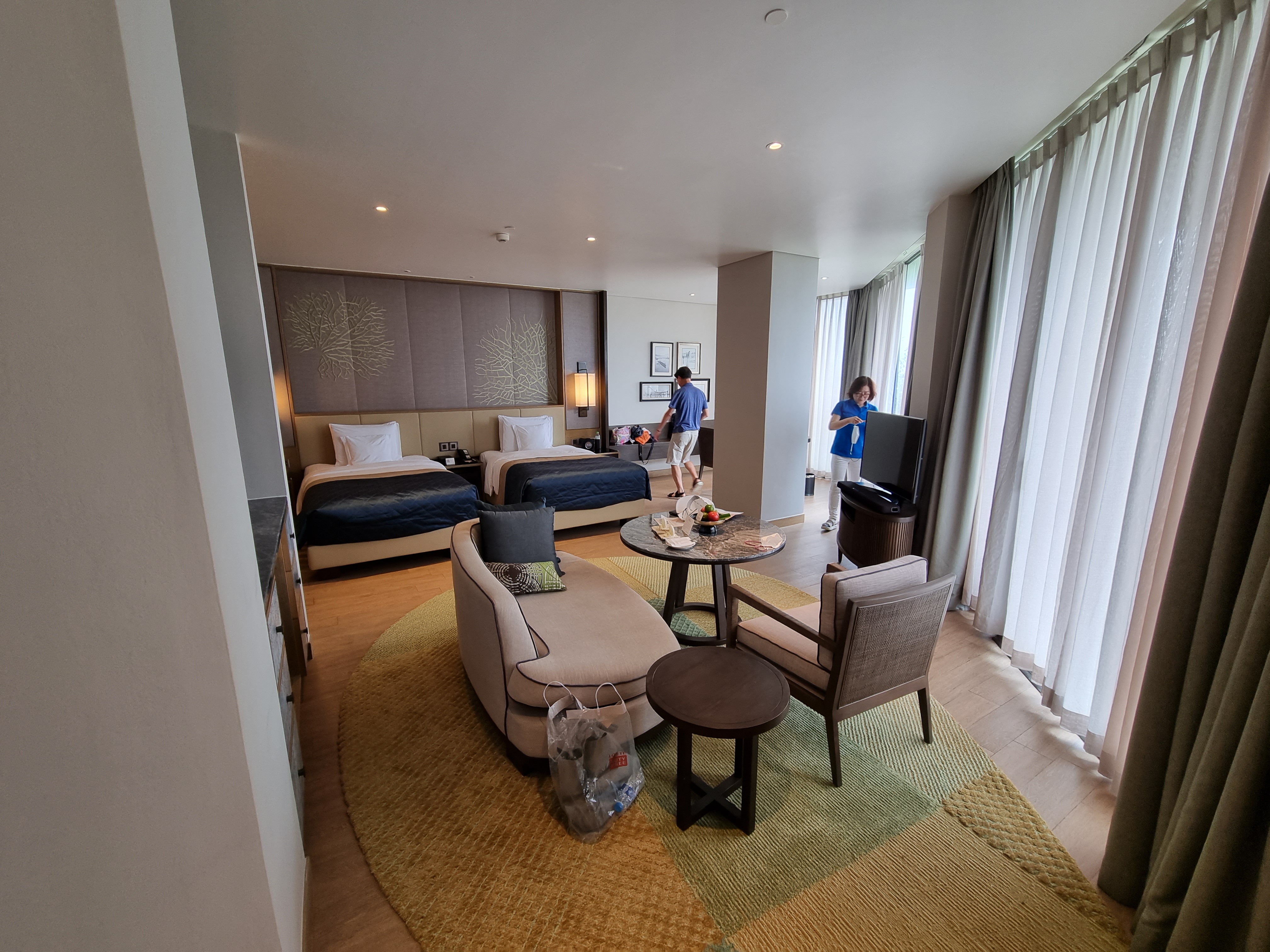 인터컨티넨탈 푸꾸옥은 가격대비 매우 괜찮은 컨디션을 자랑하는 호텔인 것 같다. 특히 멋스럽게 물놀이하기에는 최적의 호텔이라고나 할까? 그래도 뭔가 오래된 느낌을 피할 수는 없어 보였다. 초반에 에어컨이 제대로 동작하지 않아 한 2시간 동안 고생을 하기도 하였고, 냉장고도 제대로 돌아가지 않아 다른 제품으로 교체를 하였으나 여전히 뜨끈 미지근했다. 그래도 최대한 빨리 그리고 친절하게 대응을 하려고 노력해주어 엄청 불만을 가지기도 어려웠다고나 할까..ㅋㅋ 여하튼 호텔 조식당 및 수영장에서 바라보는 뷰 자체는 너무 훌륭하니 물놀이 위주로 즐길 생각이라면 인터컨을 추천한다!!