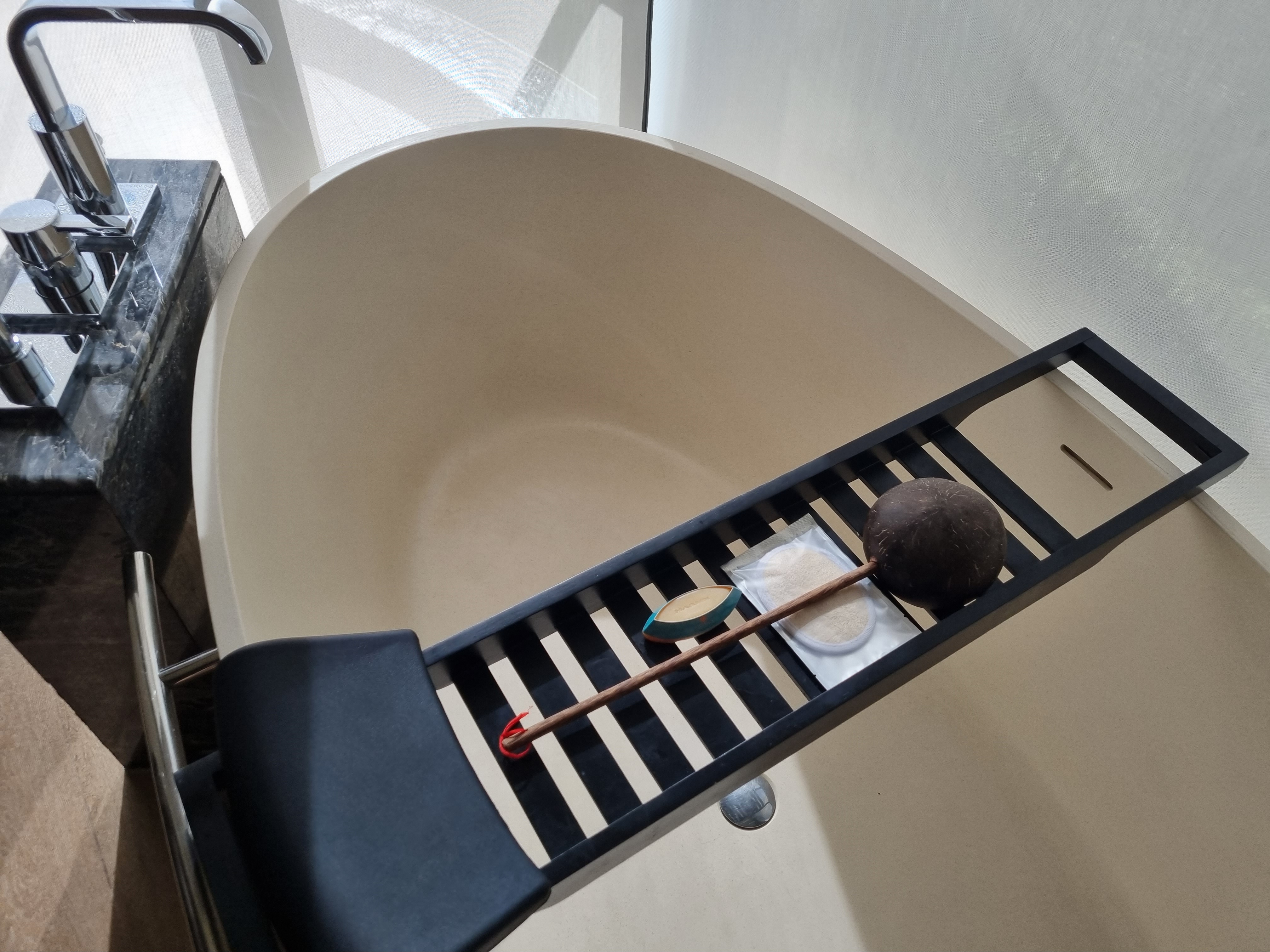 욕조 위에는 센스 있게 독서대와 목욕할 때 요긴하게 사용할만한 쪽박(?)이 하나 있다.