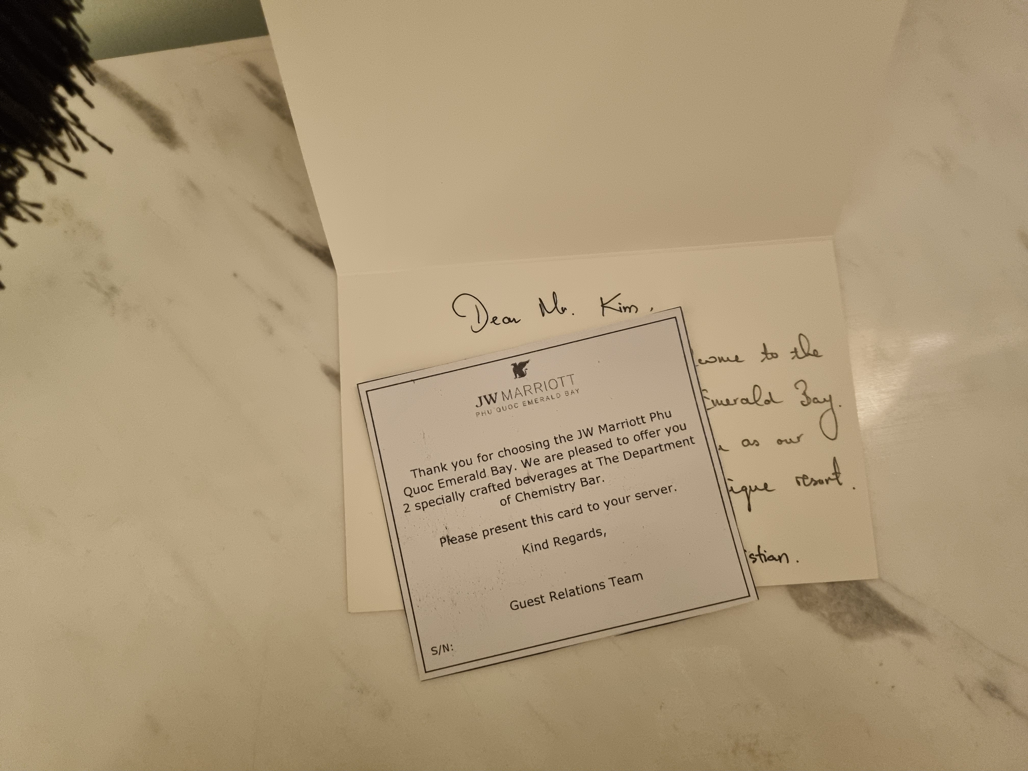 이틀 동안 인터컨에서 머무른 후 우리는 푸꾸옥 남동쪽에 위치한 JW Marriott로 향했다. 이곳에서 3일을 머무를 계획이다. 리츠칼튼 카드 멤버십 혜택으로 Suite Upgrade 쿠폰을 사용했는데 한국에서는 그렇게 통하지 않더니 푸꾸옥에서는 업그레이드가 승인되었다는 메시지가 와서 내심 기대하고 있었다.