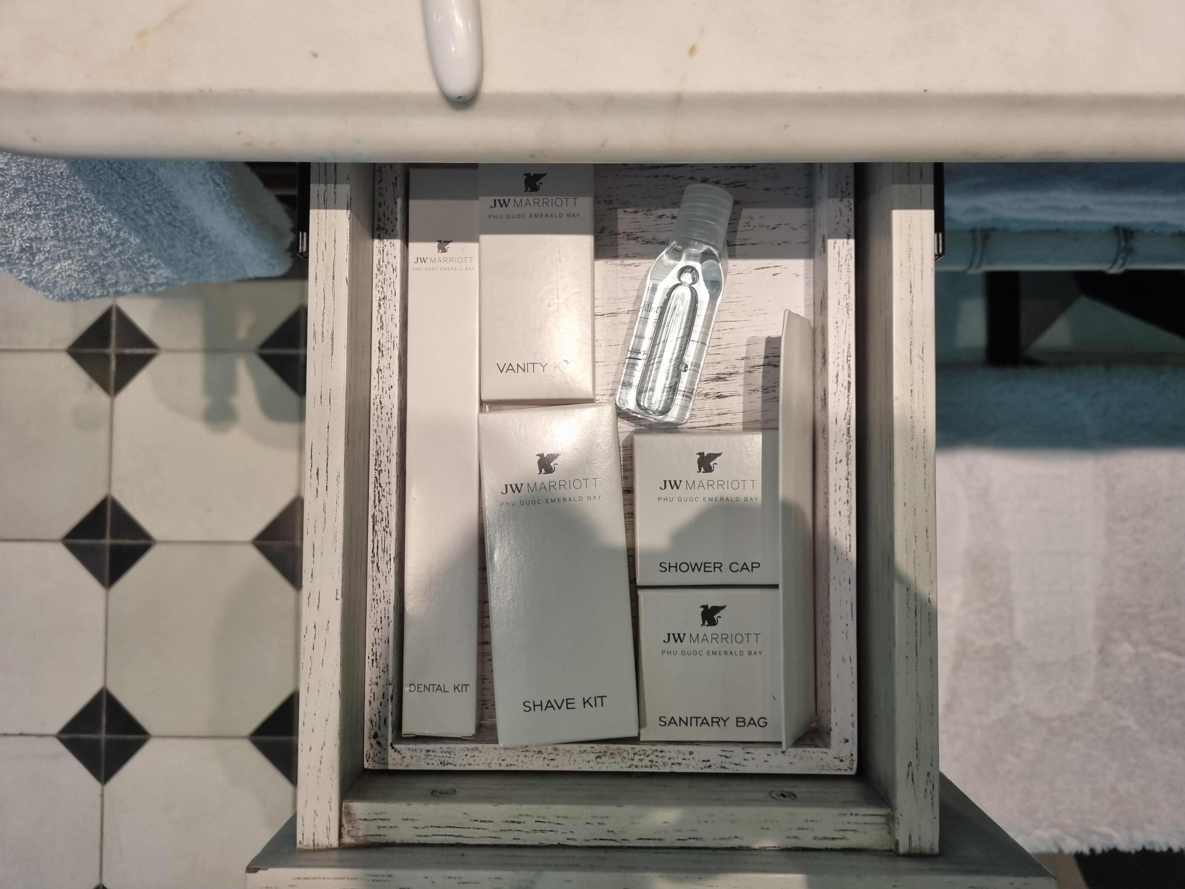 많은 것들이 갖추어져 있다. 실내 슬리퍼도 그렇고 물놀이용 가방이나 모자도 다 뭔가 더 고급져 보였다. JW Marriott 종이백은 기념품으로 챙겼다..ㅋㅋ