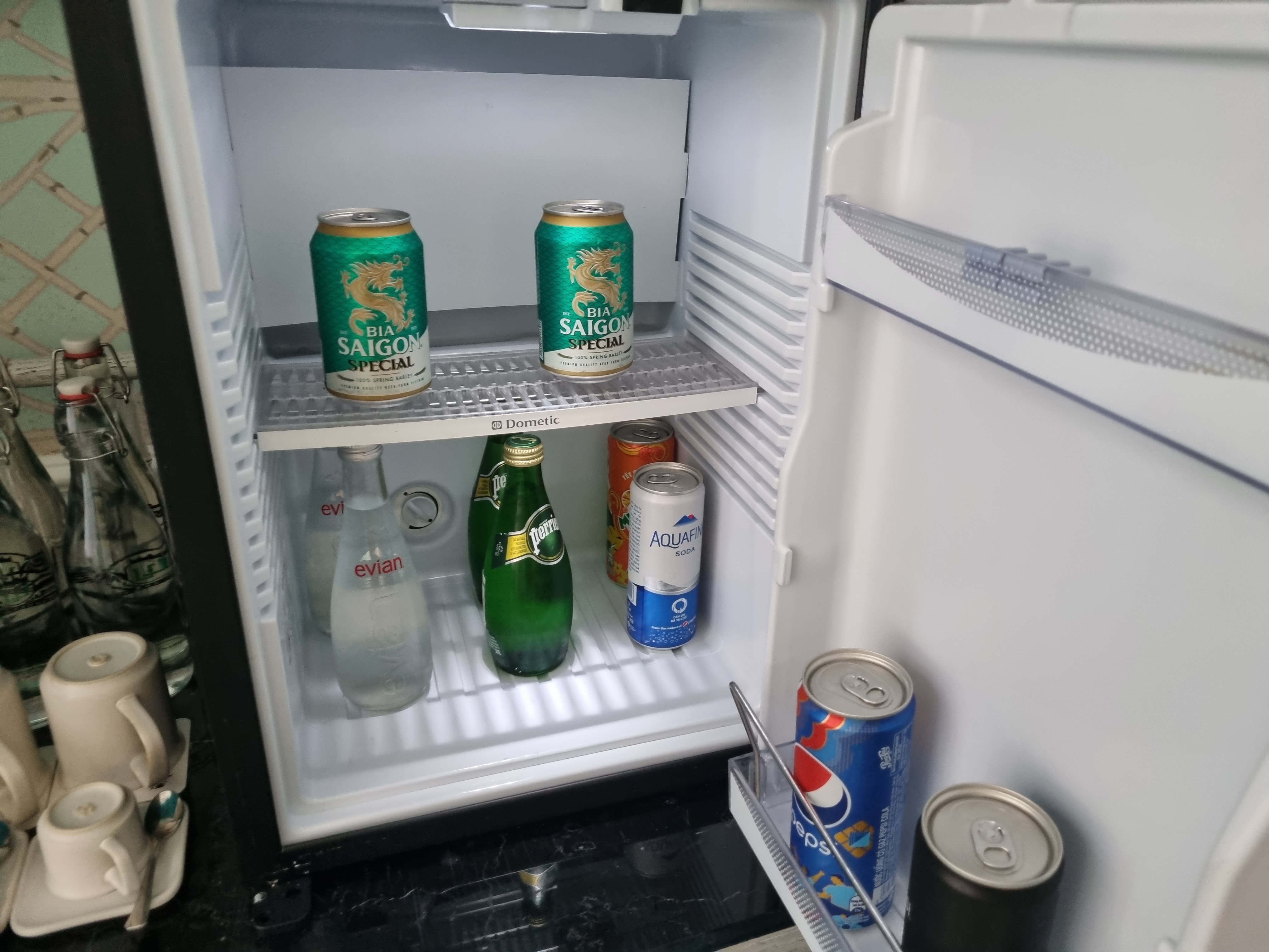 출입문 왼편에는 장롱이 있는데 열어보면 냉장고와 물 그리고 잔이 준비되어 있다.