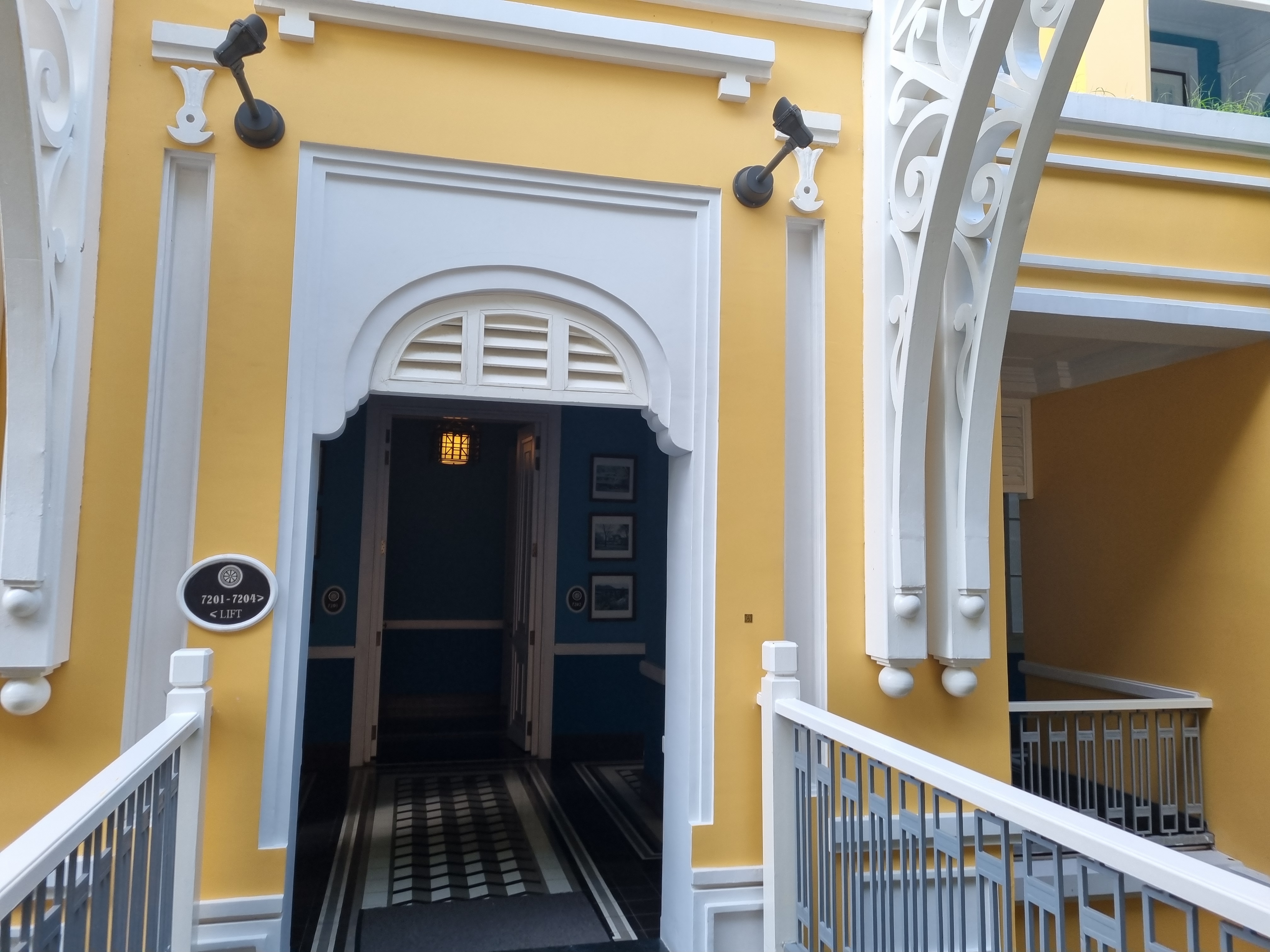노란빛이 영롱한 건물이다. 1층은 해변가와 바로 연결되어 있고 통행은 2층으로 해야한다.