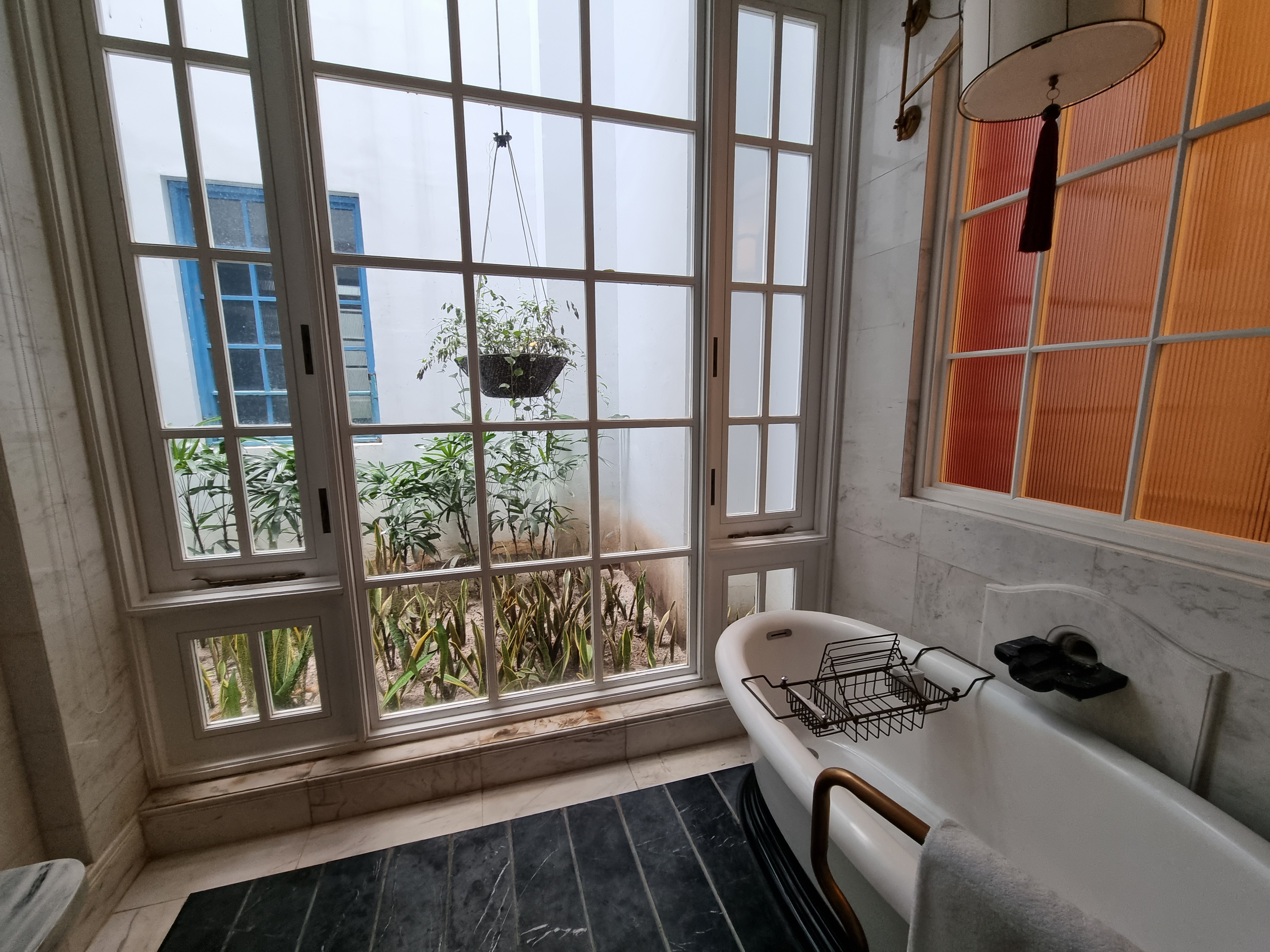 욕조 크기는 비슷한데 수도 방식이 좀 다르다. 기본 방은 벽에서 물이 나온다. 수도 밸브는 세면대 쪽에 위치해 있었다.