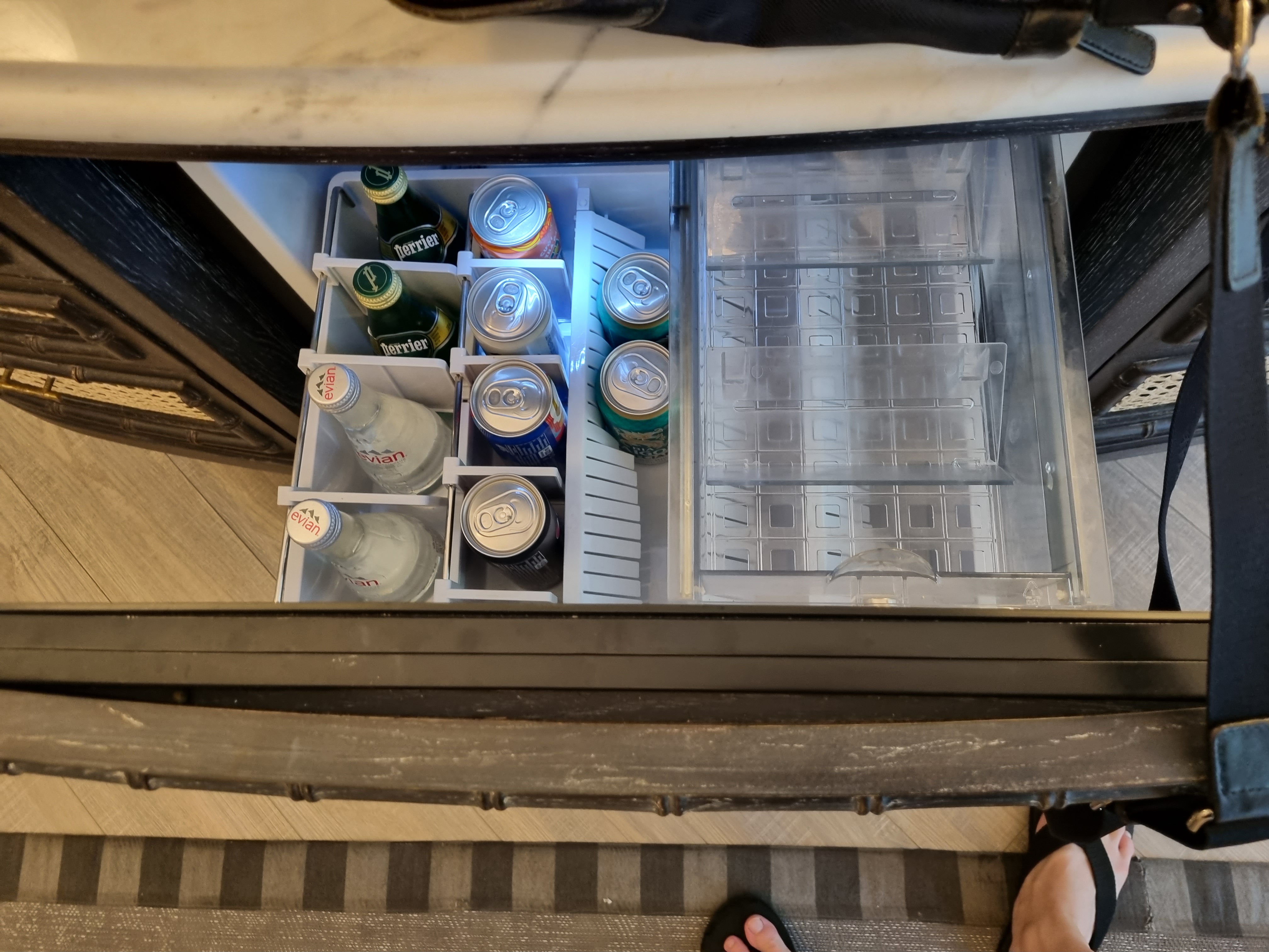 선반을 뒤져보니 이렇게 냉장고가 숨겨져 있었다. 냉장고가 좀 작다.