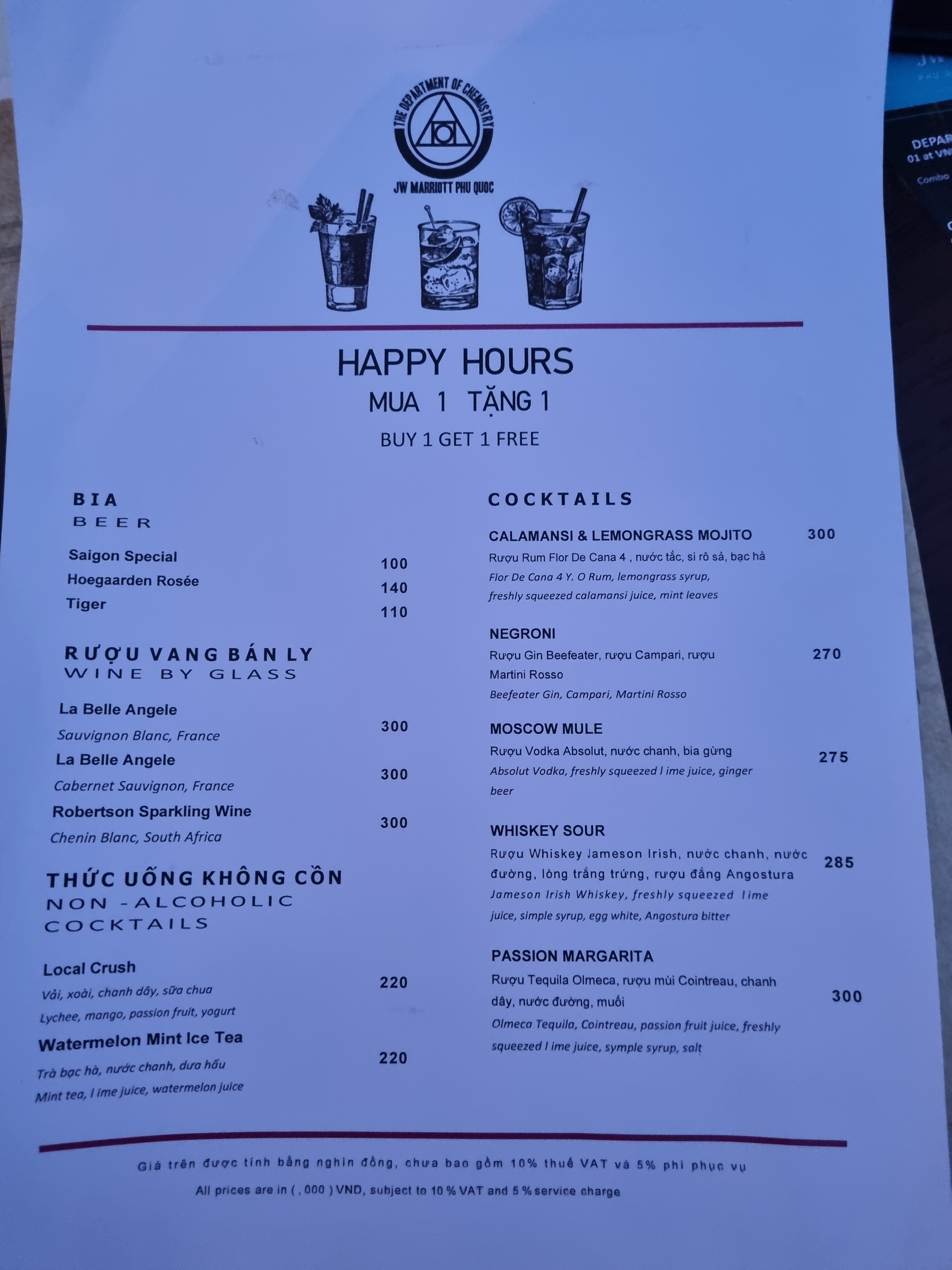 마지막 날 출국 시간을 기다리며 체크인 때 받은 음료 쿠폰을 쓰고자 Department of Chemistry Bar를 찾아갔다.