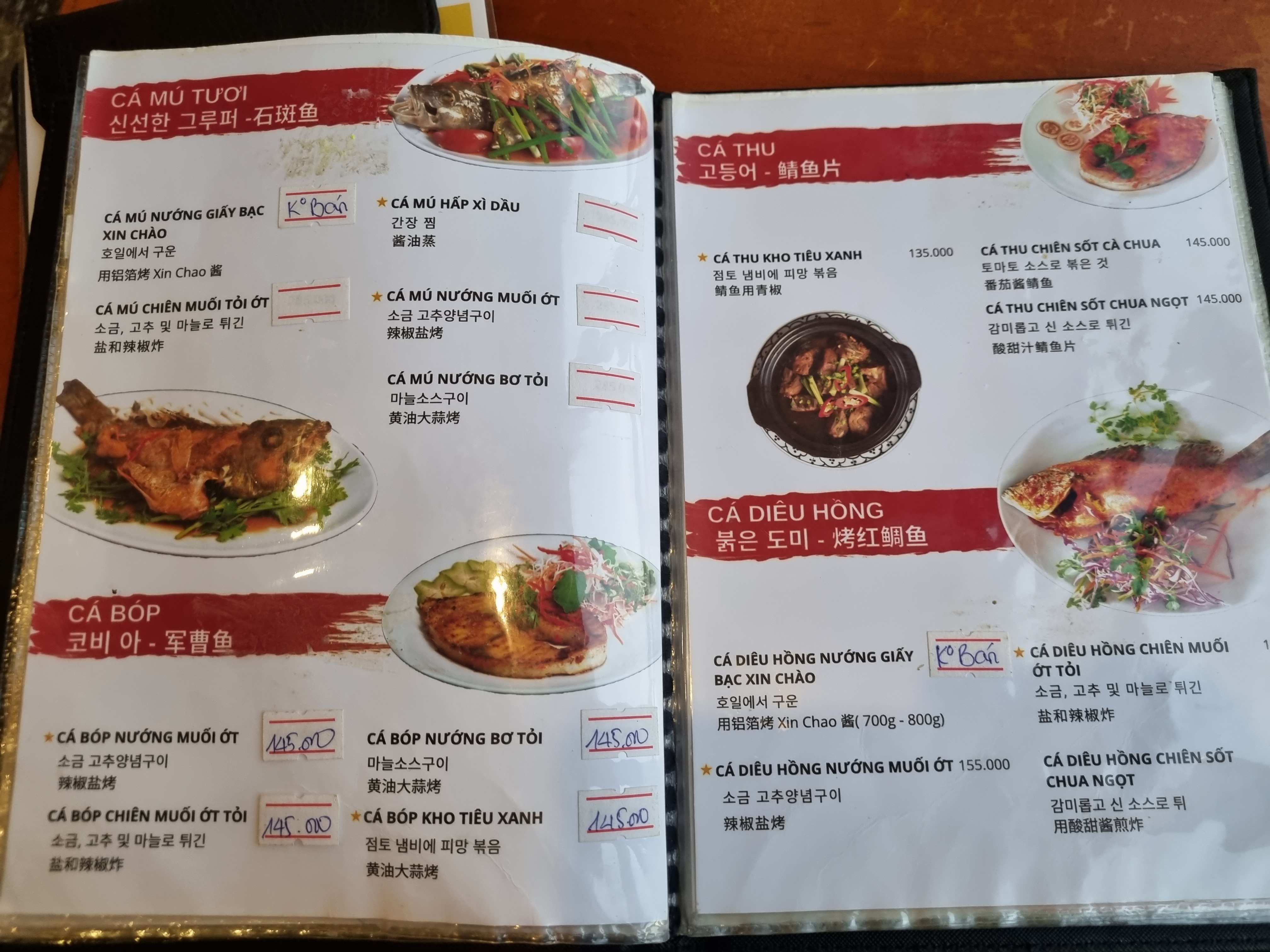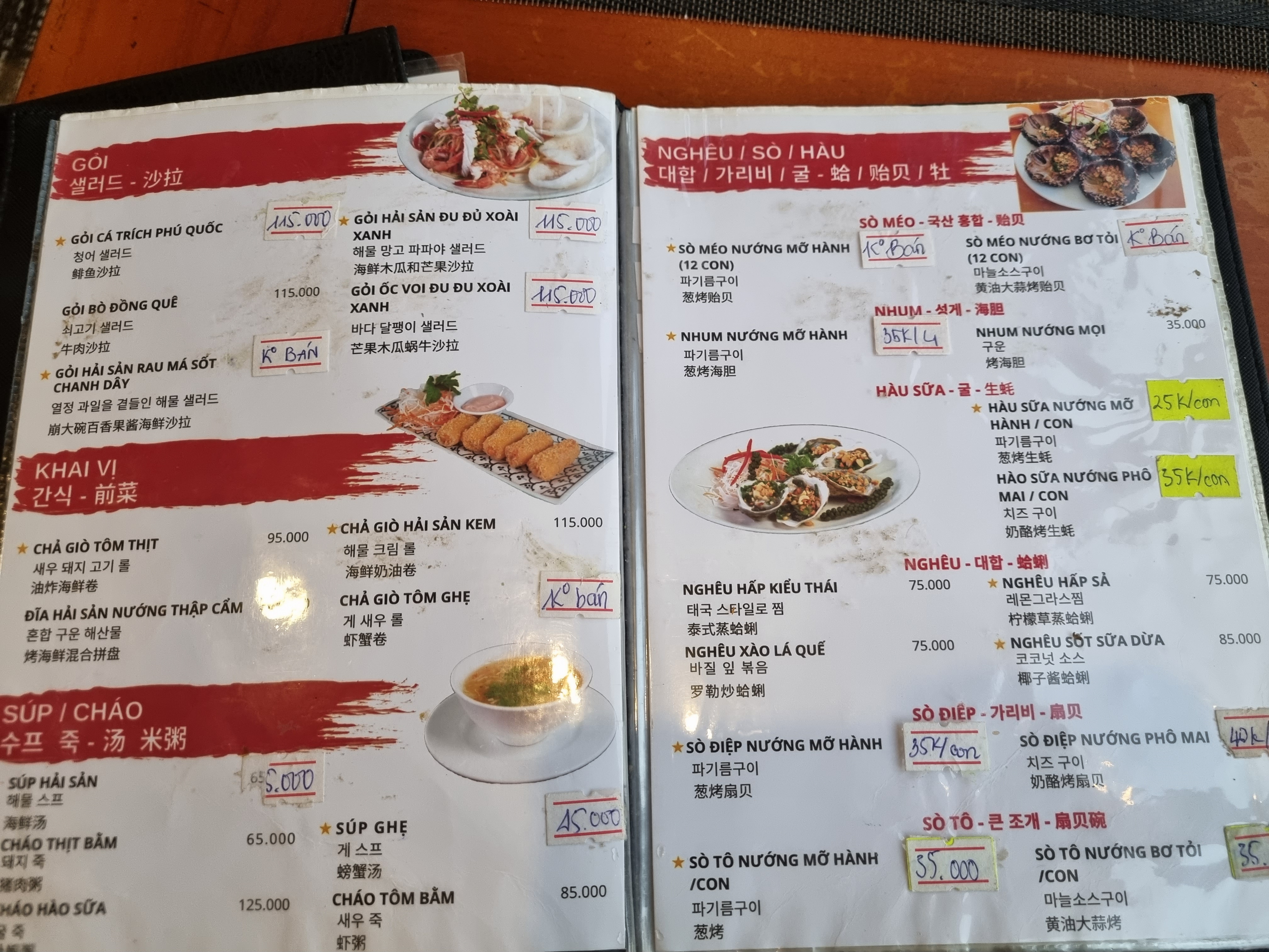 주문한 메뉴와 가격이다.. 뭐가 더 붙었는지 알 수 없지만 가격은 866,000 VND로 호텔에서는 상상도 할 수 없는 가격에 정말 배 터지게 먹었다. 계산은 현금으로 했다.