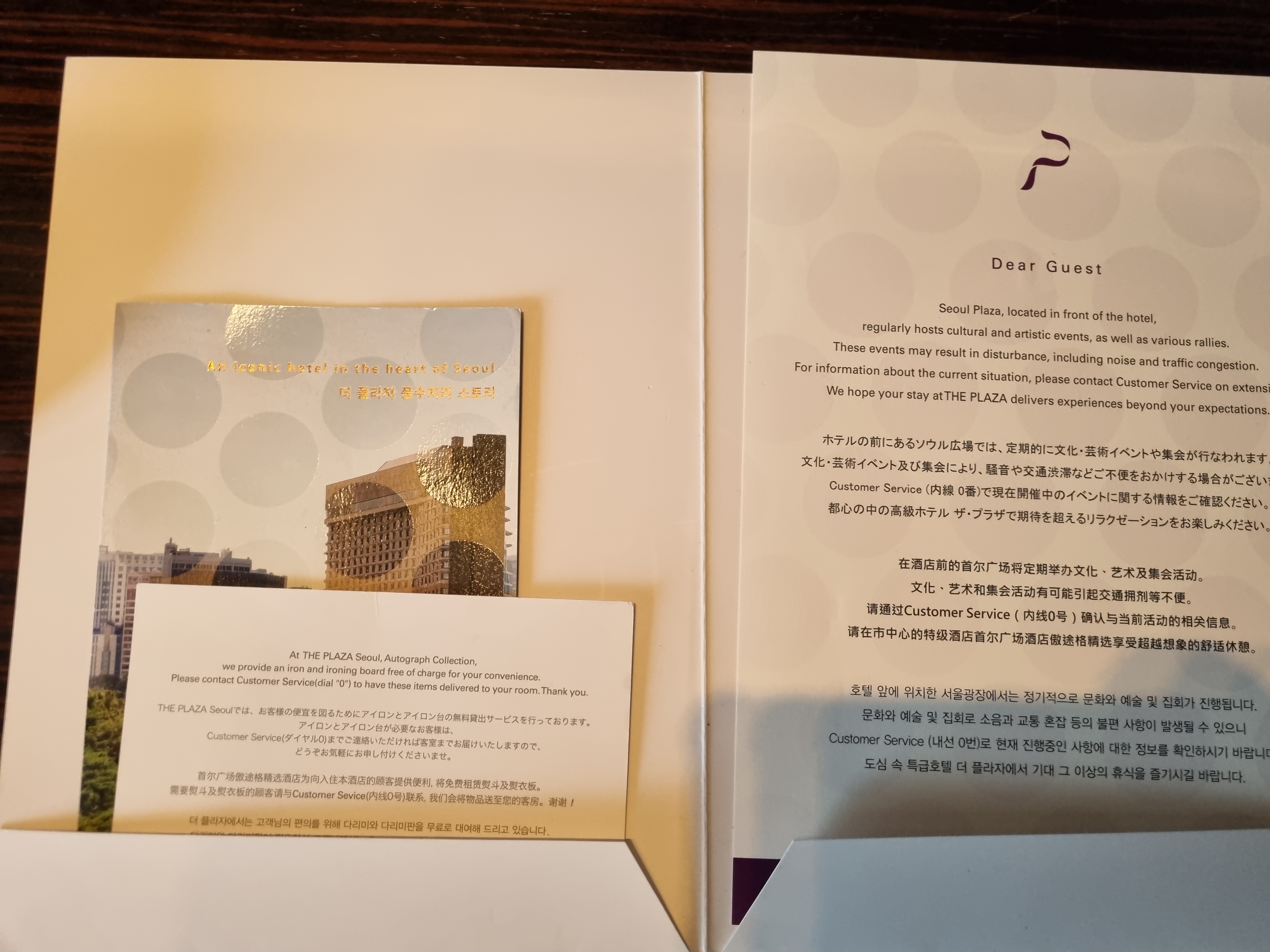 테이블에는 호텔에 대한 안내가..