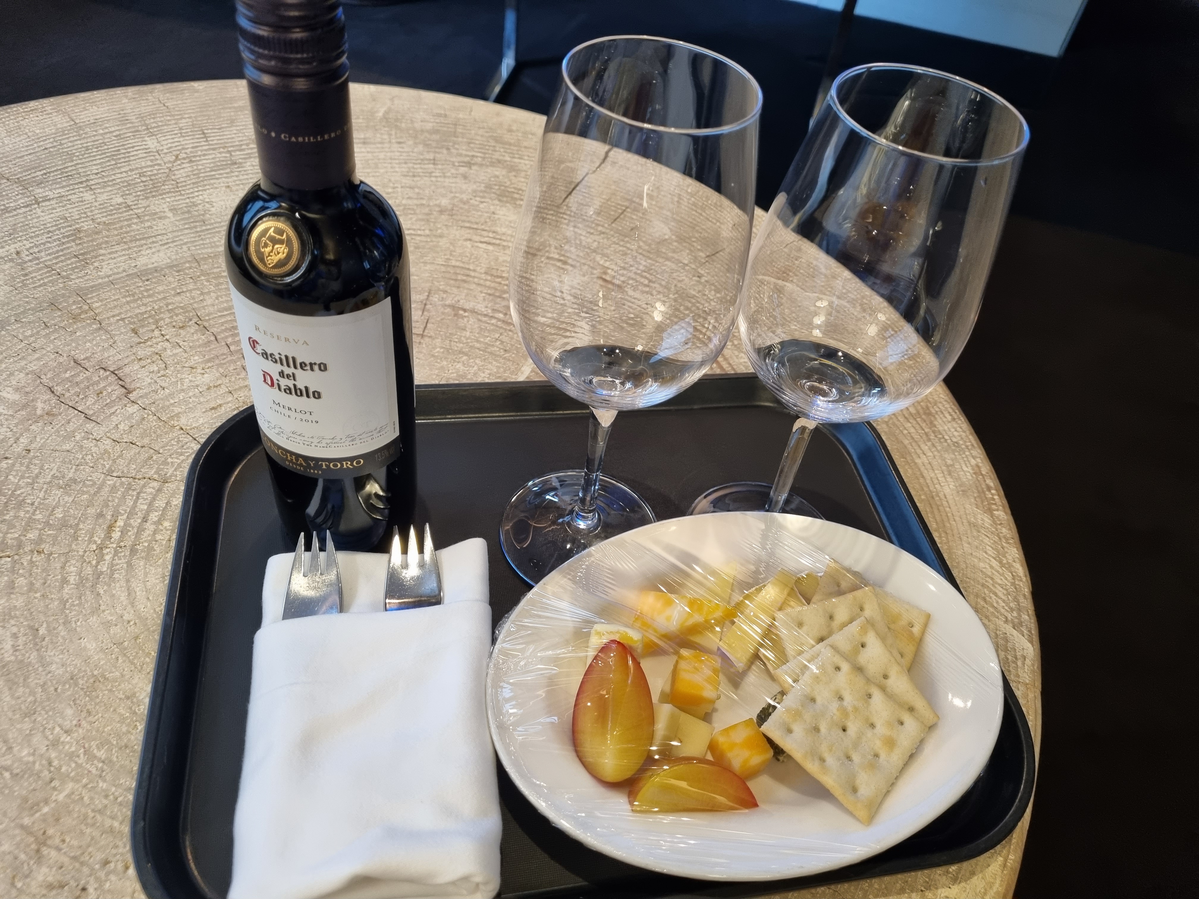 아! 체크인할 때 웰컴 기프트를 선택할 수 있는데 꽤나 옵션이 많았다. 주류로 레드와인 1/2병, 스낵으로 치즈 플래터를 골랐다. 가져와 주실 시간도 지정할 수 있었는데 자리를 비운 상태여서 이렇게 방 안에 잘 두고 나가셨더라..!