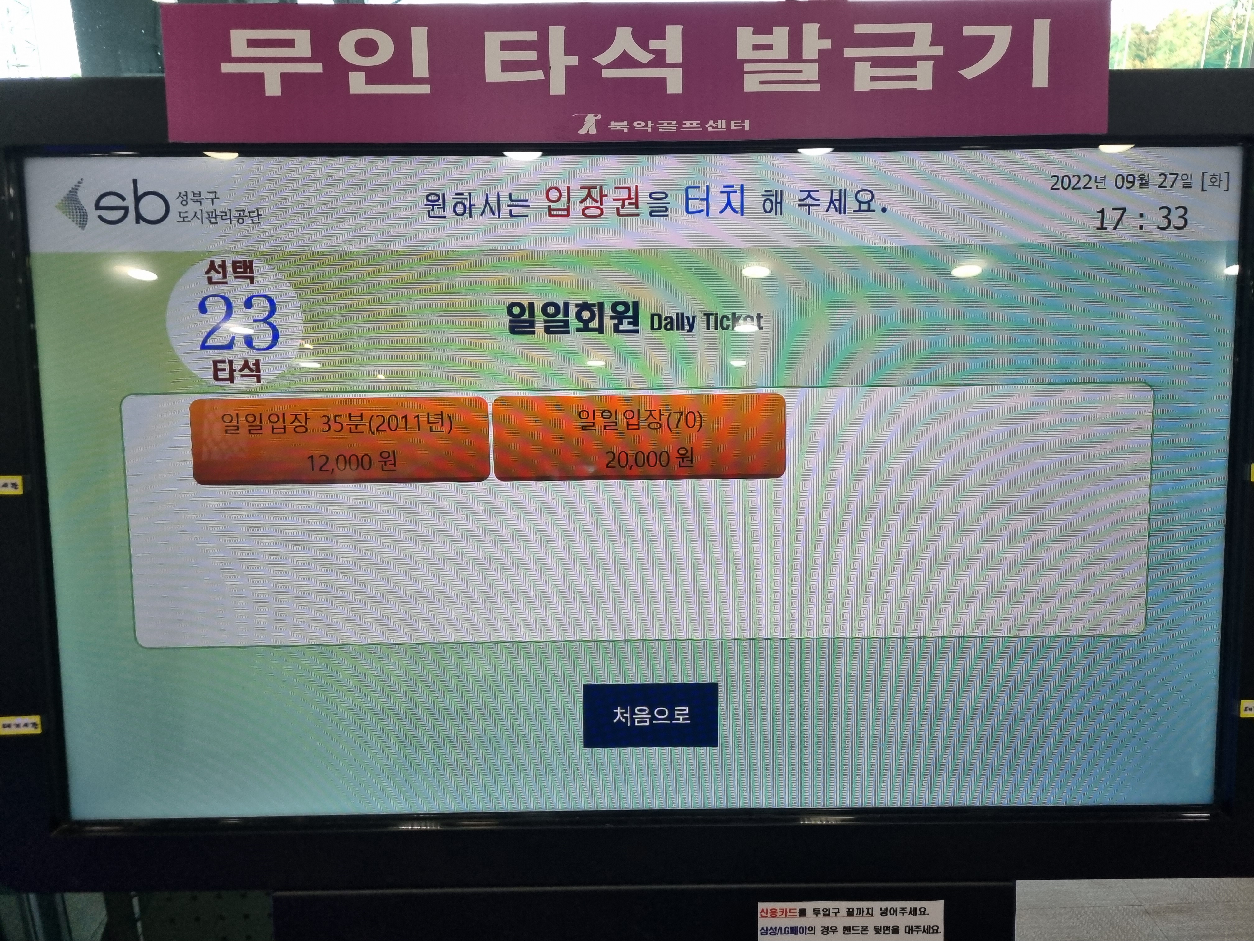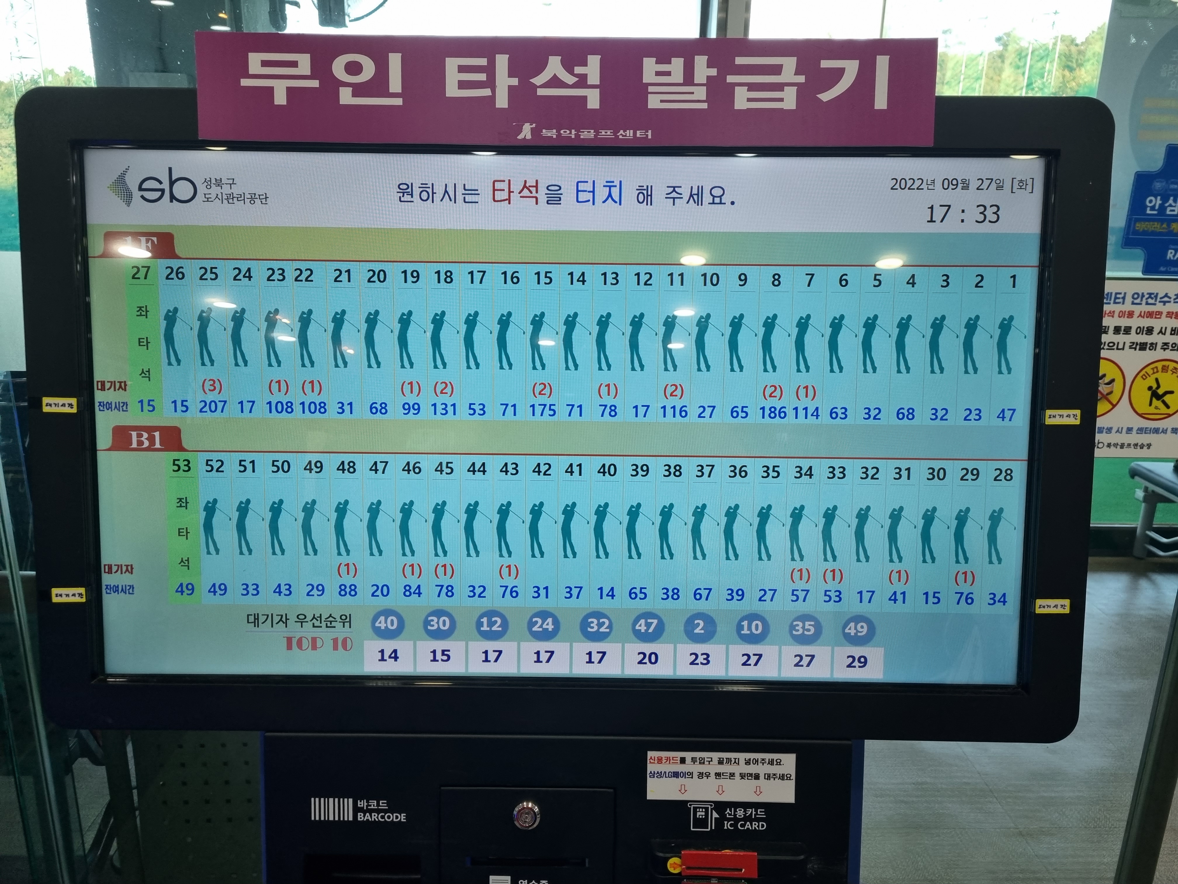 예약은 무인 타석 발급기에서 가능하다. 먼저 원하는 타석을 터치해주고..!