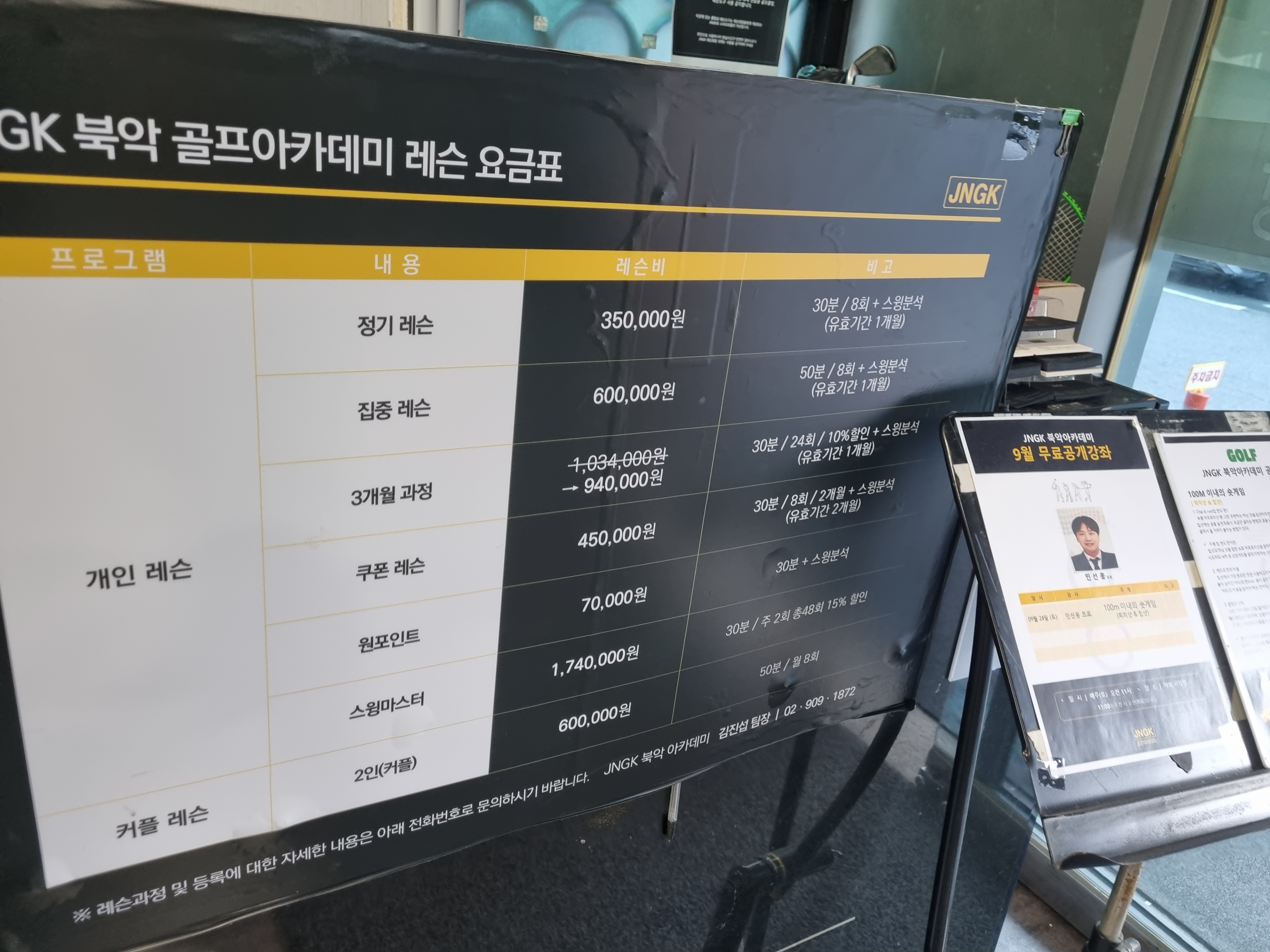 입구에 들어서자마자 레슨 요금표가...ㅎㅎ 3개월 과정이 94만 원이다.. 확실히 내가 다니고 있는 성북종합레포츠타운 가격이 꽤나 싼 것 같다.