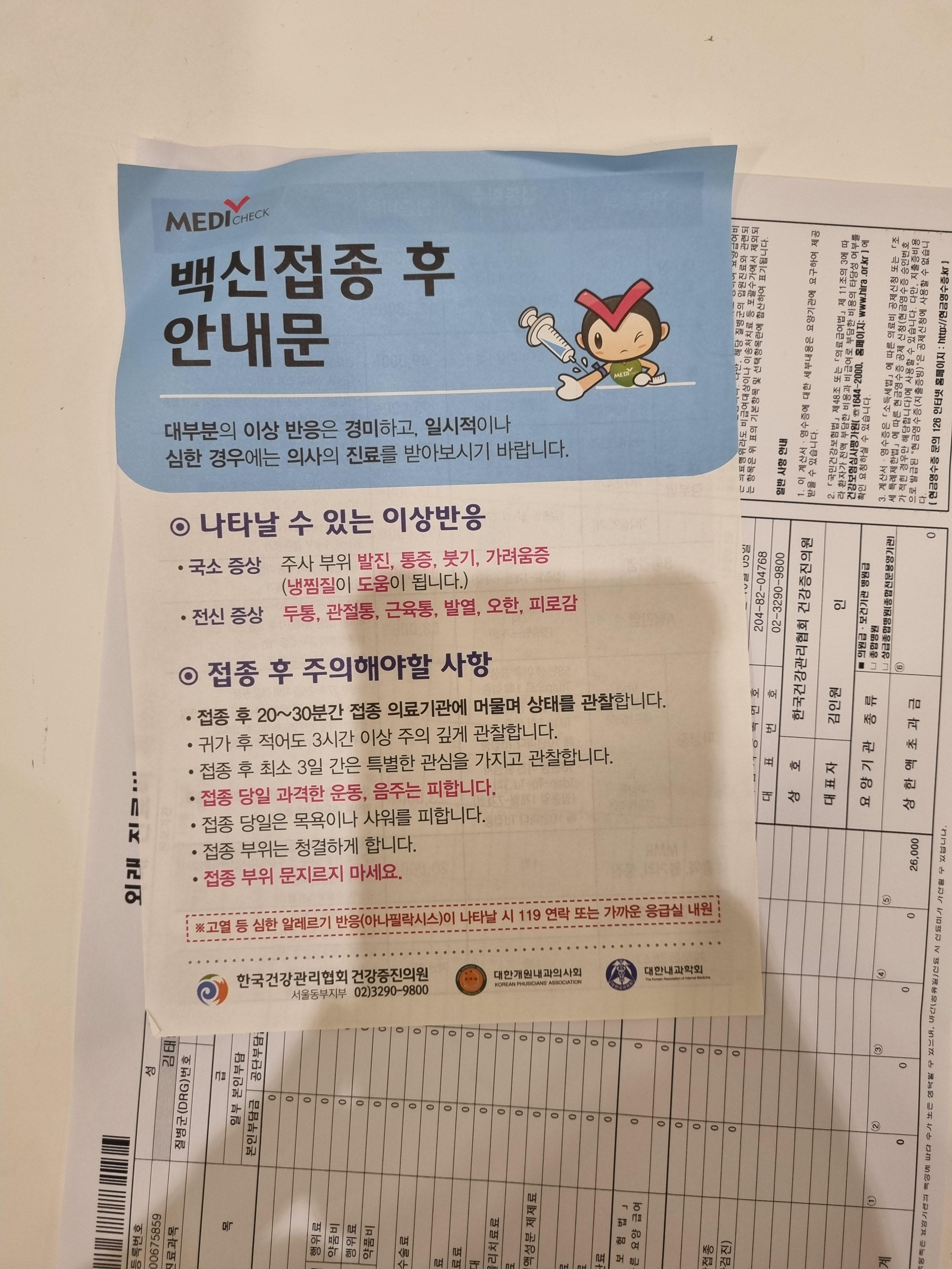원래는 접종을 마친 후 최소 5분은 대기해야 한다.