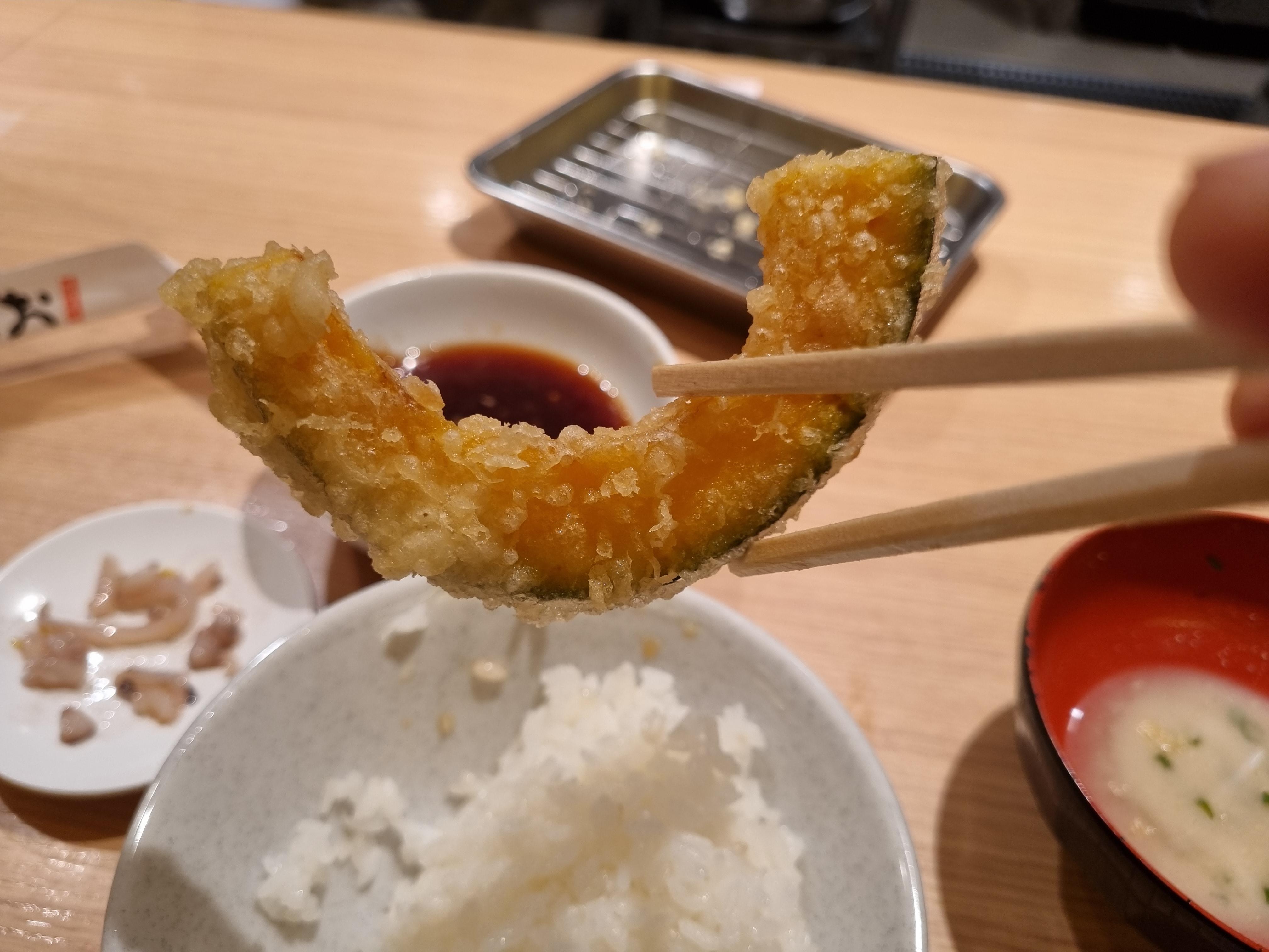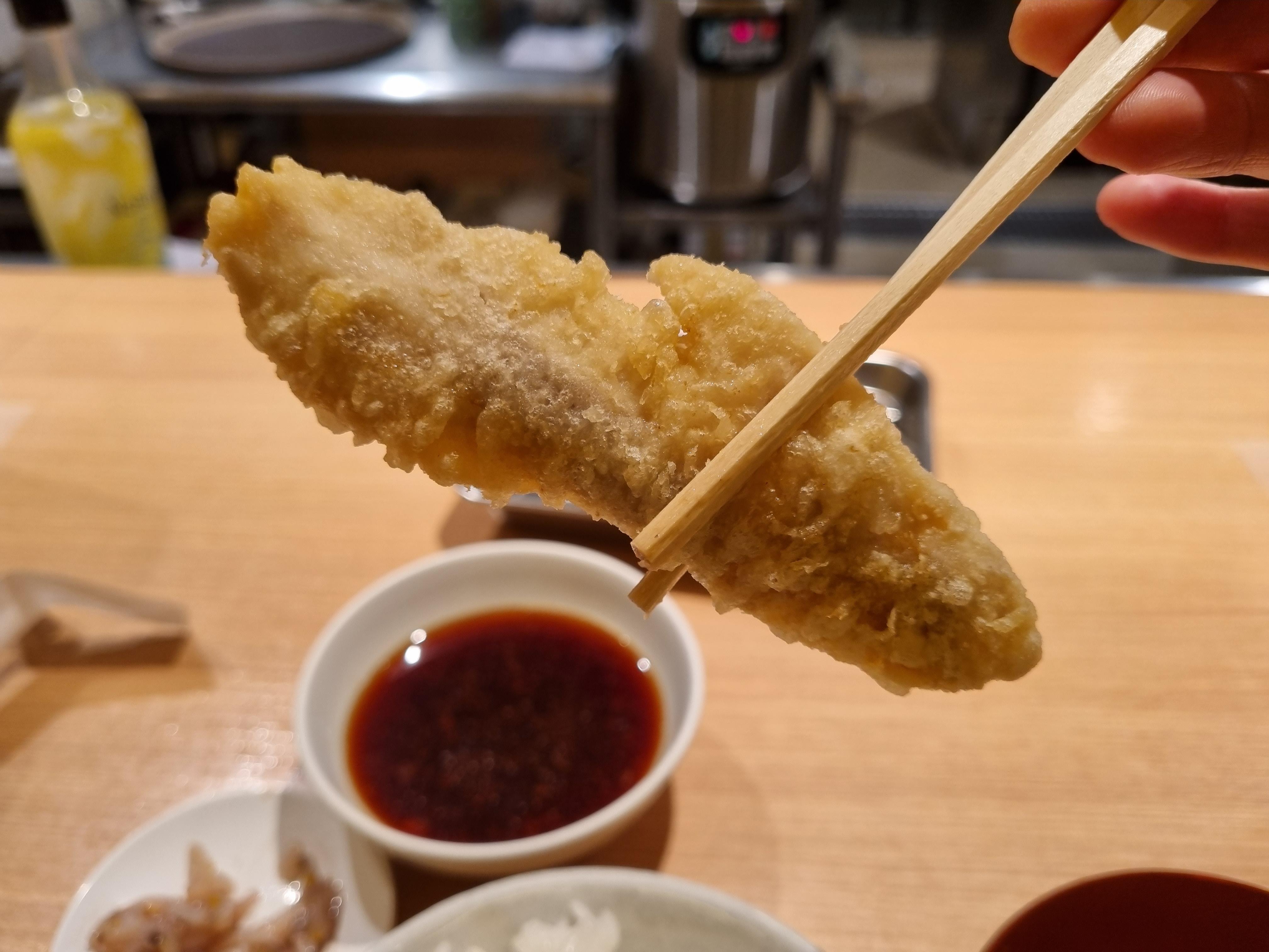 튀김간장에 무를 갈아서 주신다. 뭔가 일본이라 살짝 달달하지 않을까 했는데 전혀 그렇지 않았다. 단맛이 아예 없는 건 아니지만 우리가 일식집에 가서 먹는 튀김 간장보다 훨씬 짜고 단 맛은 아예 없는 느낌?