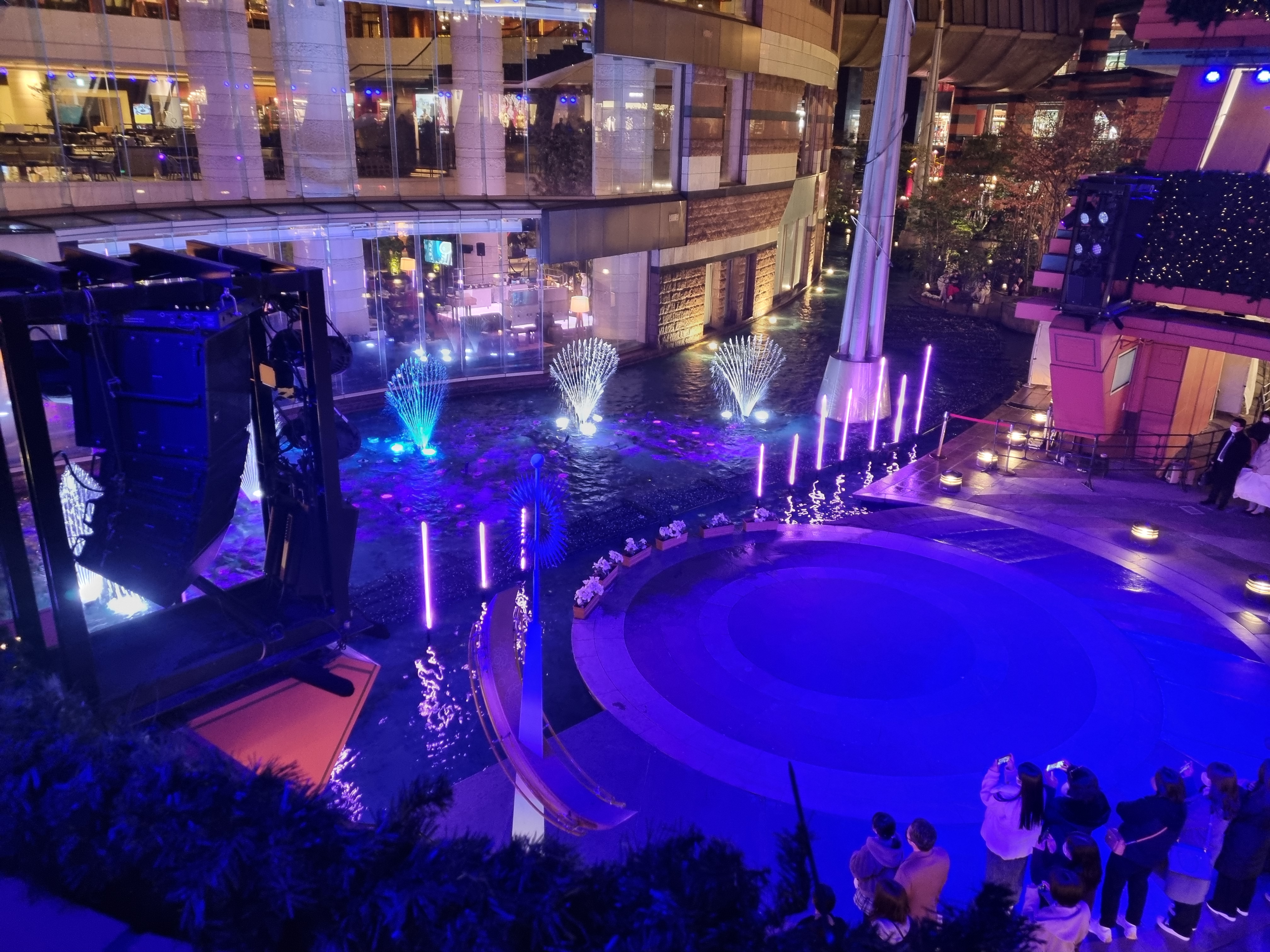 찾아보니 매 30분마다 분수쇼가 있었다. 30분에 본 쇼는 짧은 공연이었고 정시에는 약 8분짜리 원피스 애니메이션 공연이었다.