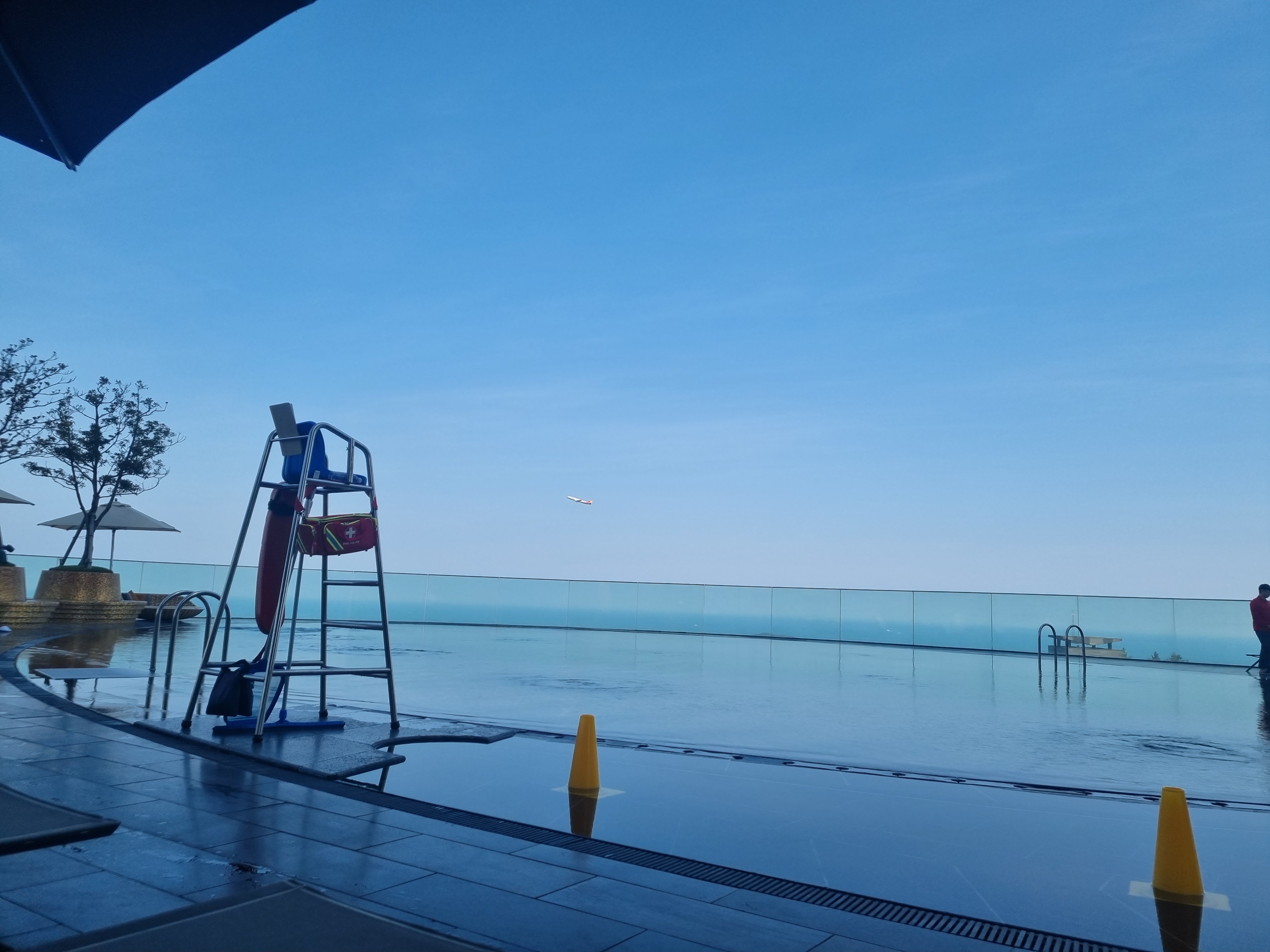 다음날 아침에도 야외 수영장에서 좀 더 쉬다 갔다. 아침이라 그런지 이륙하는 비행기들을 끊임없이 관찰할 수 있었다. 나름 비행기 이륙 소음이 화이트노이즈처럼 들려서 마음을 평온하게 했다고나 할까..ㅋㅋ
