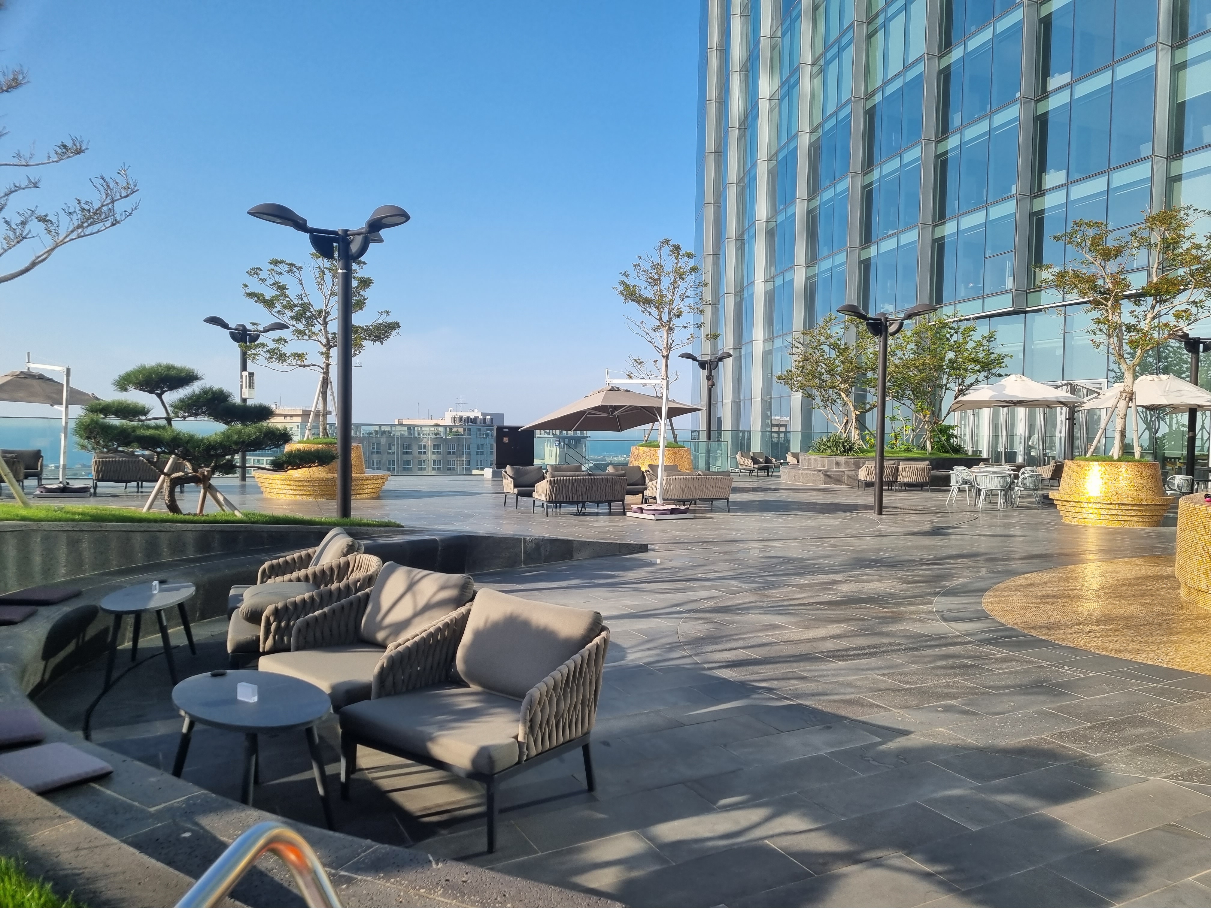실외수영장은 8층에 있다. 6층에 있는 실내 수영장으로 가면 탈의실이랑 샤워실이 잘 구비되어 있긴 하지만 우린 편하게 숙소에서 수영복으로 갈아입고 샤워 가운을 걸친 채 돌아다녔다. 나갈 때 호텔 객실 번호를 물어보긴 한다.