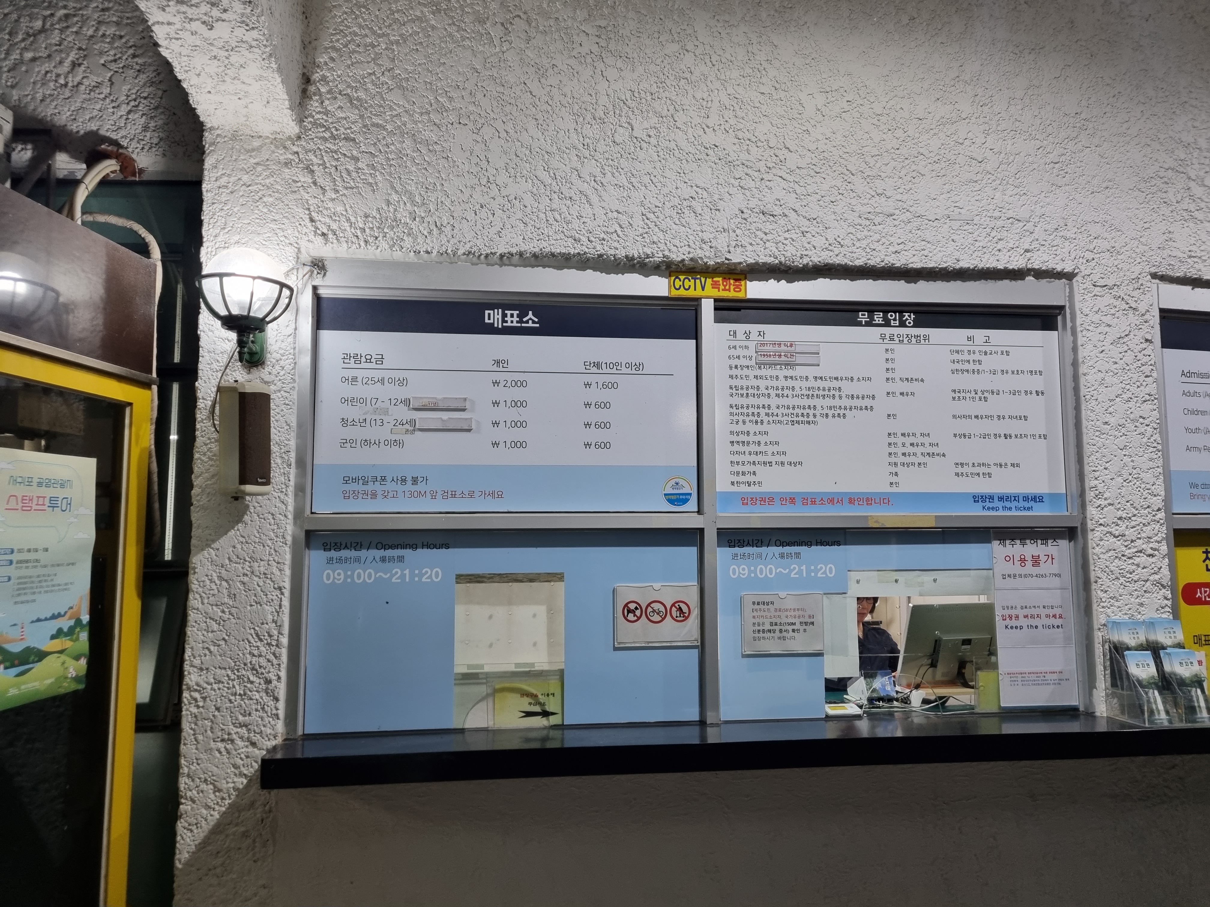 어른은 1인당 2,000원이다. 내가 부모님이랑 온걸 봐서 그런지 매표 직원분이 혹시 65세 이상인 분이 있냐고... 엄마는 아쉽게도 내년도에 65세가 되시기에 해당은 되지 않았고 아빠는 해당이 되어 무료로 입장이 가능했다!!! 오호, 이런 게 노인복지구만..!