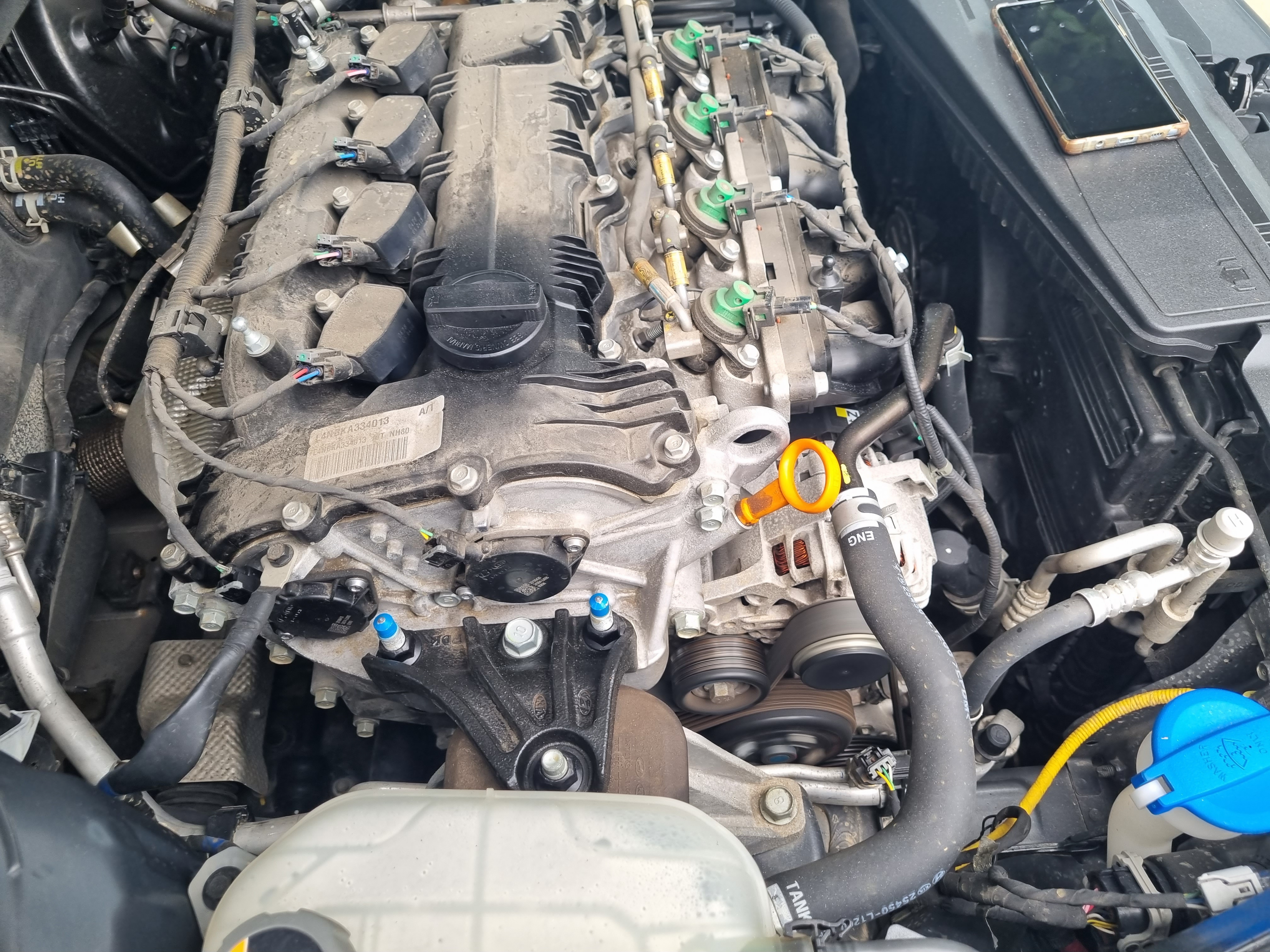 아 그리고 엔진 상태를 볼 때 가장 쉽게 판별할 수 있는 팁도 알려주셨는데 저 노란색 막대나 엔진밸브를 열었을 때 Fume 이 나오면 엔진에 문제가 있는 거라고 얘기해 주셨다. 이 차는 그런 현상이 발견되지 않아 엔진 상태가 좋은 거라고 하셨다.