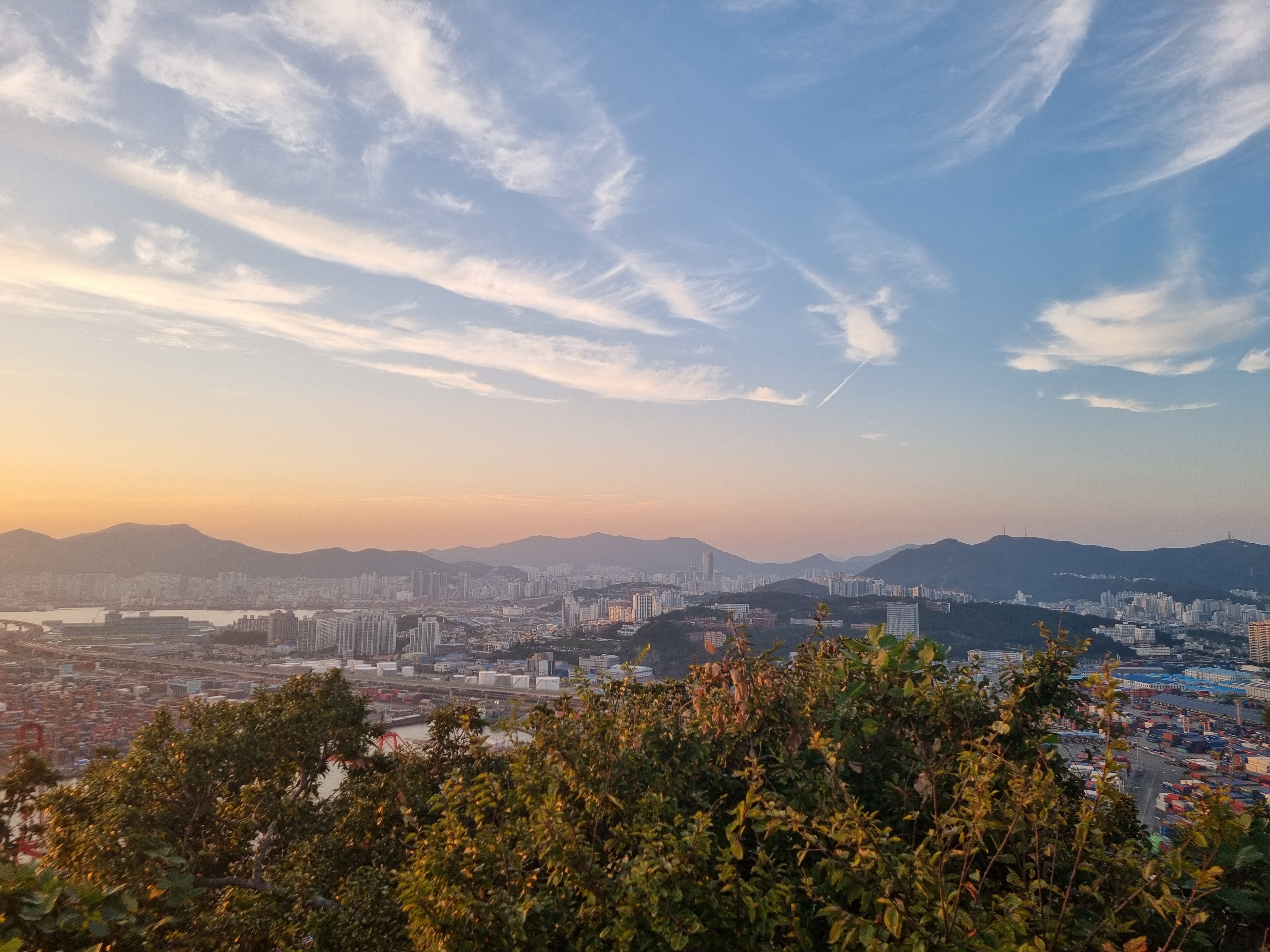 뭔가 언덕길을 오르다보면 이렇게 얼핏 얼핏 정상에서 바라볼 풍경이 이런 느낌이야라고 힐끗힐끗 보여주는 그런 여백이 있는 곳이 존재한다. 이곳도 나무로 빽빽하게 둘러싸여 있었지만 뭔가 부산부둣가가 한눈에 들어오는 그런 전경이 눈앞에 펼쳐질 것 같은 느낌이 들었다.