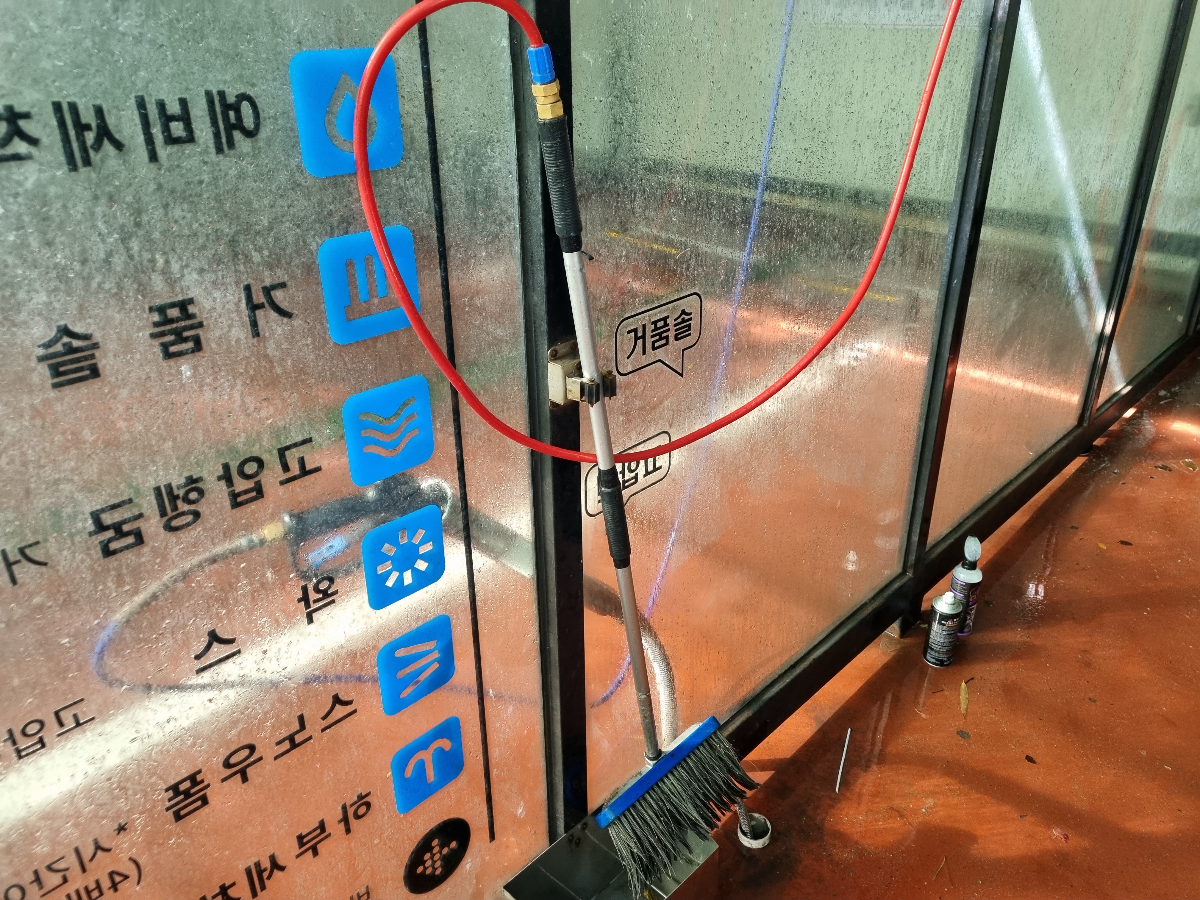자 남은 2분 동안에는 거품솔을 사용하여 차에 골고루 거품을 발라주면 된다. 거품을 바르기 전 고압세척건으로 거품솔을 한번 씻어주고 쓰면 좋다는 팁도 줬다.