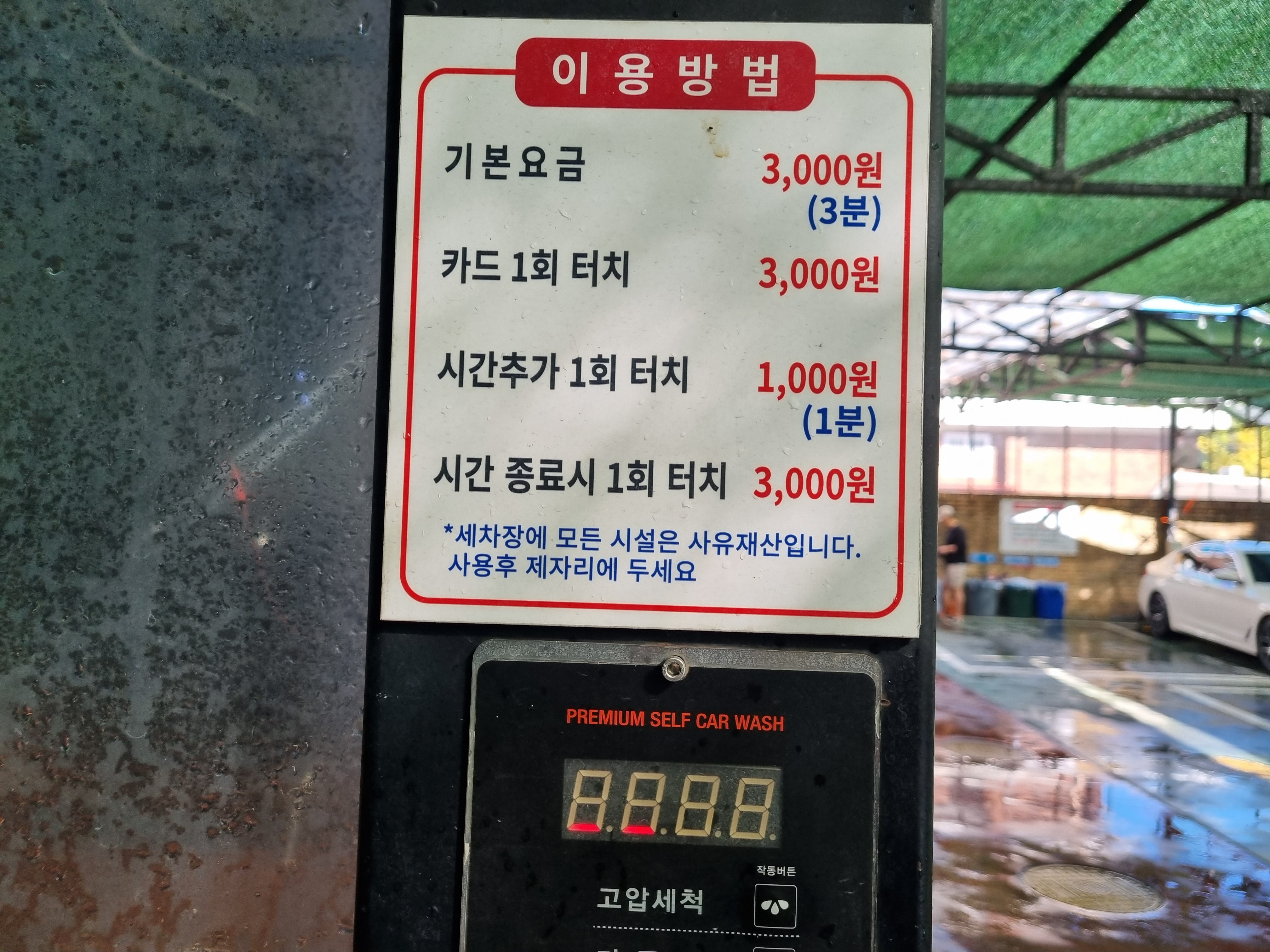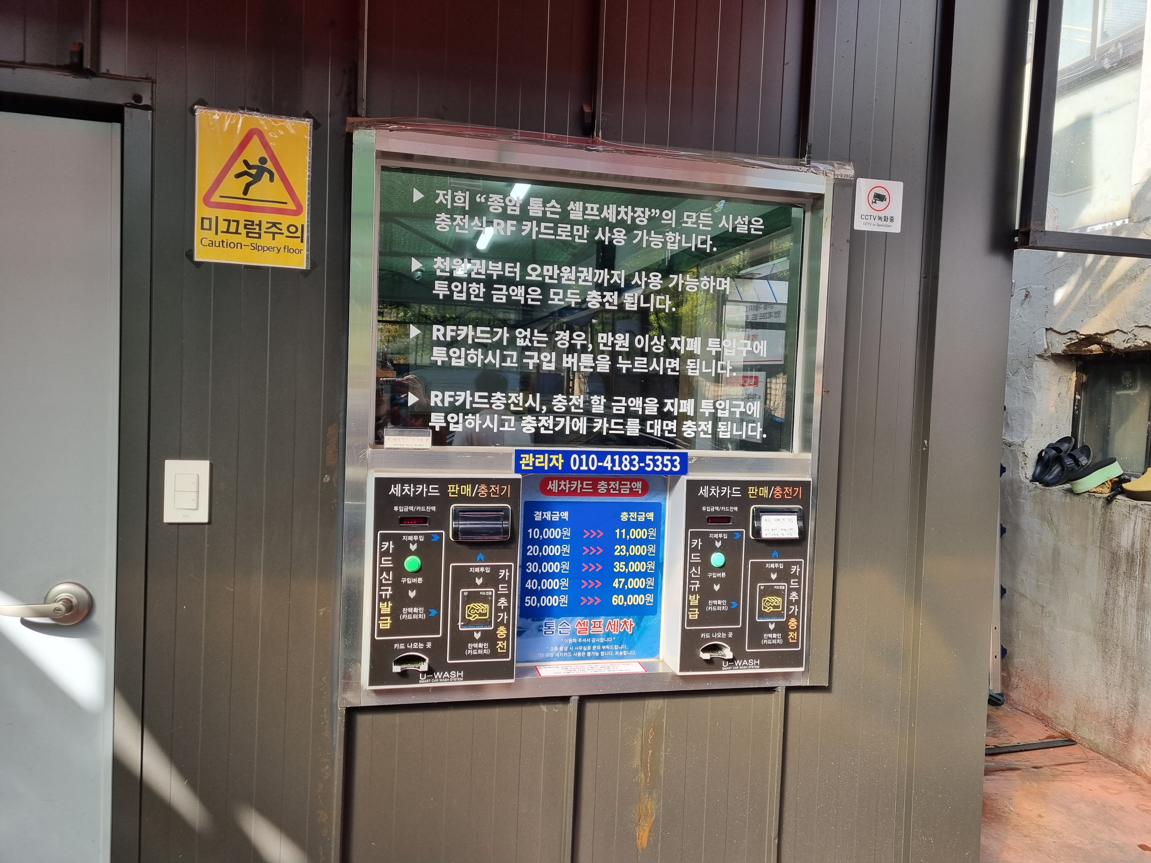 이날 새벽에 비가 조금 내린 것 같긴 했는데 그래서인지 하늘이 무척이나 맑았다. 세차하기에 딱인 그런 날씨였다. 봉새의 안내에 따라 일단 충전카드를 만들러 갔다. 어라 그런데 현금만 된다...!!!!! 다행히 사장님이 나오셔서 계좌이체로 카드를 만들도록 도와주셨다. 그래서 3만원을 충전했다...!! 사장님이 미리 팁들을 잘 알려주시긴 했는데 봉새가 자기의 팁을 전수해 주겠다고 하여 엄청 귀담아 듣지는 않았다..ㅋㅋ