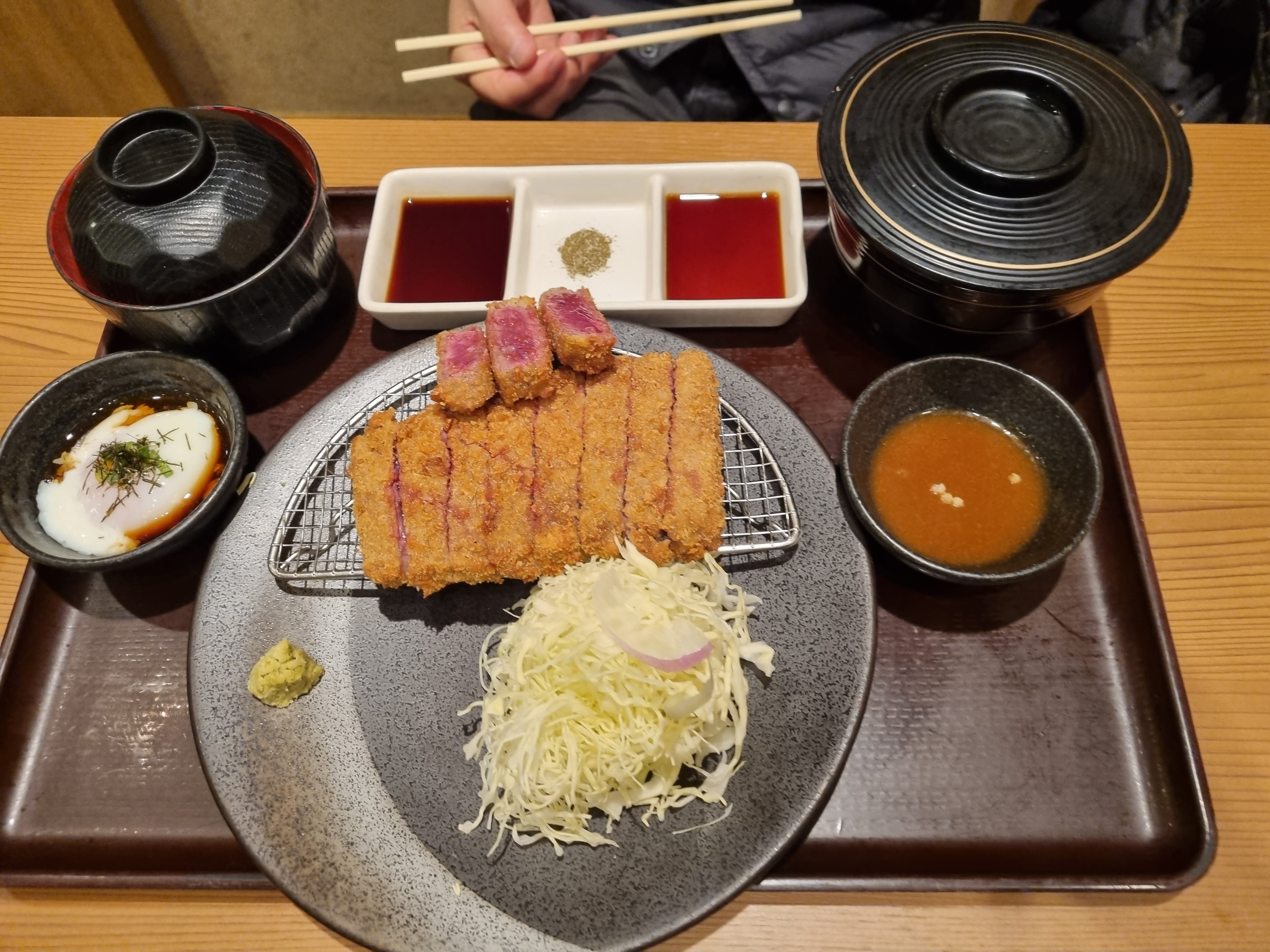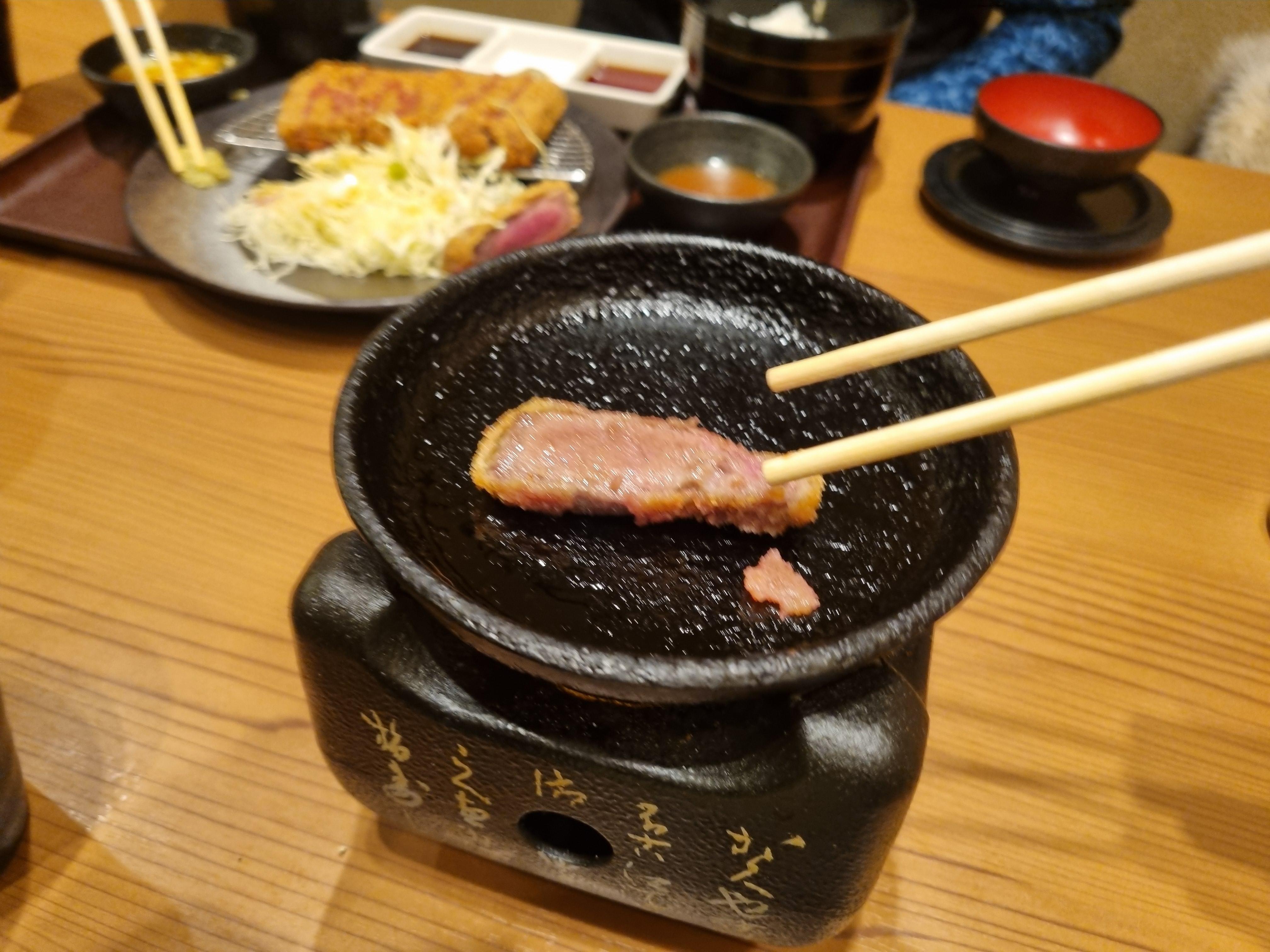 엄마는 살치살 규카츠정식 M (2,079 Yen)을 주문했다. 음.. 왜 이렇게 크기 차이가 별로 나보이지 않지...ㅋㅋㅋ