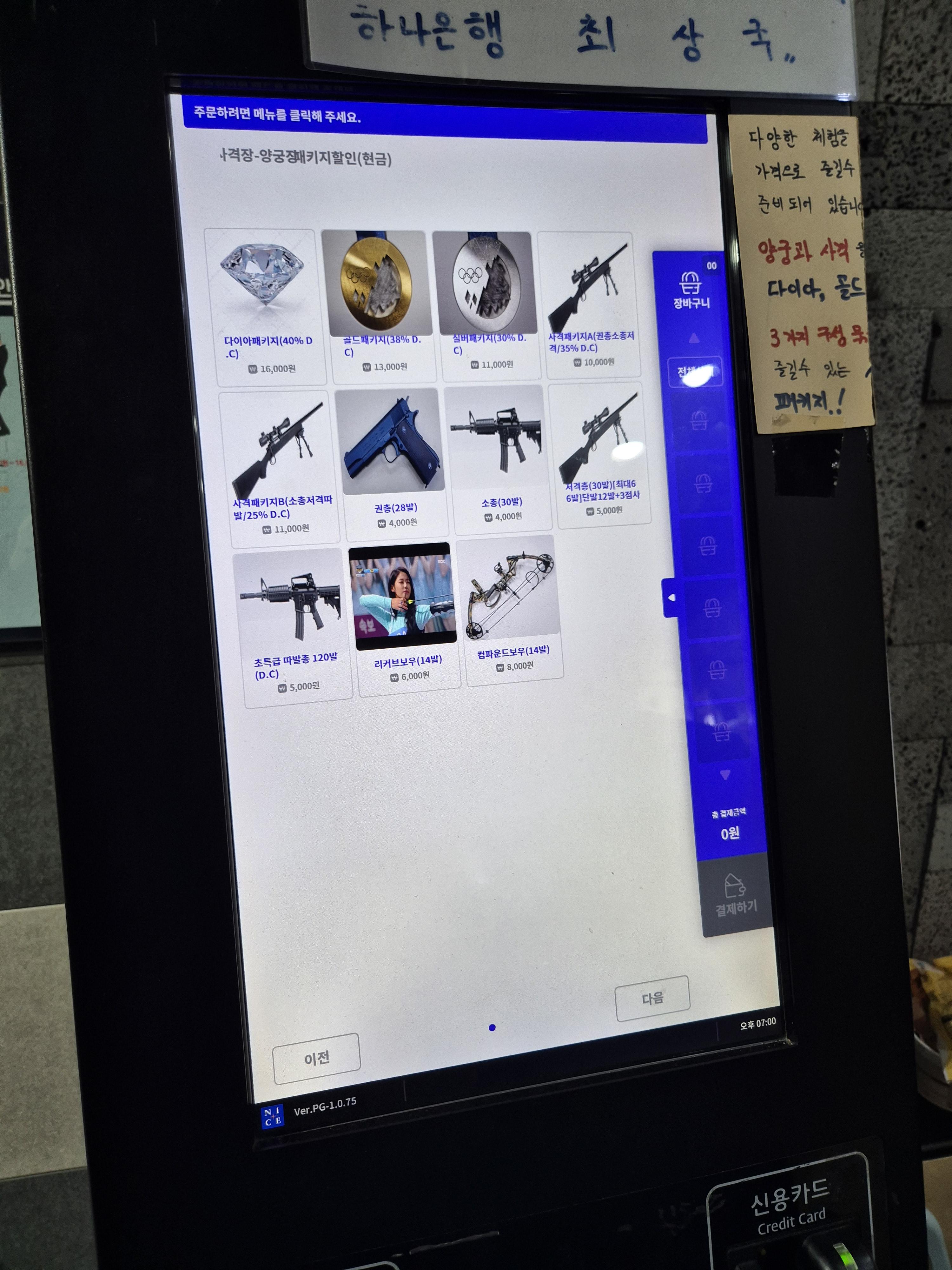 꼴찌가 쏘는 걸로 하고 결제는 내가 진행을 했다. 권총을 할까 했는데 저격총이 멋져 보여서 저격총으로 진행해 봤다. 30발에 5,000원!!
