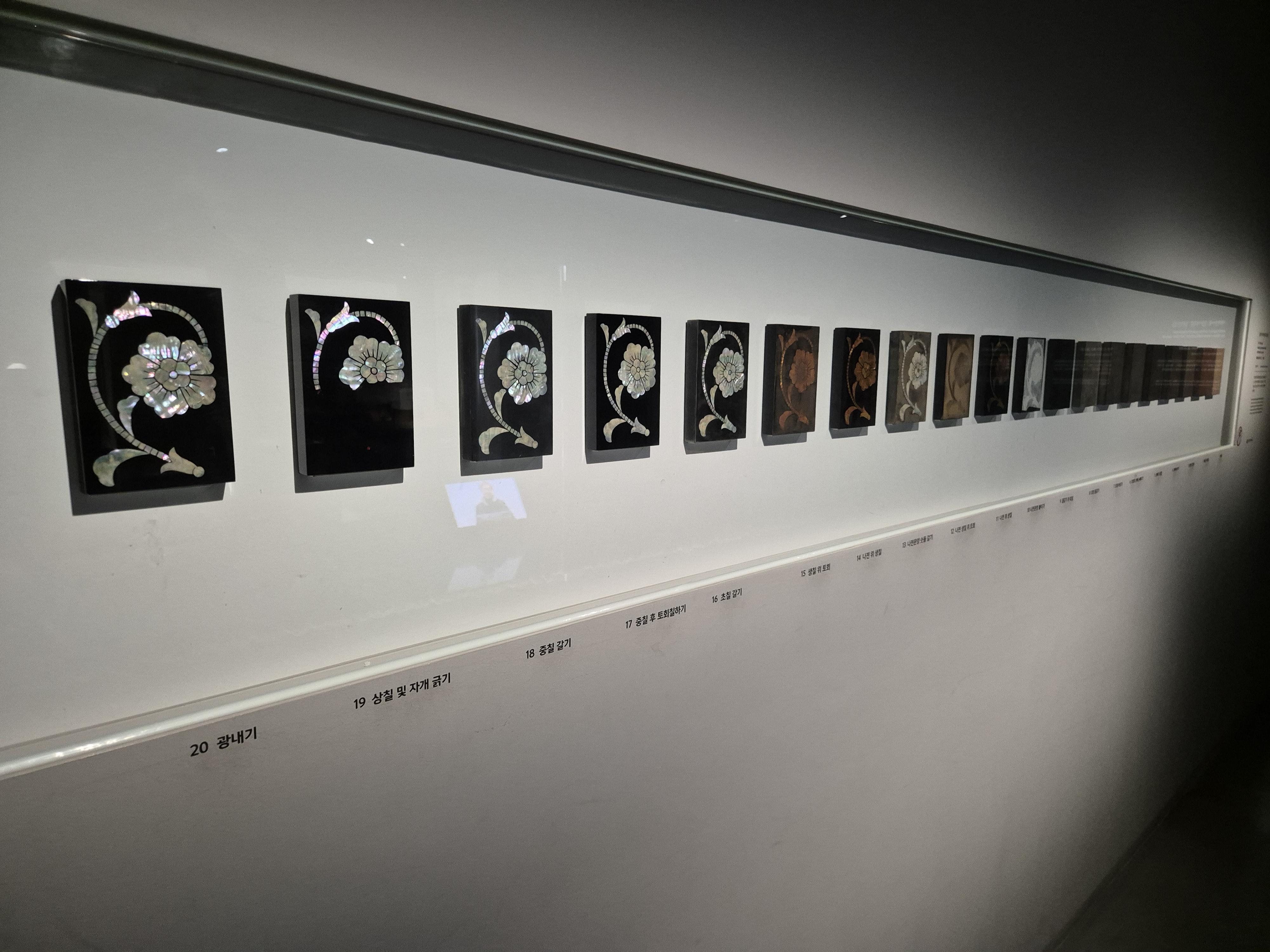 이게 바로 나전의 재료!!! 아 관람하다가 미국에서 온 이민 가정을 만났는데 알고보니 여기 전시된 작가의 자녀분이란다..!! 자녀분들에게 너희 조부모의 작품이라며 자랑을 하시며 같이 사진을 찍고 있더라.. 흐음 이런 걸 보면 뭔가 내 작품이 기념이 될만한 어딘가에 전시된다는 건 의미 있는 일이긴 한 것 같다.