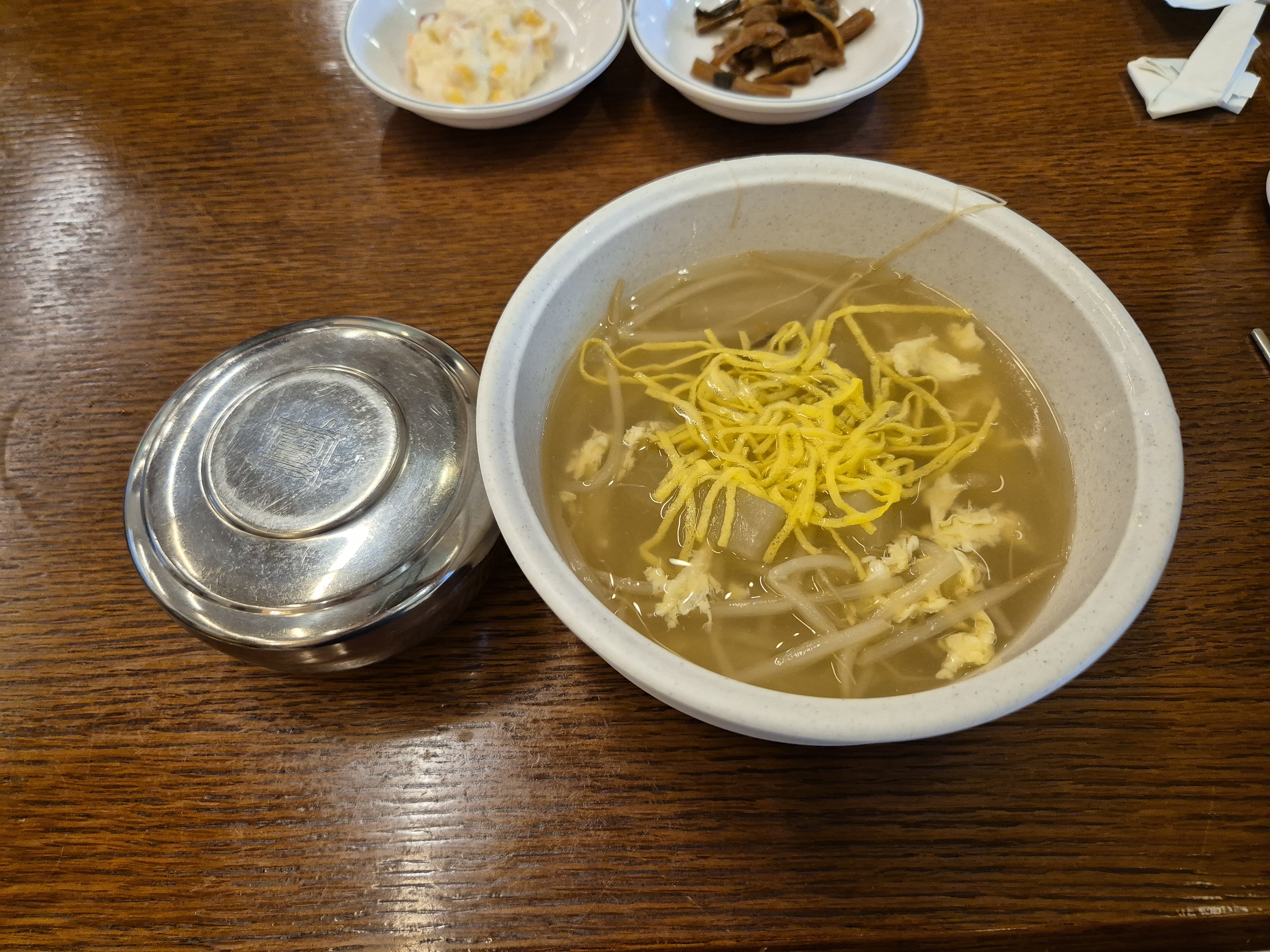첫째 날은 뭔가 우거지 해장국 느낌의 녀석이었다. 맛이 나쁘진 않았다. 근데 원래 국밥류를 엄청 좋아하지는 않아서..ㅋㅋ