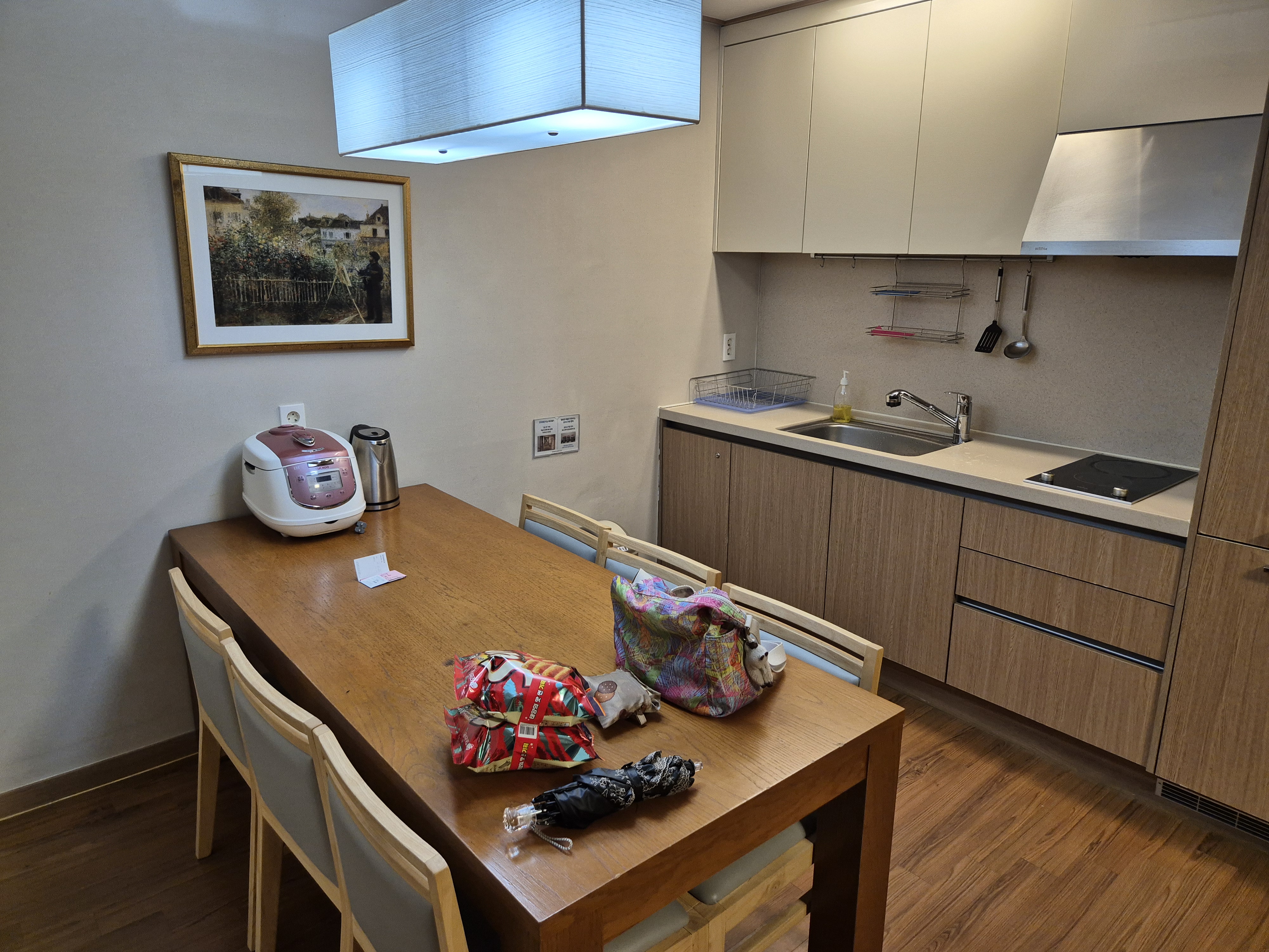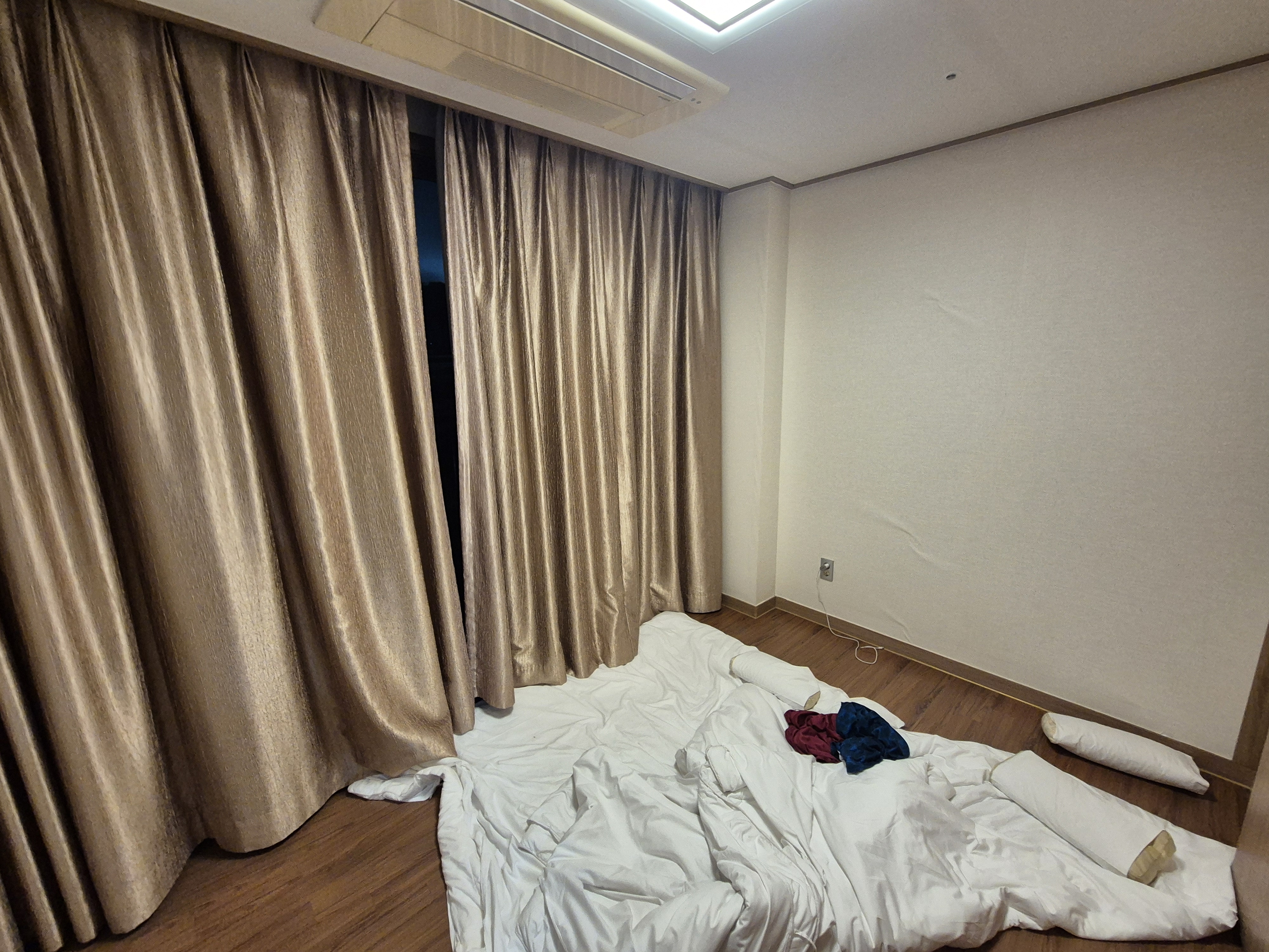 엄빠가 먼저 오셔서 작은 방을 쓰고 계셨다.. 내가 큰 방을 쓰라고 말씀드렸는데... 침대방이 불편하시다고..ㅠㅠ 나도 침대 불편한디.. 여하튼 출입문 바로 앞에 작은 방이 위치해 있다.