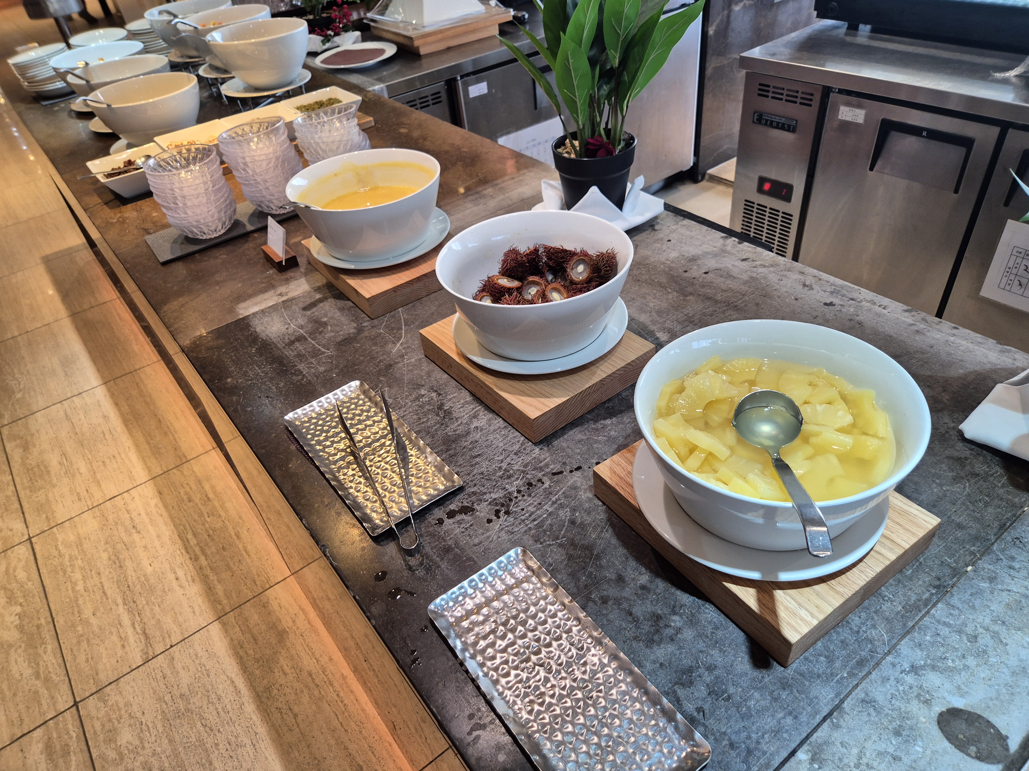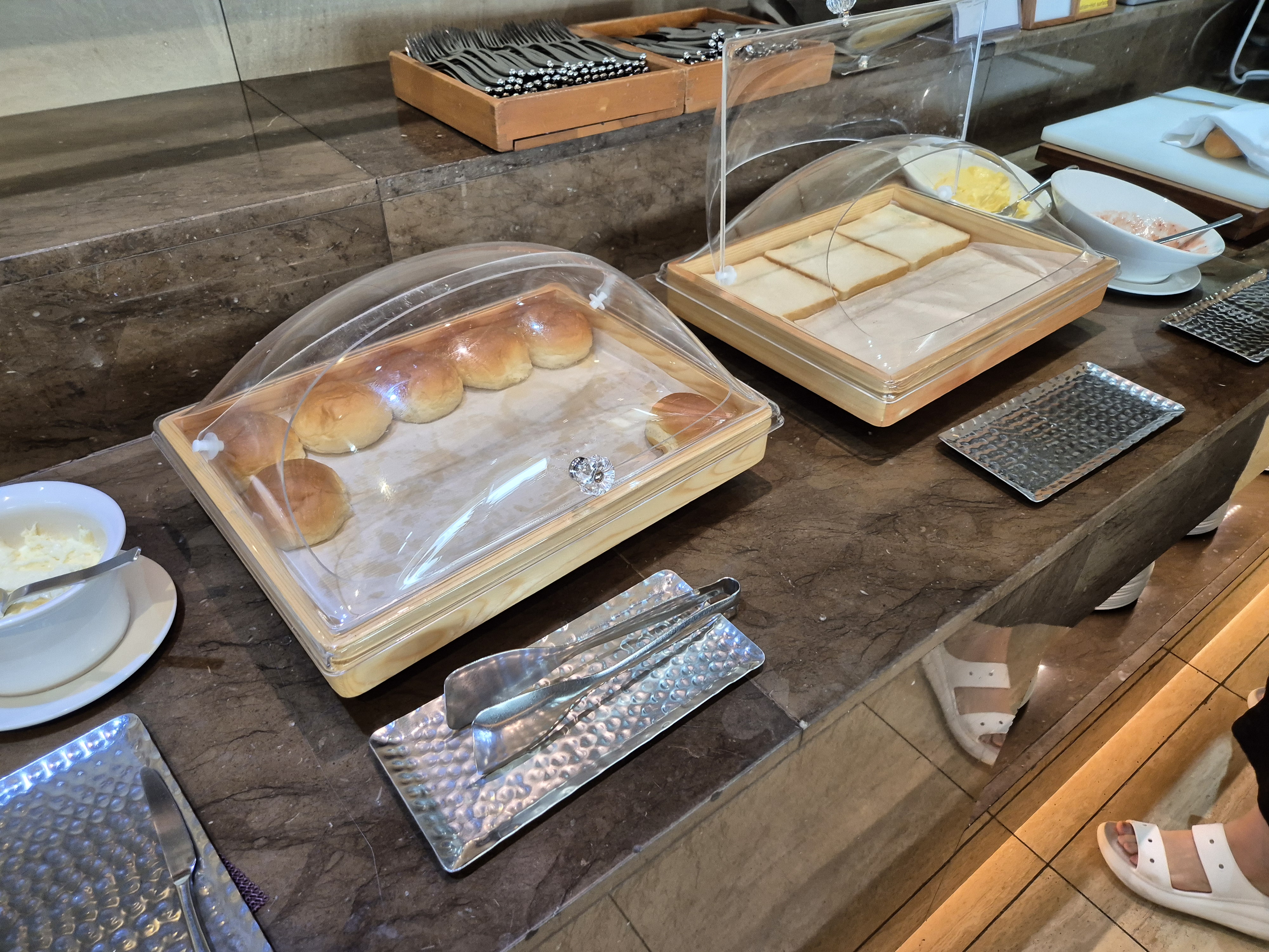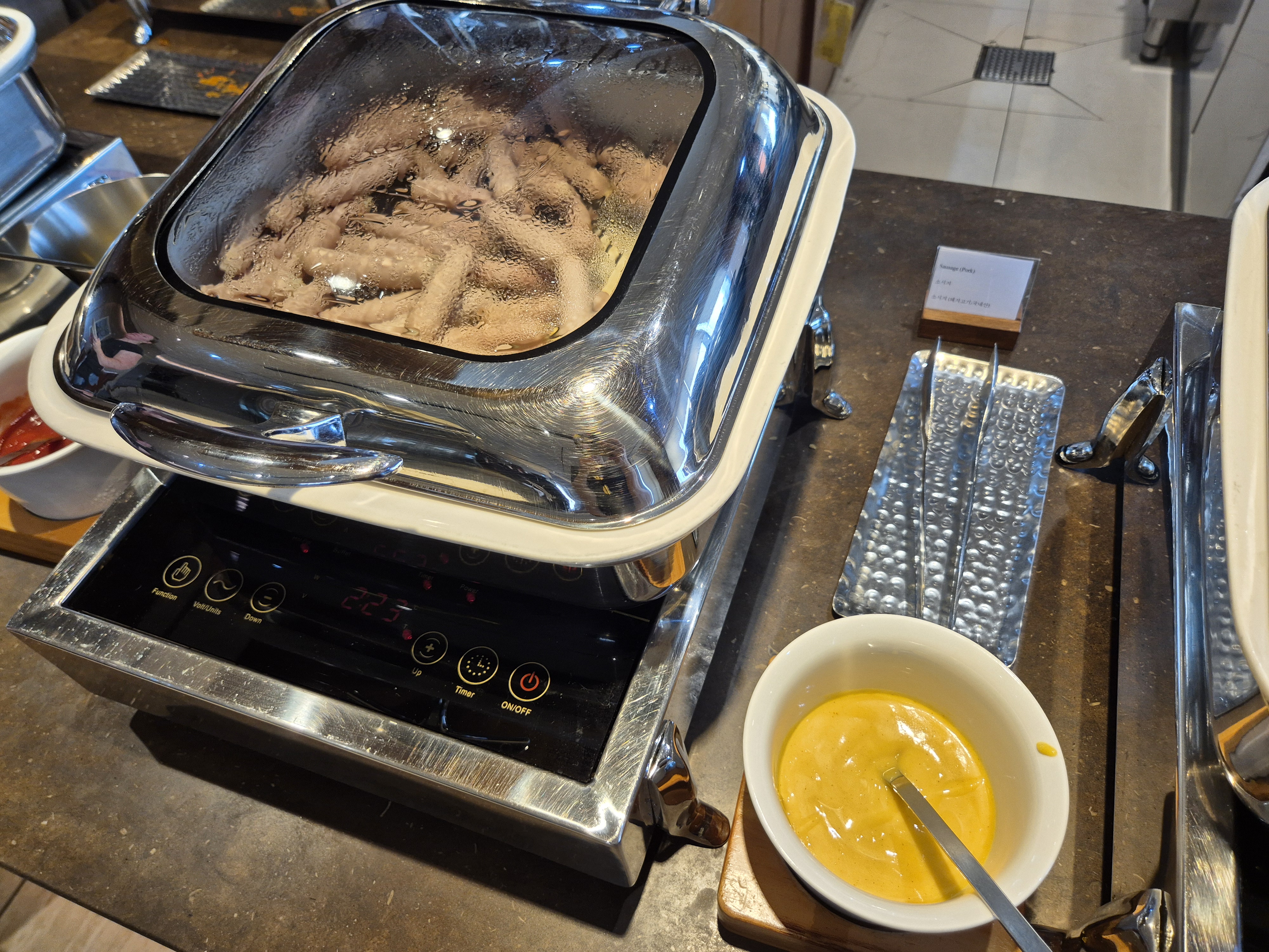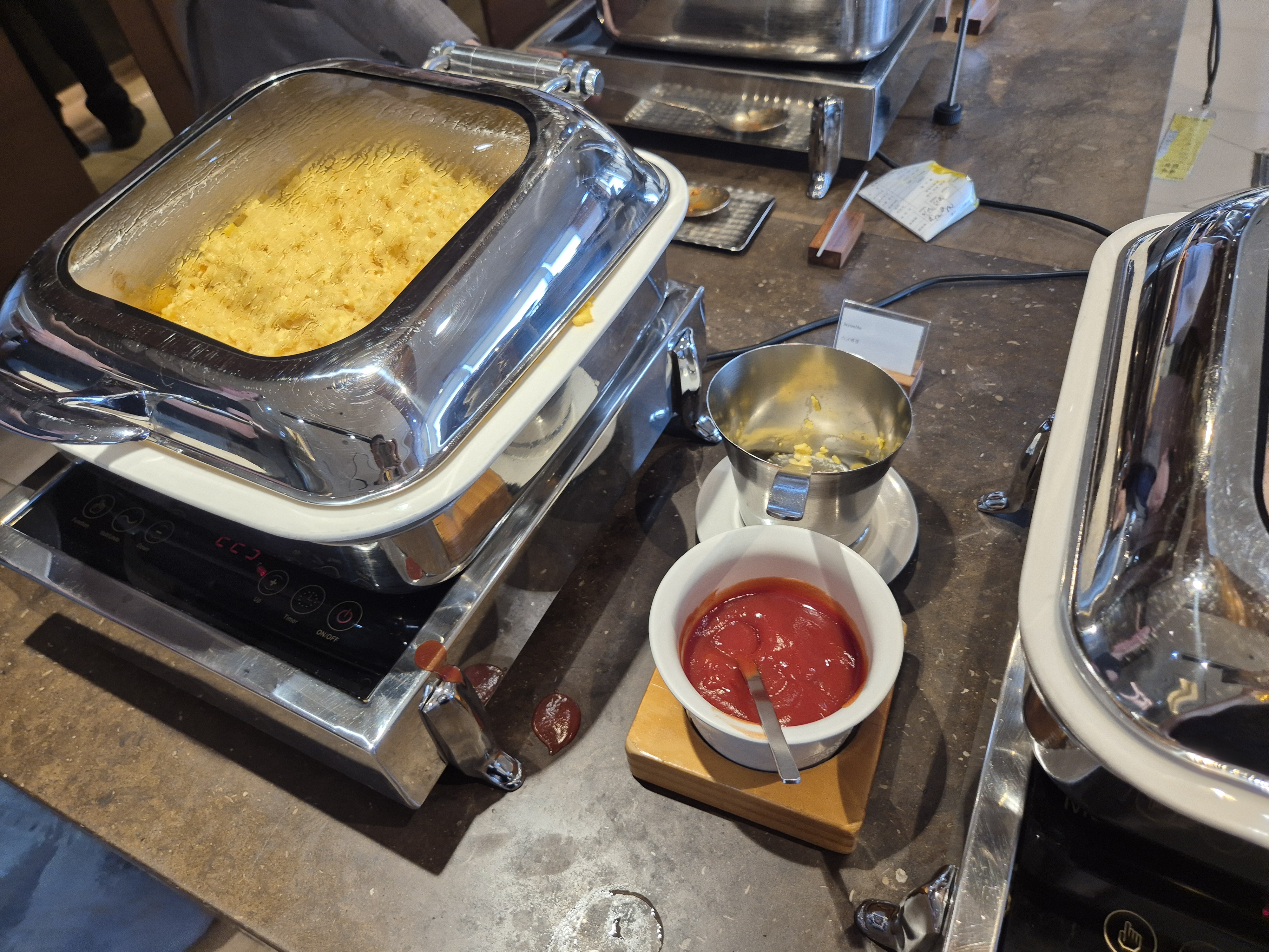 다들 늦게까지 얘기를 나누고 잠이 들었지만 일찍 깨신건지 조식당에서 다 만나버렸다..ㅋㅋ 조식당은 꼭대기층에 있어 전망이 좋긴 한데 우리는 여러 명이 같이 앉아야 하다 보니 저 구석자리에 앉았다. 그래도 메뉴는 다 찍어야겠다는 일념하에 사진부터 열심히 찍었다.