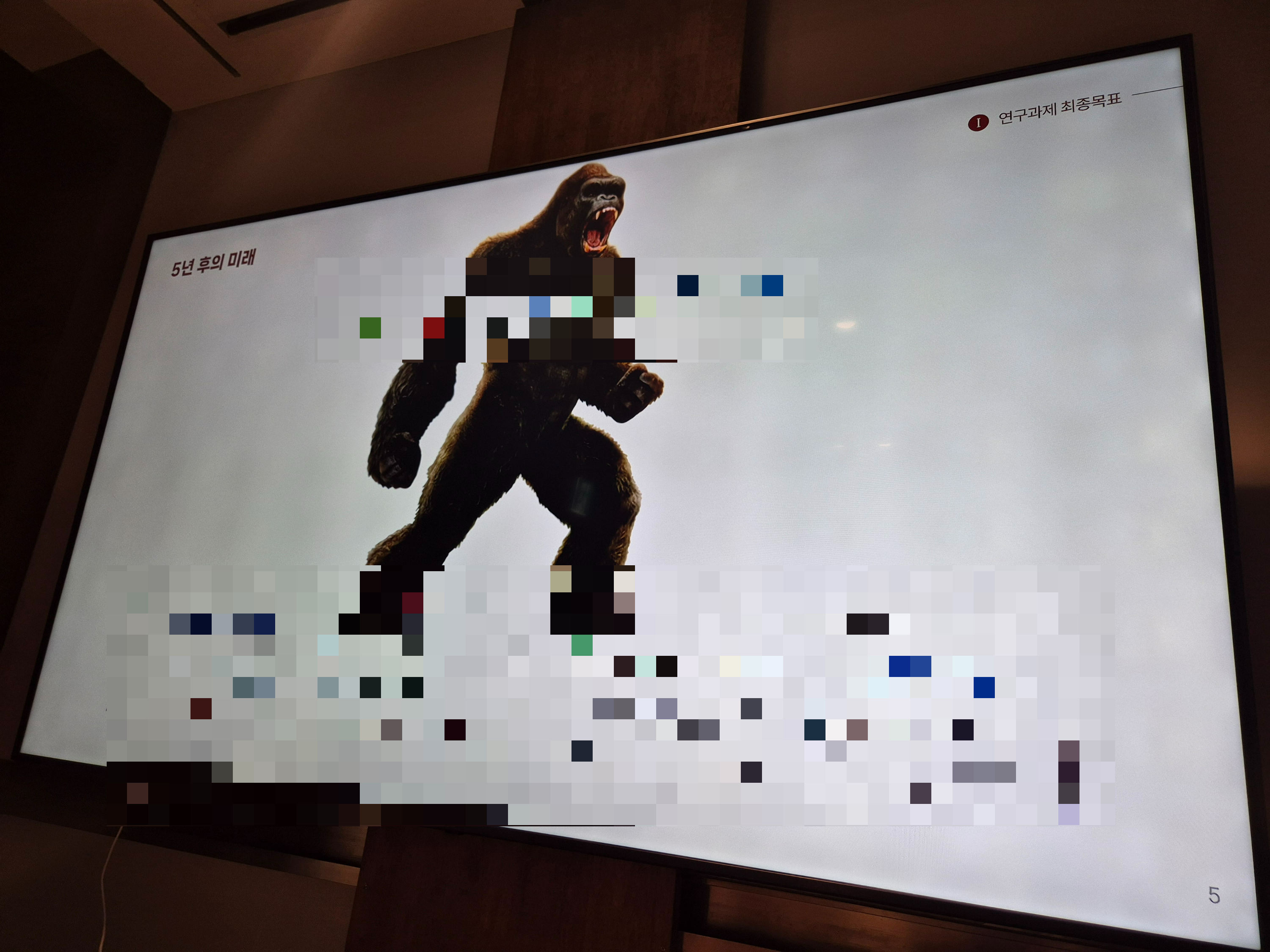 뭔가 회의실 전경을 찍고 싶었는데 민망해서 찍지는 못했고 총괄 책임자분이 멋진 슬라이들 하나 준비하셔서 그거는 하나 촬영을 했더군.. ㅎㅎ 여튼 예전에는 프로젝터를 사용한 거 같은데 지금은 이렇게 대형 TV로 바뀌어 있다. 화질도 좋고 괜찮다. 한 10명 정도는 수용가능할 것 같더군.